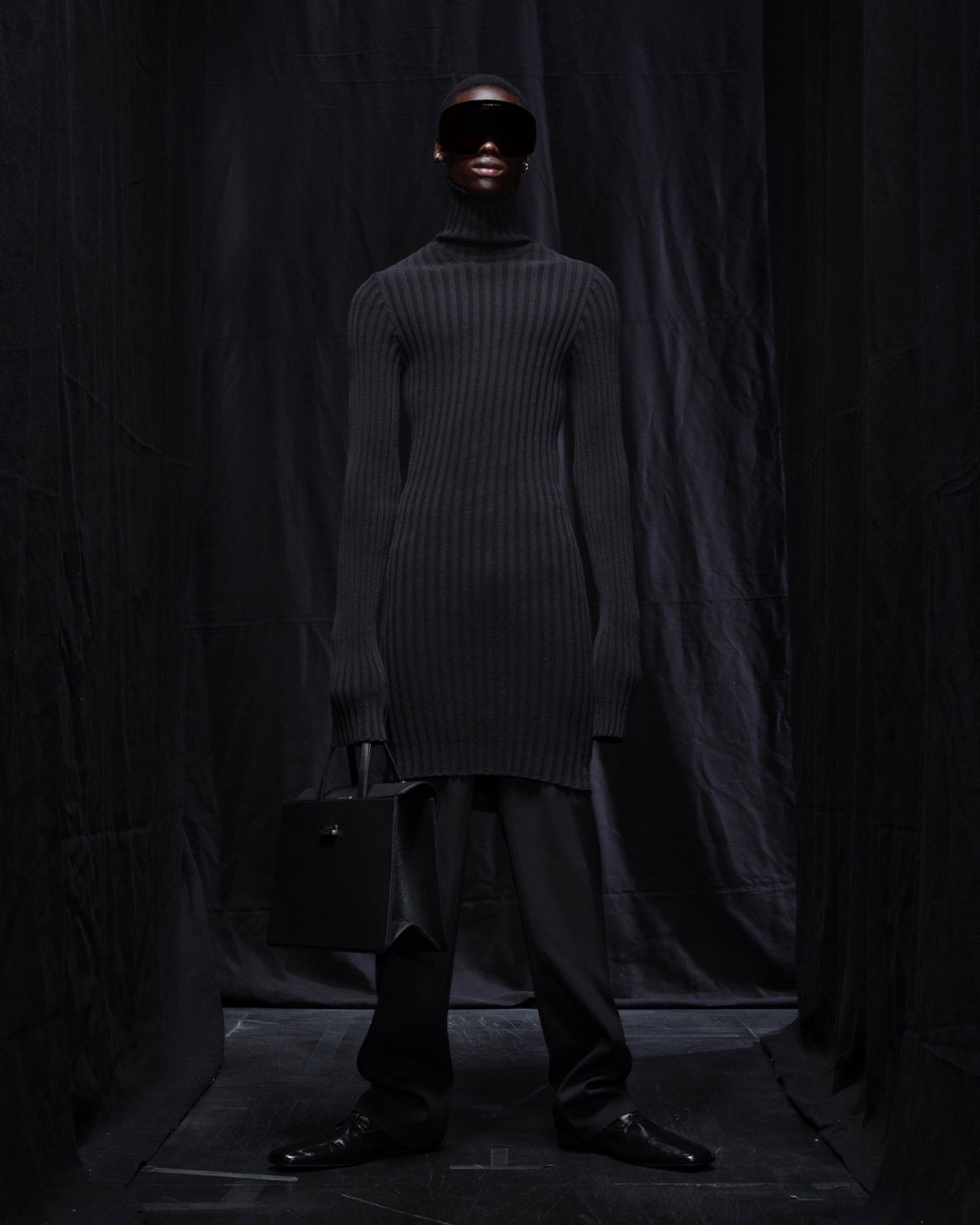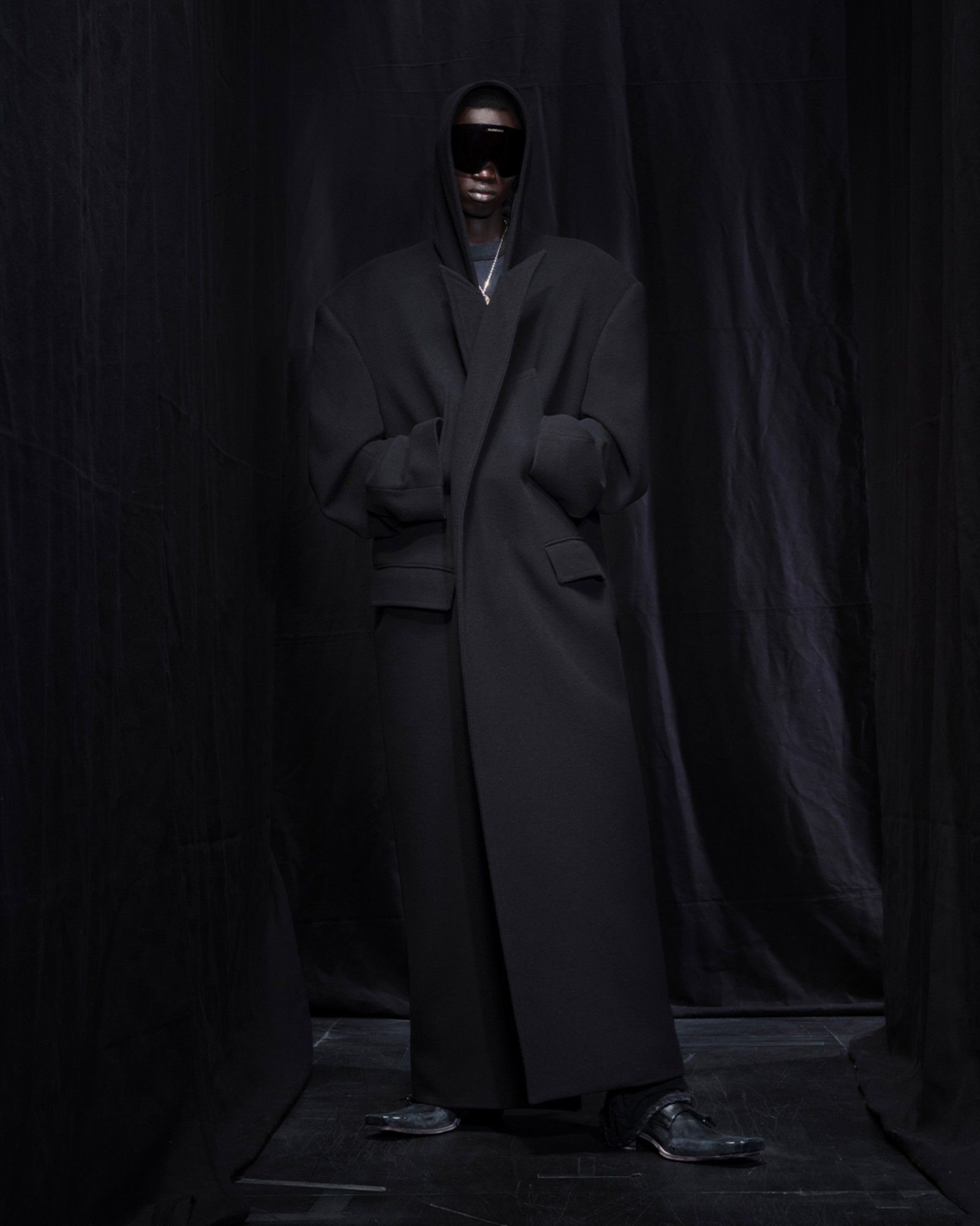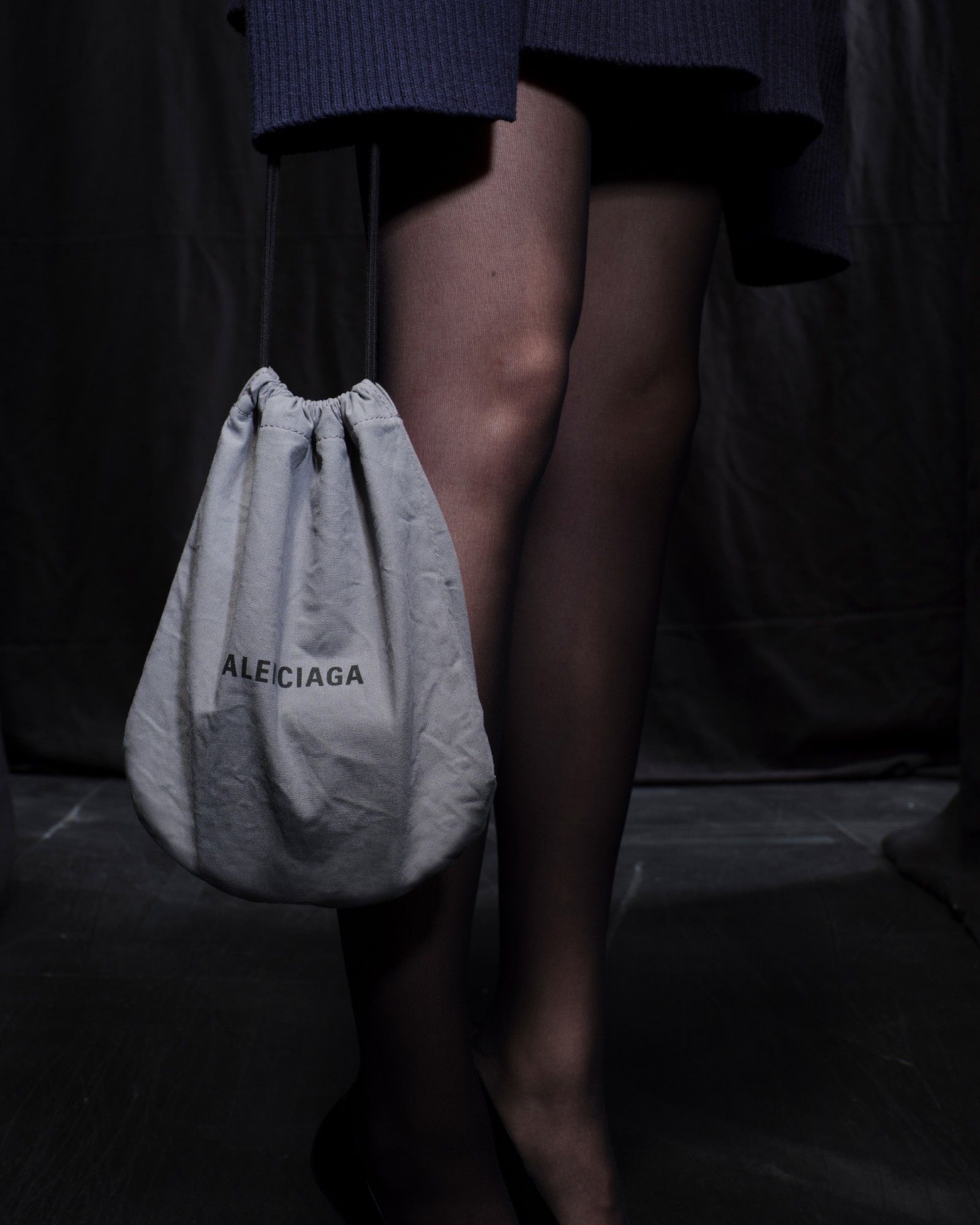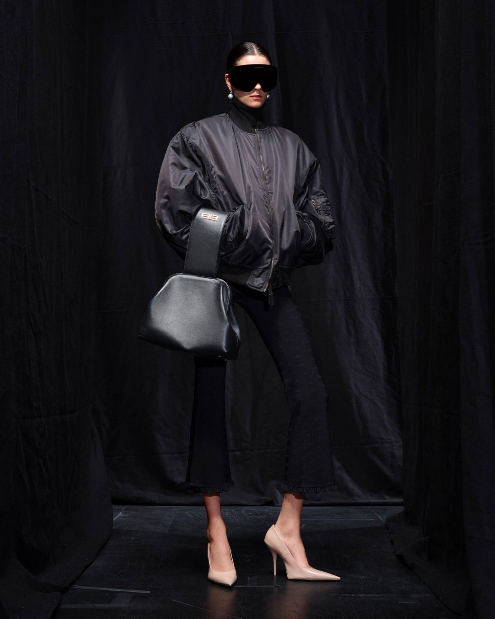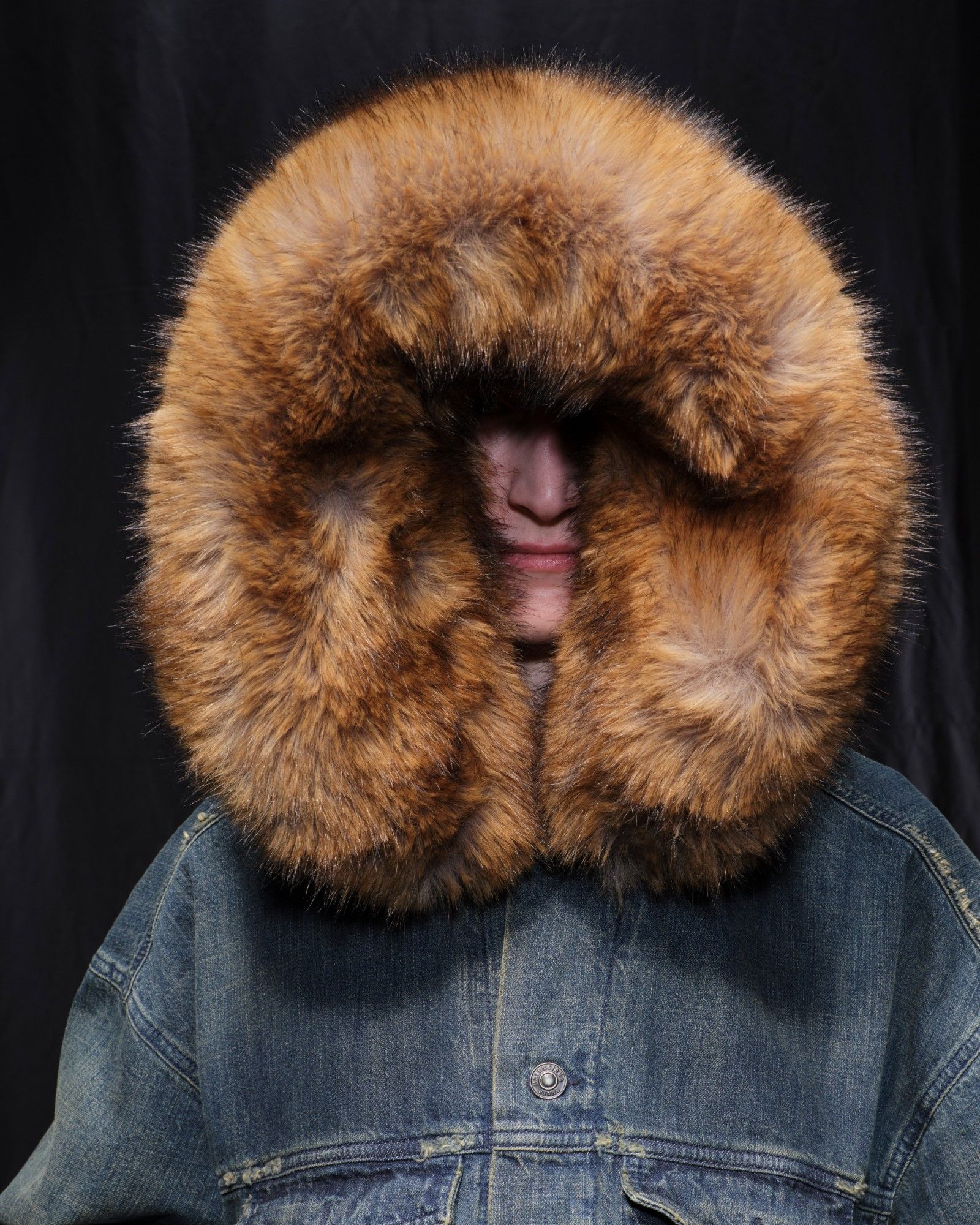 Le implicazioni estreme di quella che è parsa una sorta di indagine o esplorazione non ha solo scandagliato il mondo dell’anonimo business casual che fa parte dell’universo di Demna ma ha anche fotografato, portandolo in passerella, uno degli outfit più politicamente controversi e “carichi” dell’Europa contemporanea: la divisa dei maranza – che sarebbero, forse generalizzando, l’equivalente italiano dei “roadmen” inglesi e dei “caillera” francesi. Secondo le show notes questo oufit (che fa parte della collaborazione del brand con Puma) rappresenta «la moderna incarnazione dello streetwear» e in parte è, considerato anche come la divisa dei maranza, con le sue tute aderenti e persino il piumino smanicato, è diventata nel tempo un sinonimo di pericolo sociale (oggi come oggi a Milano, chi vede un gruppo di giovani vestito così nasconde i propri preziosi e affretta il passo) ma anche dell’esclusione e del pregiudizio che la società ha verso i giovani delle periferie e i cittadini di seconda generazione. Proprio questi outfit, pur non innovando un look già così consolidato, facevano riflettere su come, in fondo, i maranza/caillera di oggi non siano che una moderna versione dei punk anni ’80 – subcultura che oggi non percepiamo come pericolosa perché assimilata nel mondo mainstream ma che quarant’anni fa rappresentava per i buoni borghesi precisamente ciò che le moderne baby gang rappresentano oggi. In tal senso, gli show di Demna continuano a offrire materiale di riflessione su cosa sia la moda oggi oltre a proseguire nella perversa parodia del lusso e dei suoi significanti che ha reso Balenciaga il brand che è oggi.