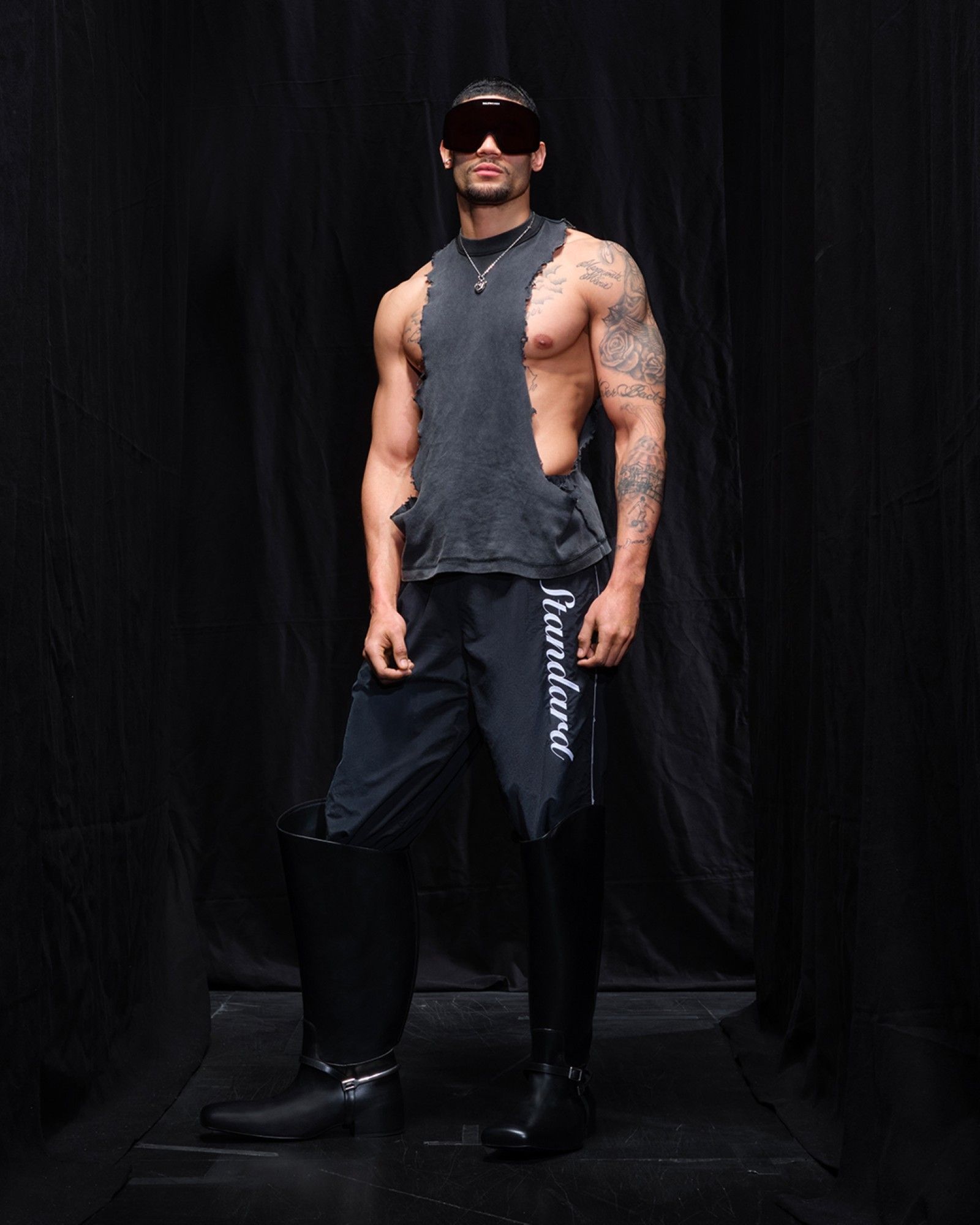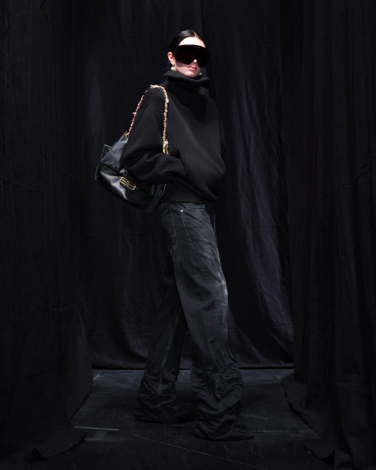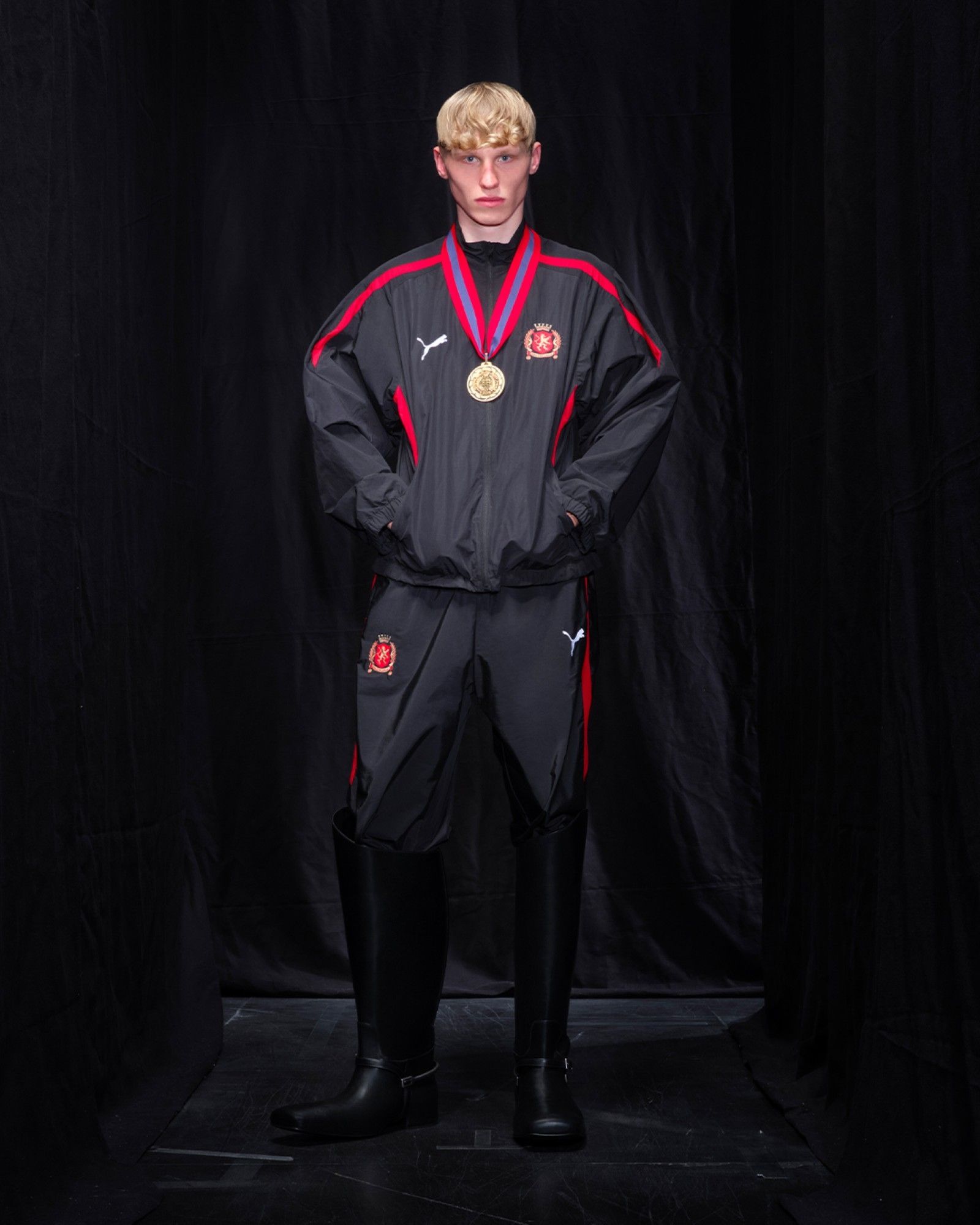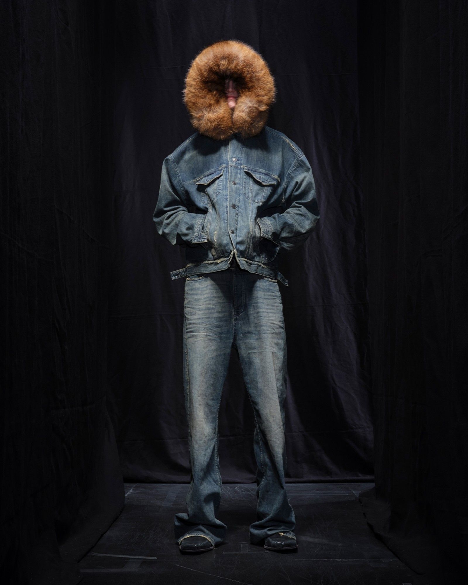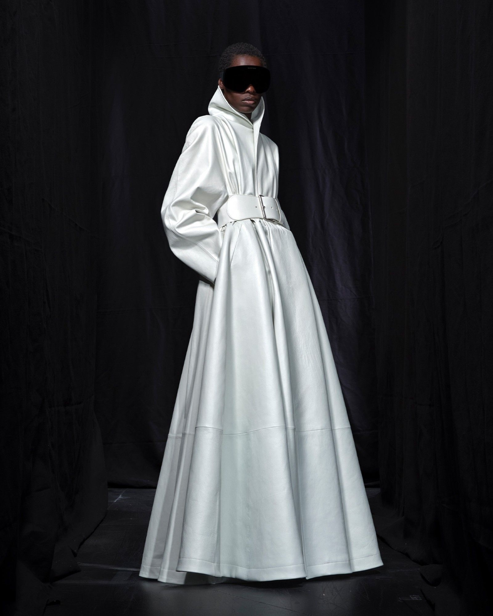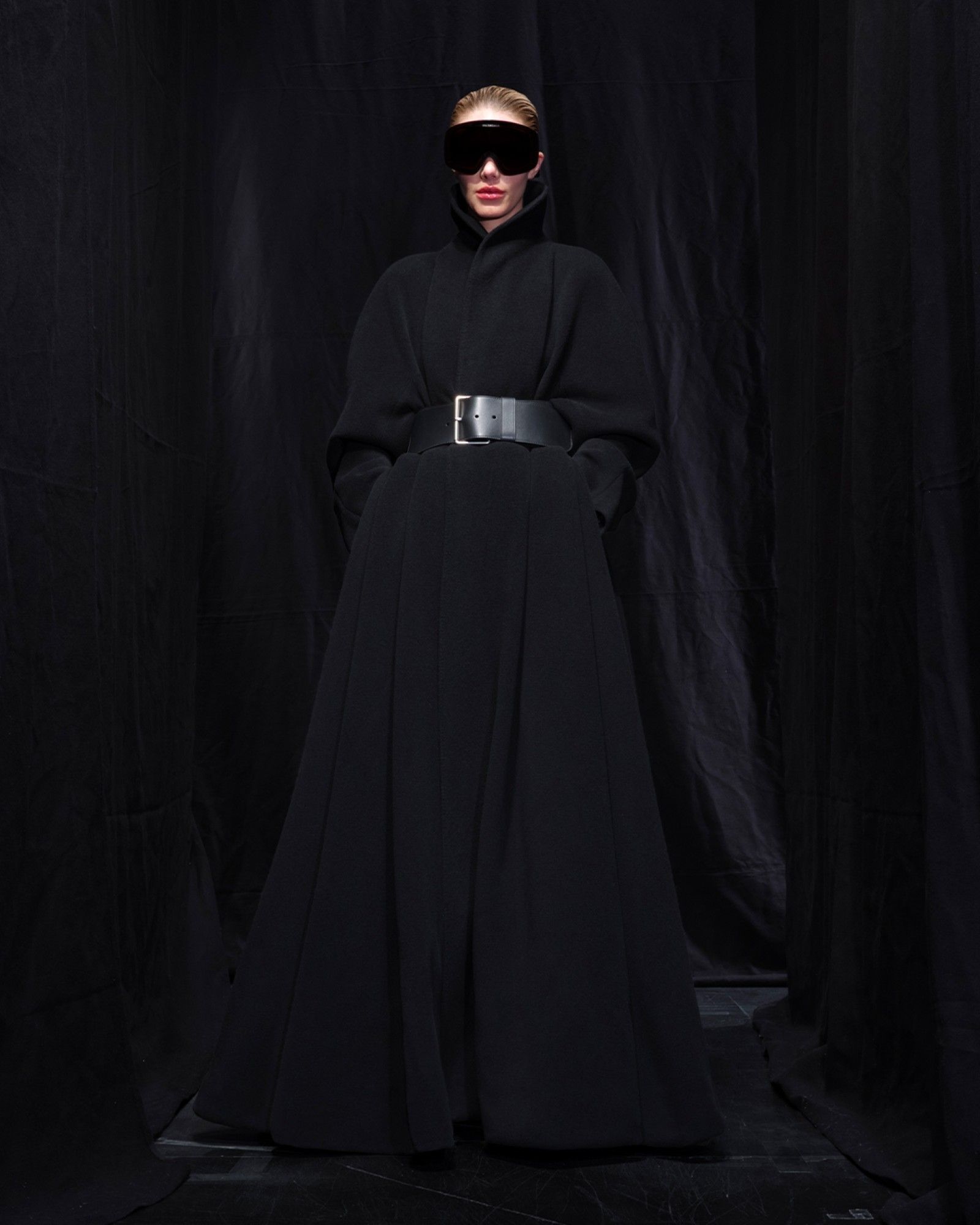 Le implicazioni estreme di quella che è parsa una sorta di indagine o esplorazione non ha solo scandagliato il mondo dell’anonimo business casual che fa parte dell’universo di Demna ma ha anche fotografato, portandolo in passerella, uno degli outfit più politicamente controversi e “carichi” dell’Europa contemporanea: la divisa dei maranza – che sarebbero, forse generalizzando, l’equivalente italiano dei “roadmen” inglesi e dei “caillera” francesi. Secondo le show notes questo oufit (che fa parte della collaborazione del brand con Puma) rappresenta «la moderna incarnazione dello streetwear» e in parte è, considerato anche come la divisa dei maranza, con le sue tute aderenti e persino il piumino smanicato, è diventata nel tempo un sinonimo di pericolo sociale (oggi come oggi a Milano, chi vede un gruppo di giovani vestito così nasconde i propri preziosi e affretta il passo) ma anche dell’esclusione e del pregiudizio che la società ha verso i giovani delle periferie e i cittadini di seconda generazione. Proprio questi outfit, pur non innovando un look già così consolidato, facevano riflettere su come, in fondo, i maranza/caillera di oggi non siano che una moderna versione dei punk anni ’80 – subcultura che oggi non percepiamo come pericolosa perché assimilata nel mondo mainstream ma che quarant’anni fa rappresentava per i buoni borghesi precisamente ciò che le moderne baby gang rappresentano oggi. In tal senso, gli show di Demna continuano a offrire materiale di riflessione su cosa sia la moda oggi oltre a proseguire nella perversa parodia del lusso e dei suoi significanti che ha reso Balenciaga il brand che è oggi.