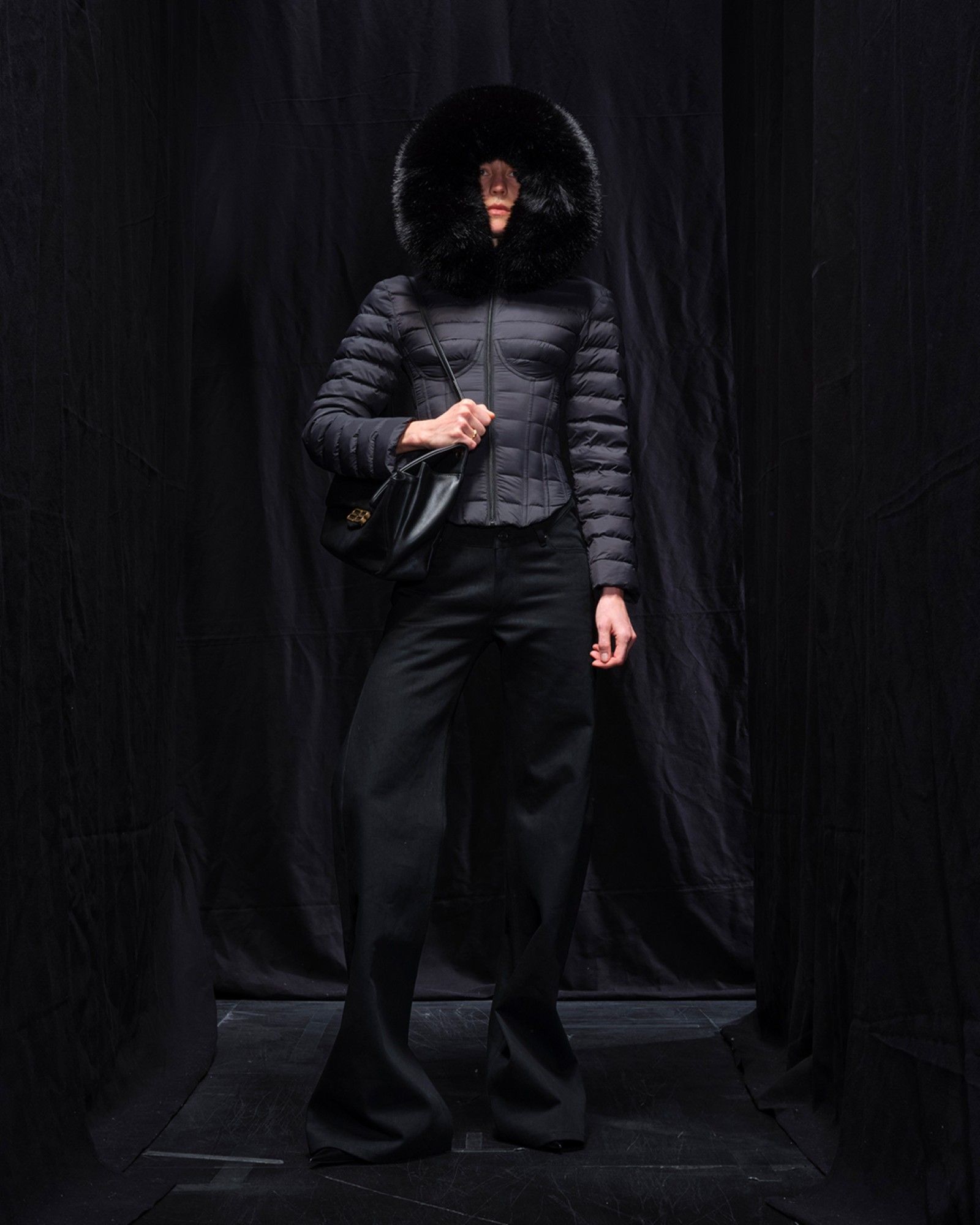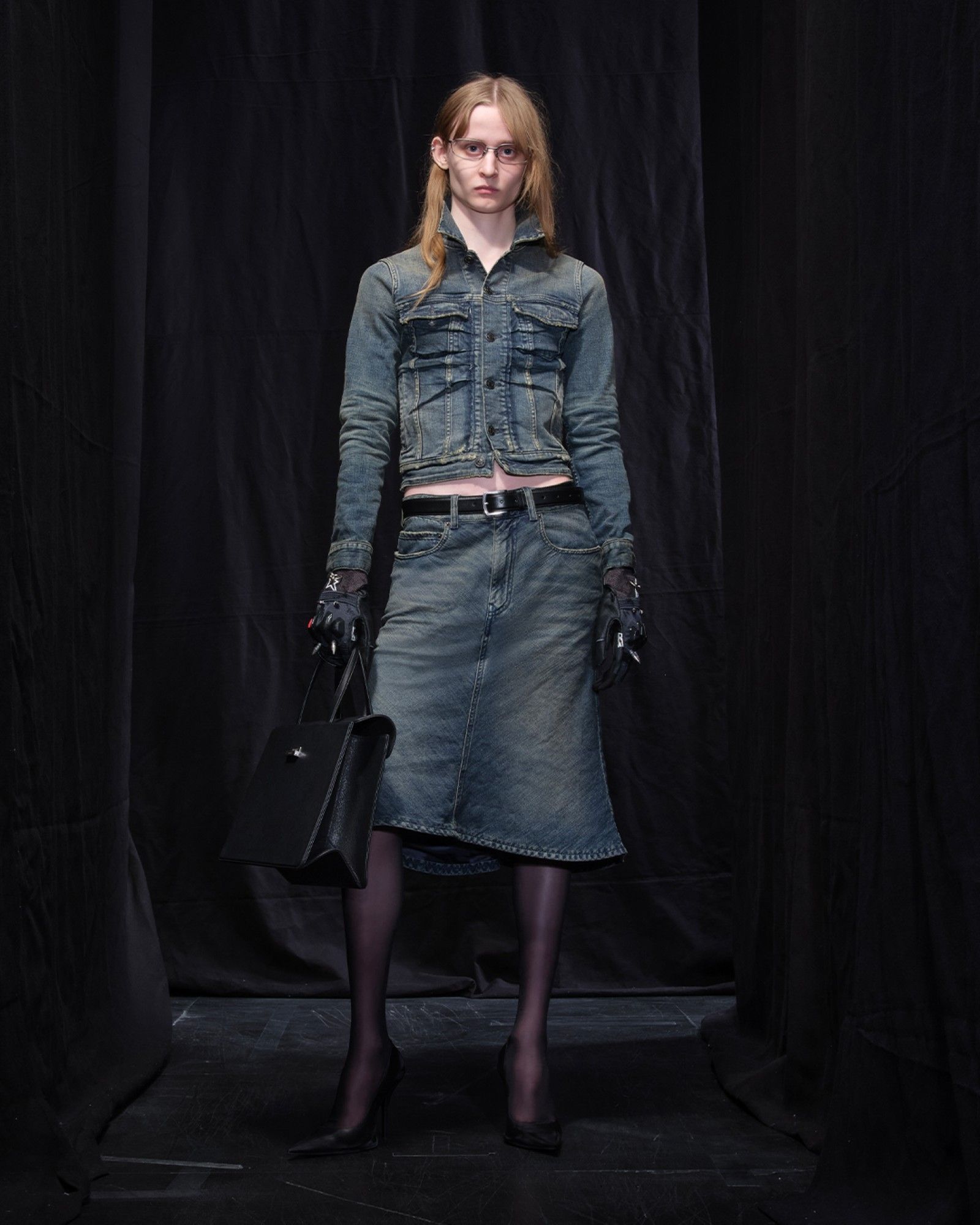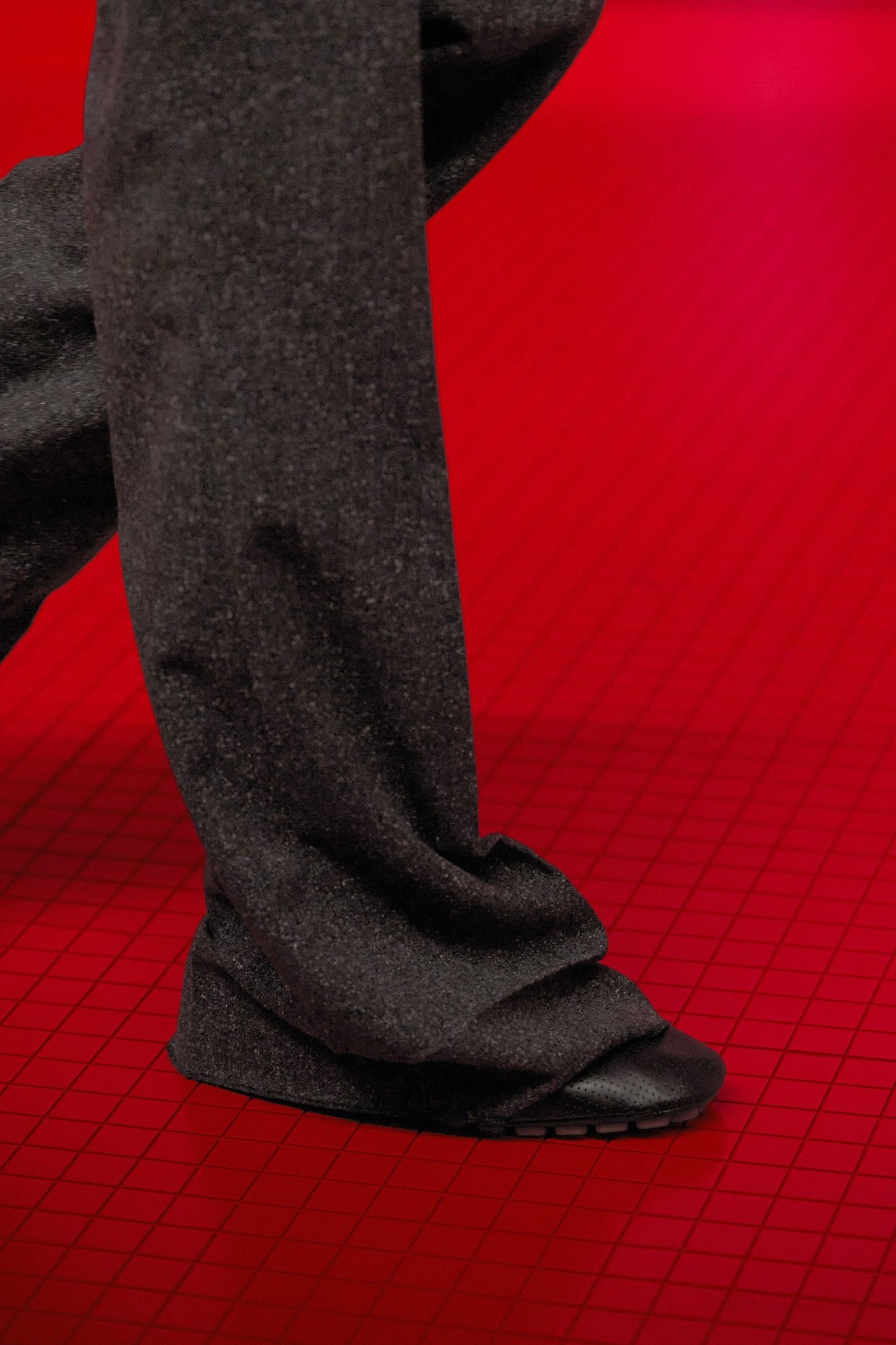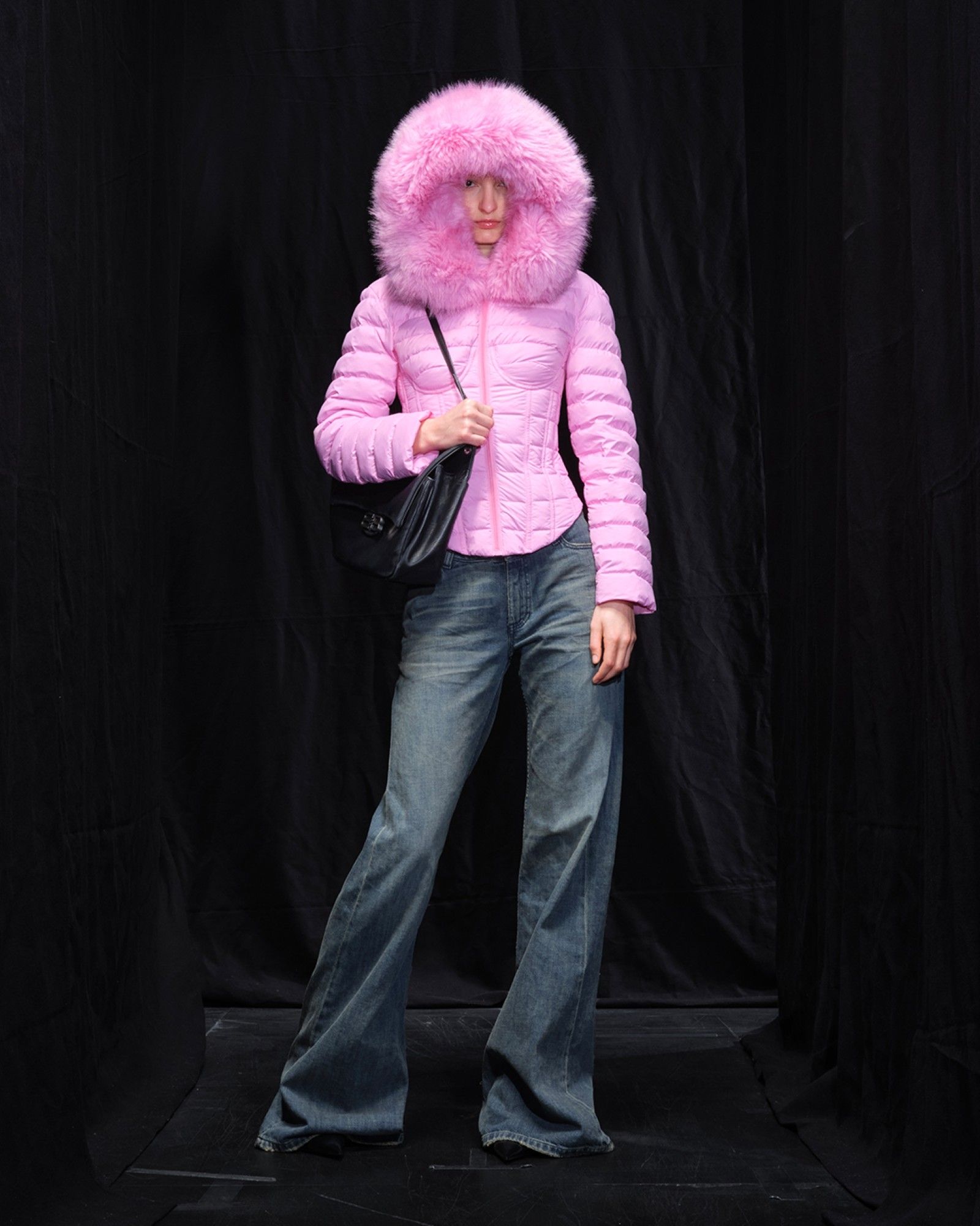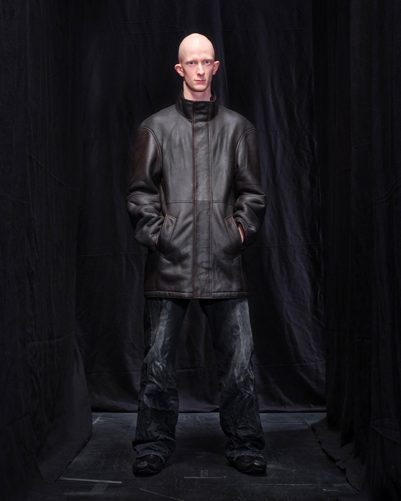 Le implicazioni estreme di quella che è parsa una sorta di indagine o esplorazione non ha solo scandagliato il mondo dell’anonimo business casual che fa parte dell’universo di Demna ma ha anche fotografato, portandolo in passerella, uno degli outfit più politicamente controversi e “carichi” dell’Europa contemporanea: la divisa dei maranza – che sarebbero, forse generalizzando, l’equivalente italiano dei “roadmen” inglesi e dei “caillera” francesi. Secondo le show notes questo oufit (che fa parte della collaborazione del brand con Puma) rappresenta «la moderna incarnazione dello streetwear» e in parte è, considerato anche come la divisa dei maranza, con le sue tute aderenti e persino il piumino smanicato, è diventata nel tempo un sinonimo di pericolo sociale (oggi come oggi a Milano, chi vede un gruppo di giovani vestito così nasconde i propri preziosi e affretta il passo) ma anche dell’esclusione e del pregiudizio che la società ha verso i giovani delle periferie e i cittadini di seconda generazione. Proprio questi outfit, pur non innovando un look già così consolidato, facevano riflettere su come, in fondo, i maranza/caillera di oggi non siano che una moderna versione dei punk anni ’80 – subcultura che oggi non percepiamo come pericolosa perché assimilata nel mondo mainstream ma che quarant’anni fa rappresentava per i buoni borghesi precisamente ciò che le moderne baby gang rappresentano oggi. In tal senso, gli show di Demna continuano a offrire materiale di riflessione su cosa sia la moda oggi oltre a proseguire nella perversa parodia del lusso e dei suoi significanti che ha reso Balenciaga il brand che è oggi.