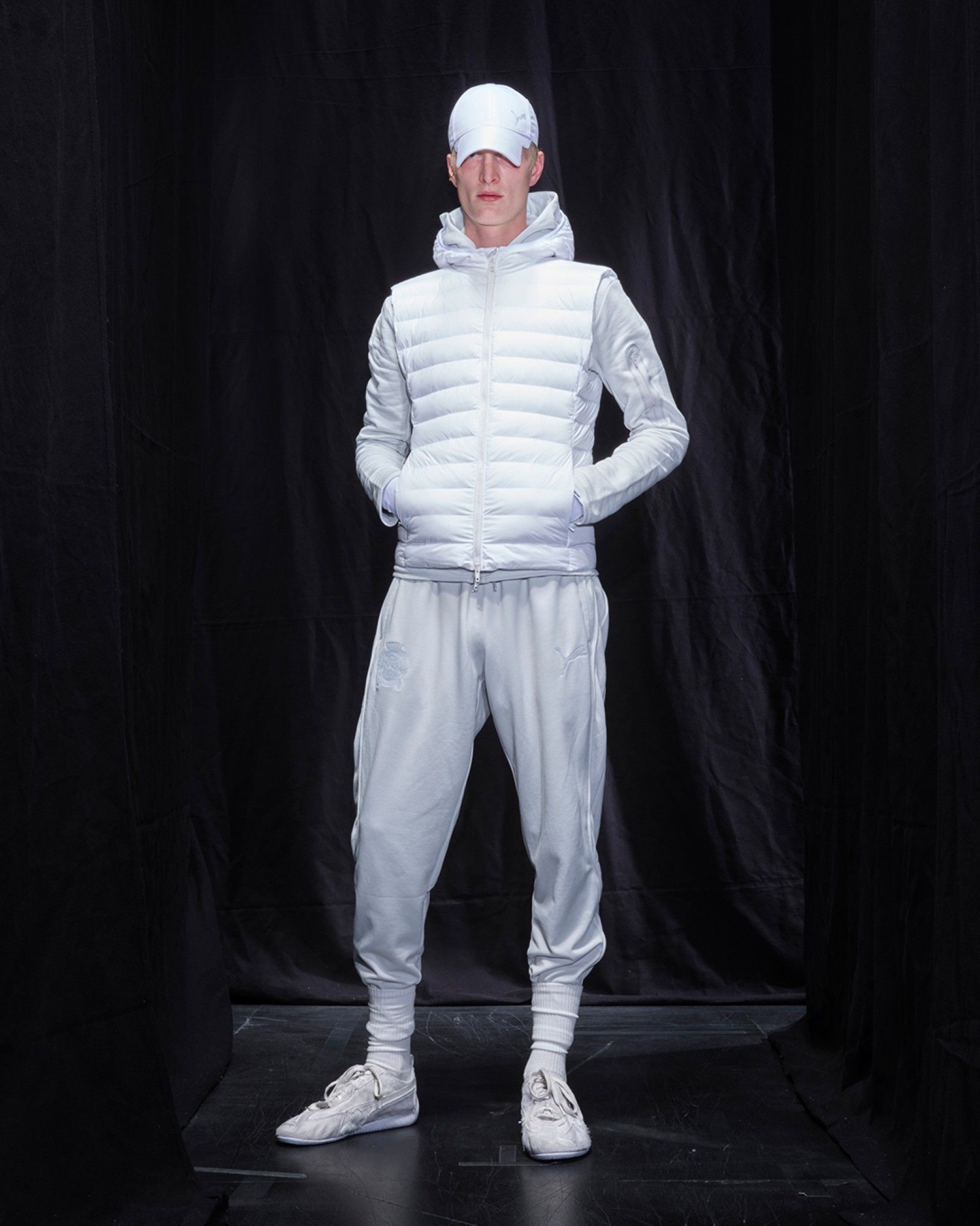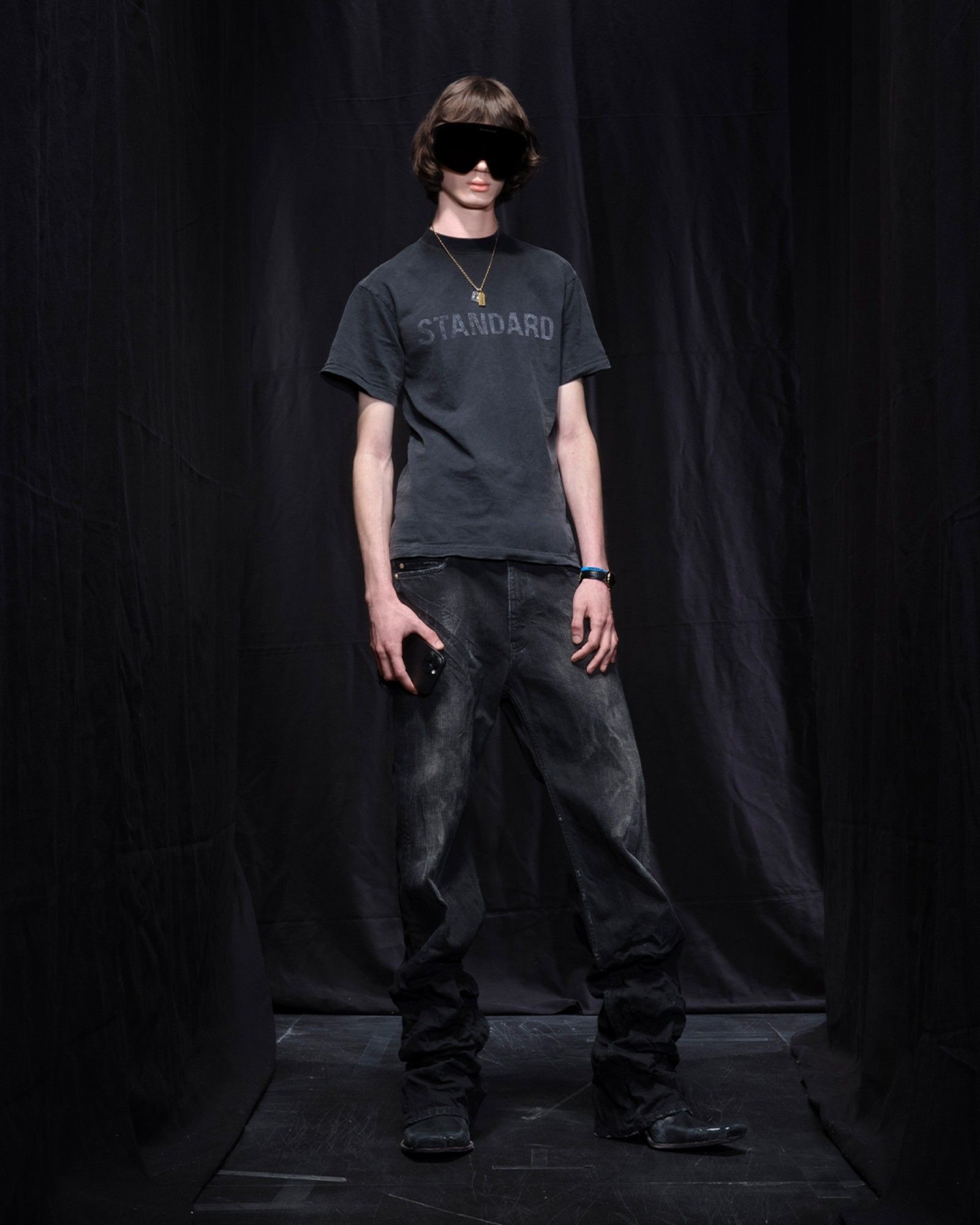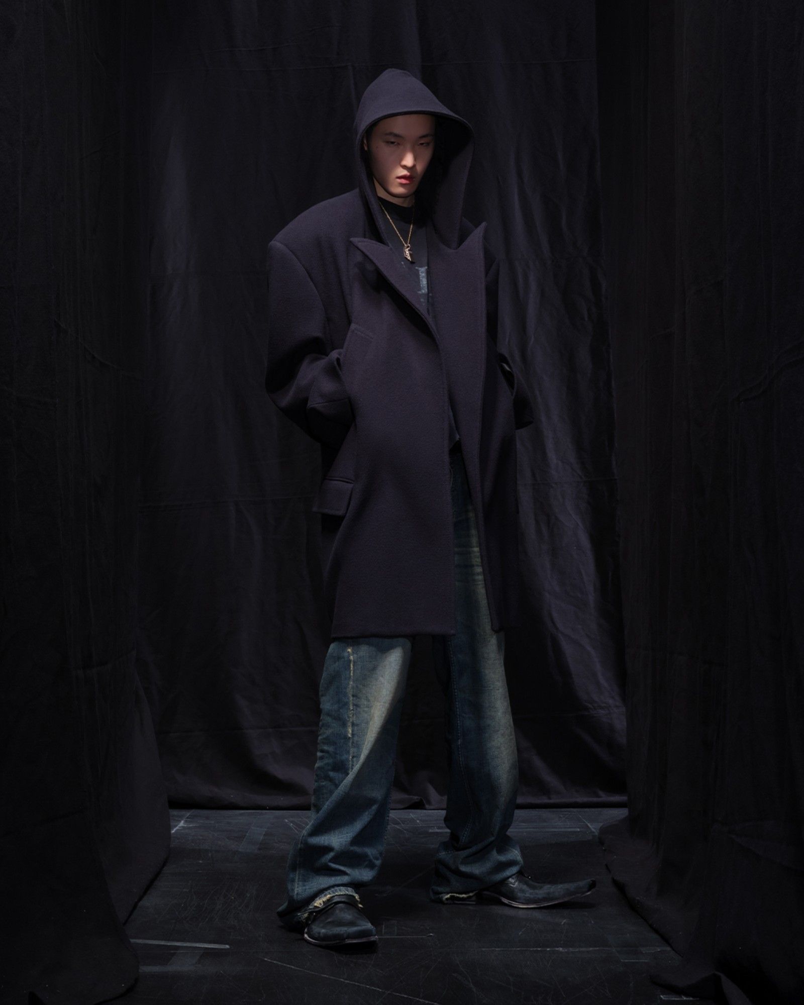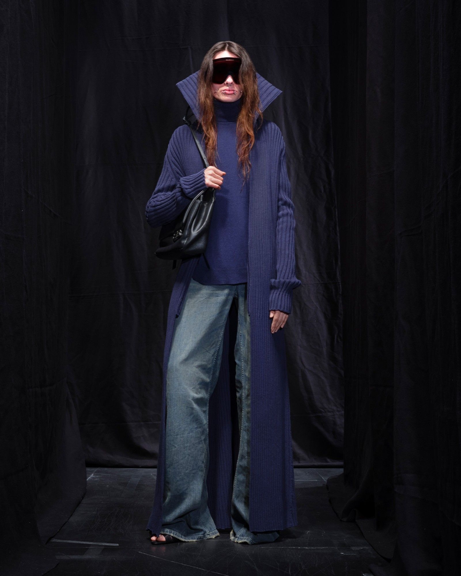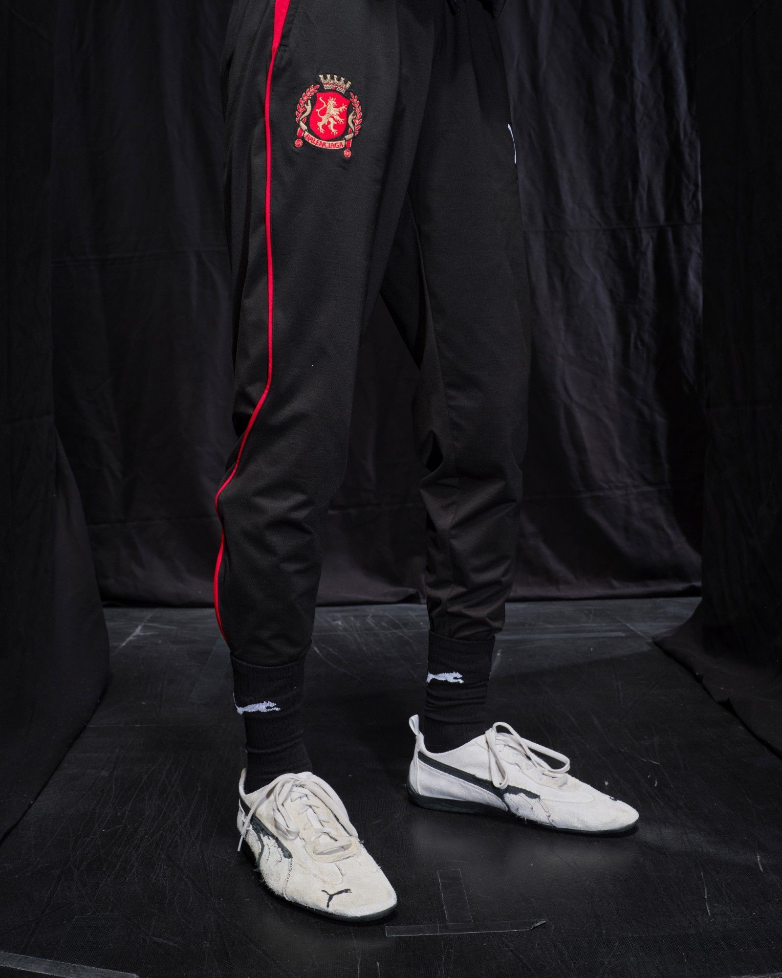 Le implicazioni estreme di quella che è parsa una sorta di indagine o esplorazione non ha solo scandagliato il mondo dell’anonimo business casual che fa parte dell’universo di Demna ma ha anche fotografato, portandolo in passerella, uno degli outfit più politicamente controversi e “carichi” dell’Europa contemporanea: la divisa dei maranza – che sarebbero, forse generalizzando, l’equivalente italiano dei “roadmen” inglesi e dei “caillera” francesi. Secondo le show notes questo oufit (che fa parte della collaborazione del brand con Puma) rappresenta «la moderna incarnazione dello streetwear» e in parte è, considerato anche come la divisa dei maranza, con le sue tute aderenti e persino il piumino smanicato, è diventata nel tempo un sinonimo di pericolo sociale (oggi come oggi a Milano, chi vede un gruppo di giovani vestito così nasconde i propri preziosi e affretta il passo) ma anche dell’esclusione e del pregiudizio che la società ha verso i giovani delle periferie e i cittadini di seconda generazione. Proprio questi outfit, pur non innovando un look già così consolidato, facevano riflettere su come, in fondo, i maranza/caillera di oggi non siano che una moderna versione dei punk anni ’80 – subcultura che oggi non percepiamo come pericolosa perché assimilata nel mondo mainstream ma che quarant’anni fa rappresentava per i buoni borghesi precisamente ciò che le moderne baby gang rappresentano oggi. In tal senso, gli show di Demna continuano a offrire materiale di riflessione su cosa sia la moda oggi oltre a proseguire nella perversa parodia del lusso e dei suoi significanti che ha reso Balenciaga il brand che è oggi.