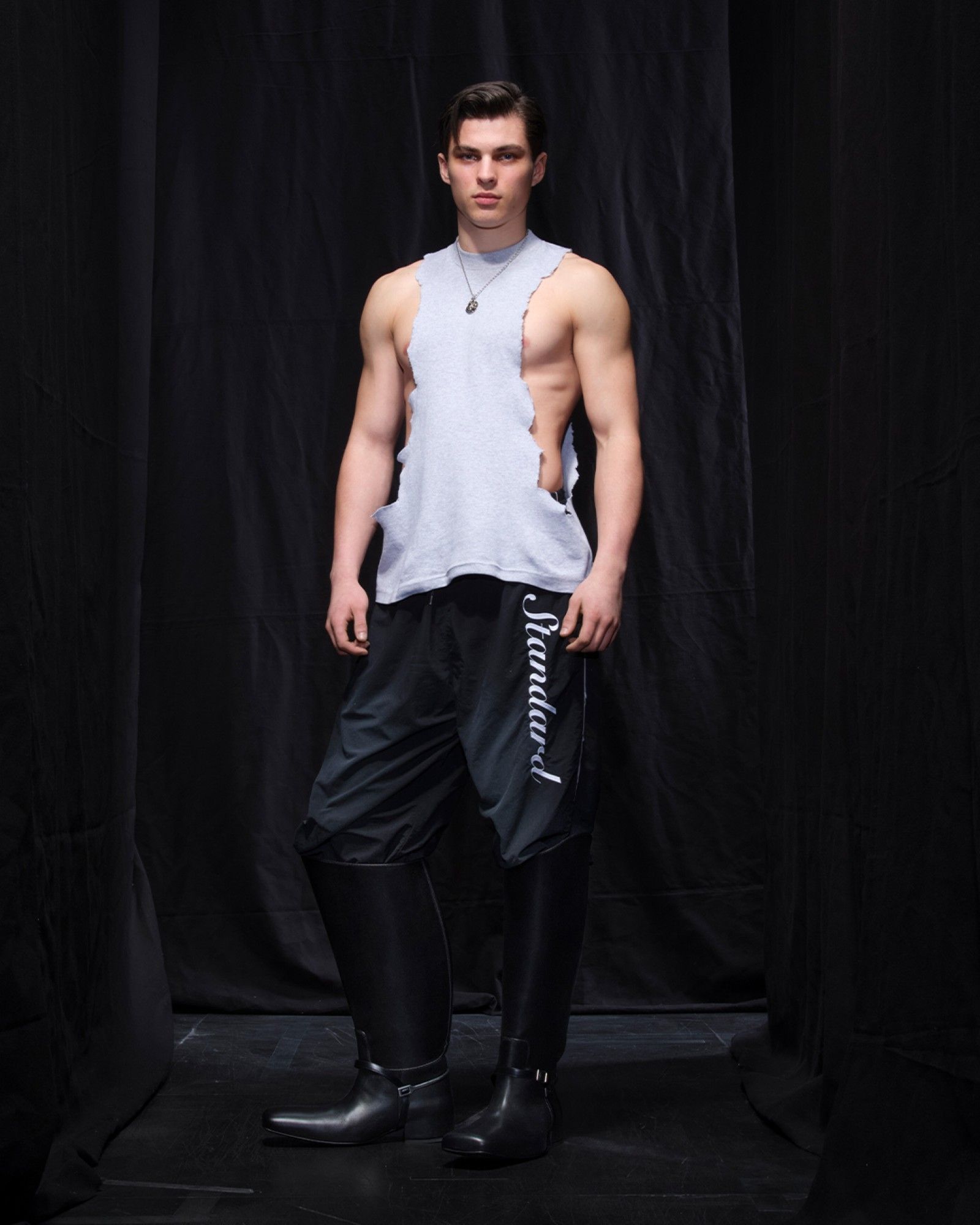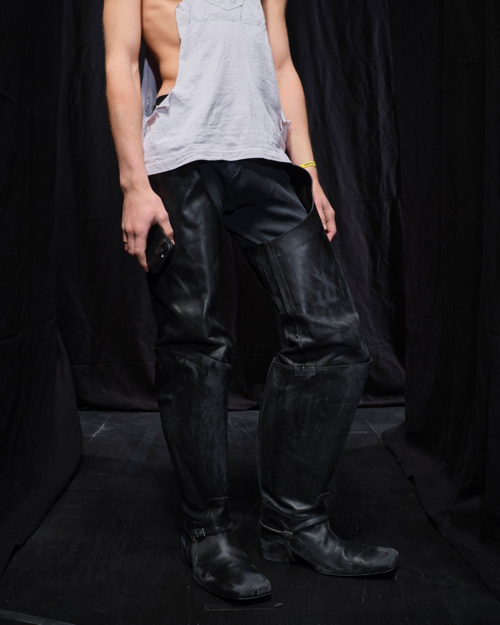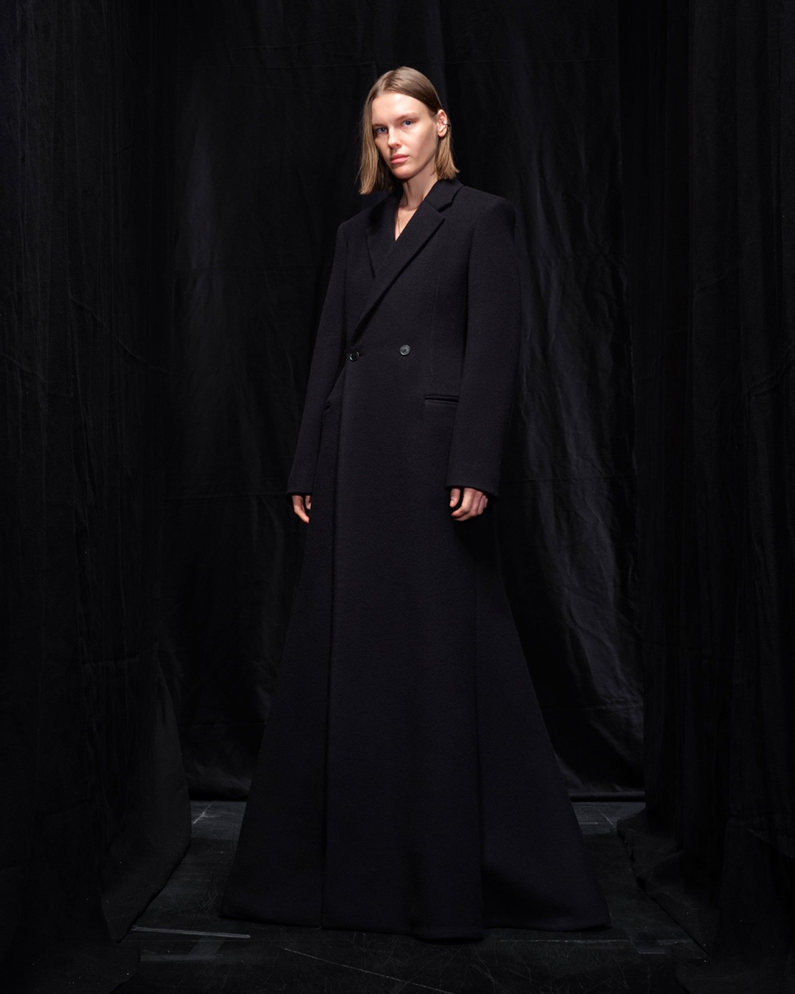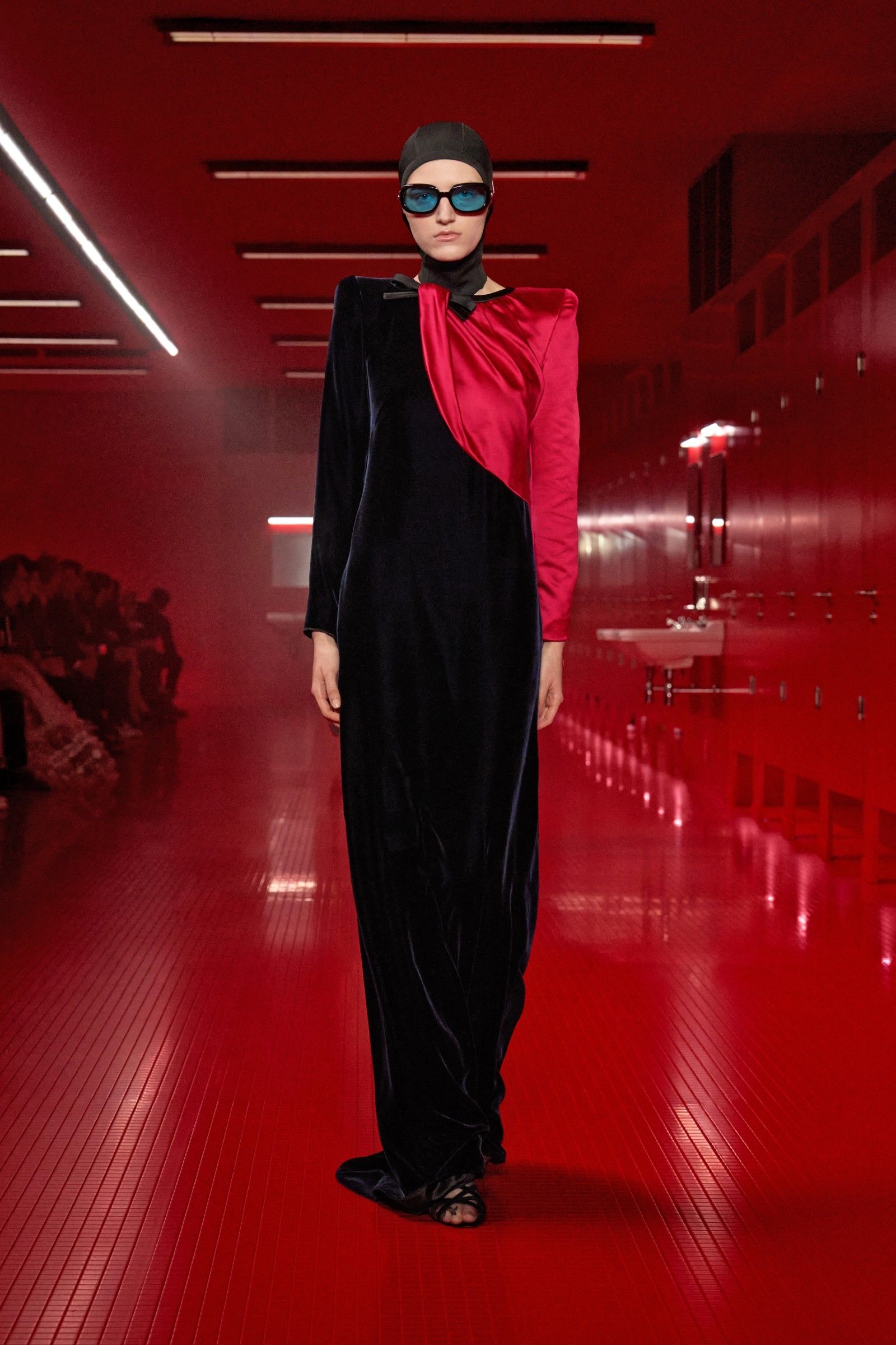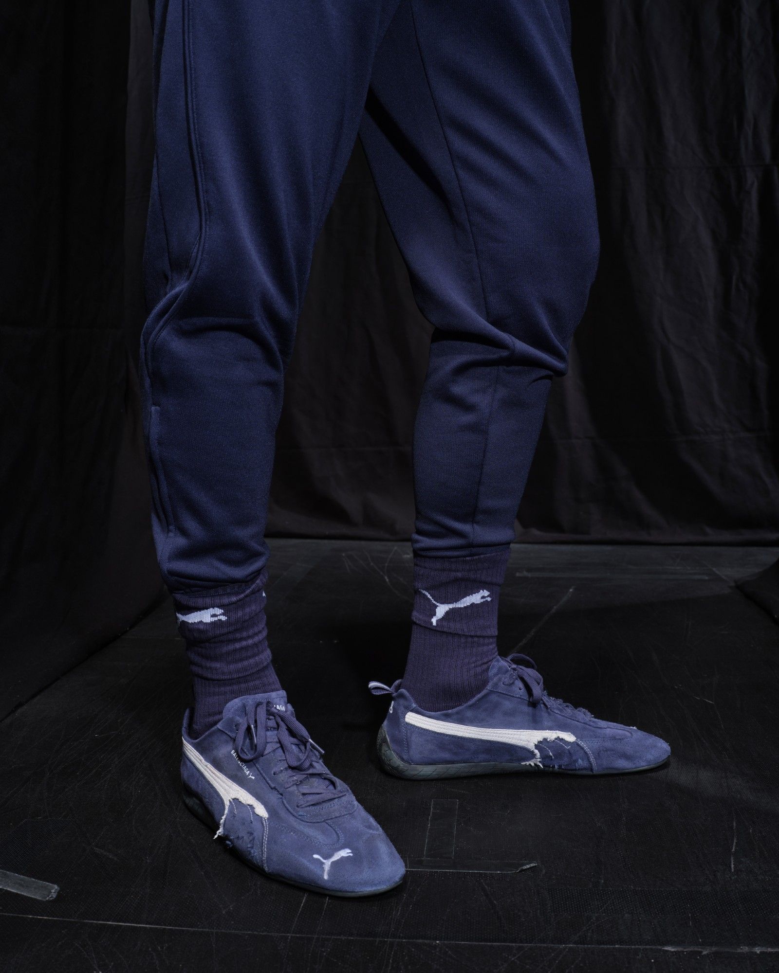 Le implicazioni estreme di quella che è parsa una sorta di indagine o esplorazione non ha solo scandagliato il mondo dell’anonimo business casual che fa parte dell’universo di Demna ma ha anche fotografato, portandolo in passerella, uno degli outfit più politicamente controversi e “carichi” dell’Europa contemporanea: la divisa dei maranza – che sarebbero, forse generalizzando, l’equivalente italiano dei “roadmen” inglesi e dei “caillera” francesi. Secondo le show notes questo oufit (che fa parte della collaborazione del brand con Puma) rappresenta «la moderna incarnazione dello streetwear» e in parte è, considerato anche come la divisa dei maranza, con le sue tute aderenti e persino il piumino smanicato, è diventata nel tempo un sinonimo di pericolo sociale (oggi come oggi a Milano, chi vede un gruppo di giovani vestito così nasconde i propri preziosi e affretta il passo) ma anche dell’esclusione e del pregiudizio che la società ha verso i giovani delle periferie e i cittadini di seconda generazione. Proprio questi outfit, pur non innovando un look già così consolidato, facevano riflettere su come, in fondo, i maranza/caillera di oggi non siano che una moderna versione dei punk anni ’80 – subcultura che oggi non percepiamo come pericolosa perché assimilata nel mondo mainstream ma che quarant’anni fa rappresentava per i buoni borghesi precisamente ciò che le moderne baby gang rappresentano oggi. In tal senso, gli show di Demna continuano a offrire materiale di riflessione su cosa sia la moda oggi oltre a proseguire nella perversa parodia del lusso e dei suoi significanti che ha reso Balenciaga il brand che è oggi.