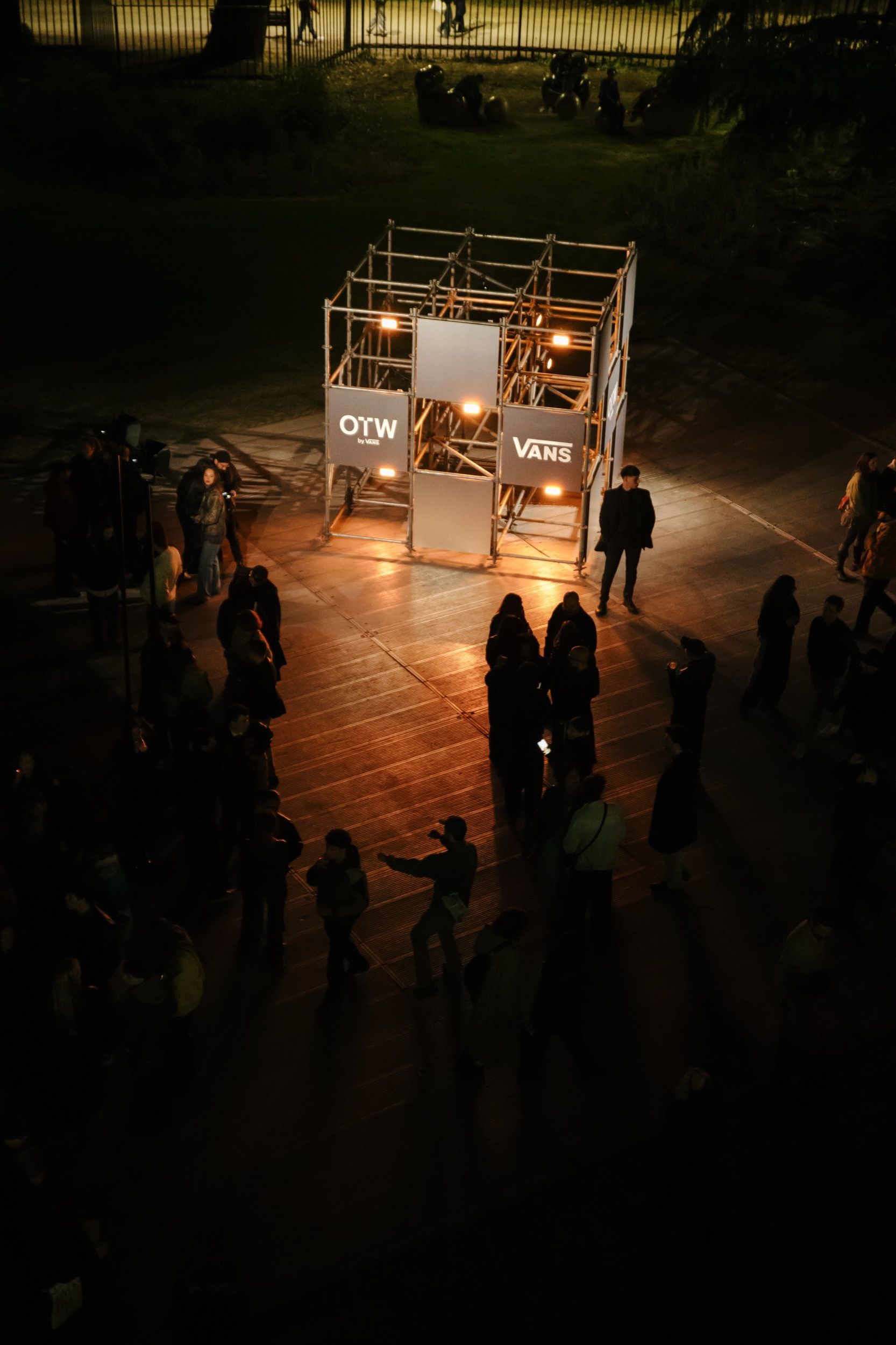 “CHECKERED FUTURE: FREQUENCY MANIFEST” ha tradotto visivamente concetti immateriali come onde, frequenze e vibrazioni, restituendoli attraverso un impianto scenico fatto di specchi, luci pulsanti e geometrie monumentali. Il checkerboard pattern, simbolo ricorrente di Vans, è stato trasformato in un dispositivo architettonico che ridefiniva lo spazio e ne moltiplicava le prospettive, creando una connessione diretta tra passato iconico e immaginario futuro del brand. Protagonista dell’evento, la Old Skool 36 FM si presenta come la prima release della serie OTW “Future Make”. Lontana dalla semplice riedizione nostalgica, la sneaker propone una reinterpretazione radicale del modello Old Skool (originariamente Style 36), spingendo sul fronte della ricerca tecnica e dei materiali. La costruzione cupsole a componenti separati, l’upper in engineered-knit tridimensionale e la nuova sidestripe in TPU stampata in 3D testimoniano un’evoluzione concreta del design, pensata per rispondere alle esigenze di un pubblico che ricerca estetica e performance. A completare il progetto, la soletta proprietaria Sola Foam ADC e la costruzione EVA Strobel, che assicurano leggerezza, comfort e reattività. L’attivazione milanese si inserisce in una strategia più ampia già testata su scala globale: dall’installazione skate allestita sotto la basilica del Sacré Coeur a Parigi nel giugno 2024, alla collaborazione con Sterling Ruby e il suo progetto S.R.STUDIO.LA.CA. per Frieze Los Angeles, fino al debutto parigino della linea OTW sulla Senna durante la fashion week maschile del 2023. Progetti diversi ma accomunati da una visione: raccontare il futuro della creatività attraverso forme ibride e immersive.