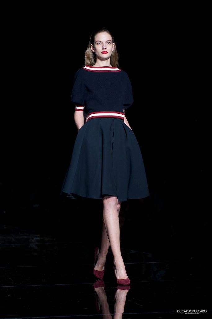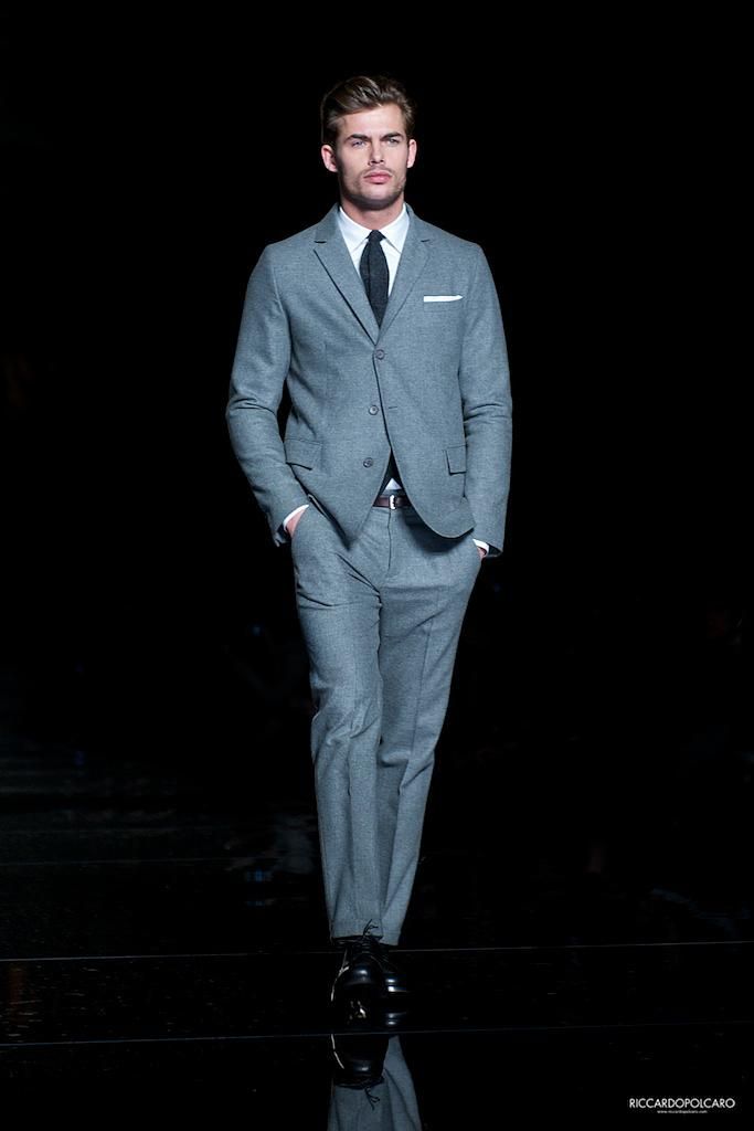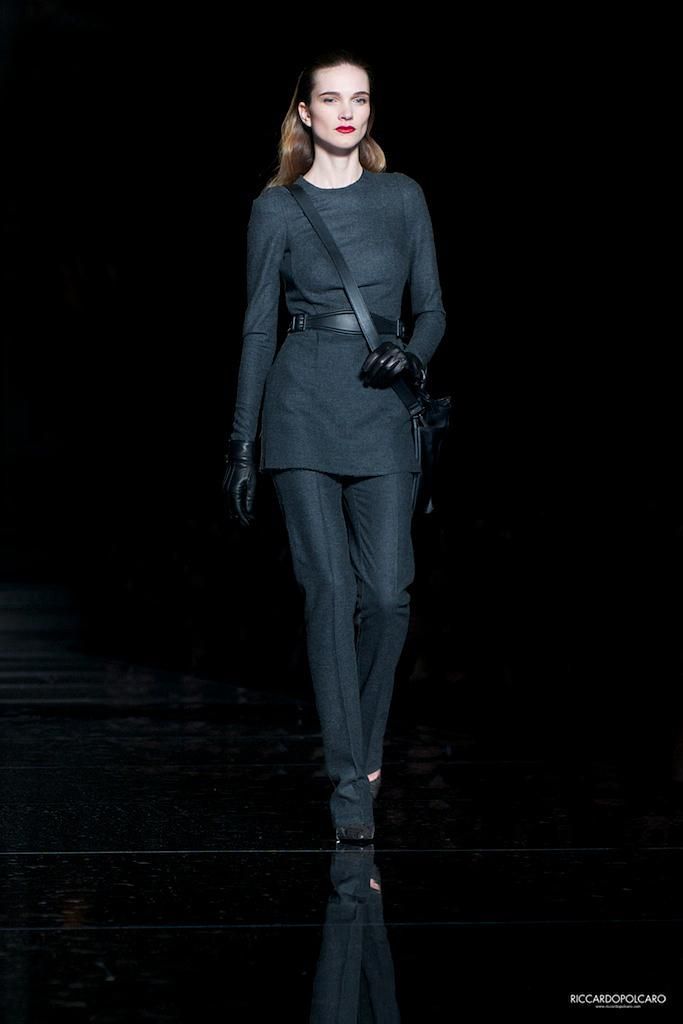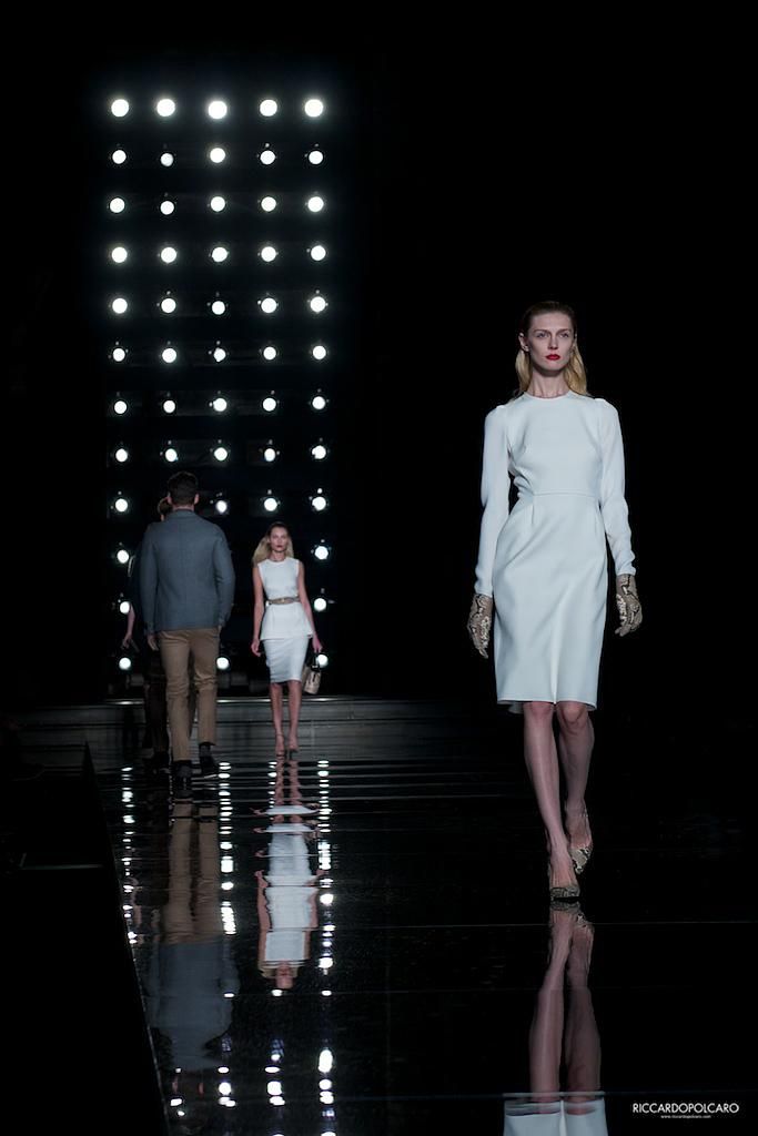 Ermanno Scervino occupa lo spazio elegante e affrescato della sala del cinquecento a Palazzo Vecchio. In prima fila non mancano Susy Menkes, Franca Sozzani e il sindaco Fiorentino Matteo Renzi. In un'atmosfera coinvolgente fatta di luci e stile, sfila un uomo estremamente elegante. Blazer doppio petto, girocollo bon-ton, cappotti classici e papillon ricreano un'atmosfera vintage tra lana pregiata, pelletteria italiana e dettagli di stile. Se l'uomo accenna al senso più mascolino della moda, la donna di Ermanno Scervino cerca la frivolezza, gioca con lo stile androgino e ammicca all'eleganza femminile fatta di pizzo, seta e pelliccia. Grigio, Blu, Bordeux e Panna sono i colori che risplendono sulla passerella di vetro fumè.