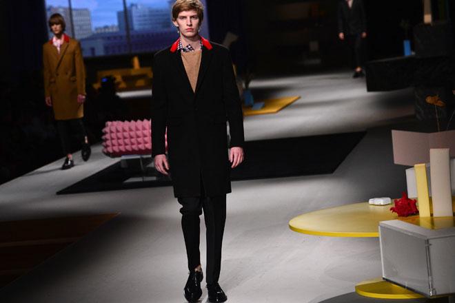 Prada, Koolhaas, Hamilton: fashion, art, design. The classic catwalk turns into a museum, the space is furnished with pieces of furniture designed by architect Rem Koolhaas, the scenery reminds us of the style of the paintings of the precursor of Pop Art Richard Hamilton, who died in 2011. The fabrics take shape and color under the lights, an extraordinary palette of intense tones alternating on the catwalk on the notes of a melody a bit hysterical, a little relaxing, which usually changed abruptly. Fashion is culture, intelligence and elegance have always been the foundation of the concept proposed by Miuccia, which is aimed at educated and have the ability to observe.