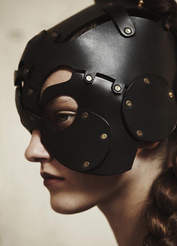 Come un baccello che racchiude la più tetra forza, la collezione della designer londinese Gabriella Marina González rappresenta una nuova visione della poesia più sinistra, il lato spettrale e malinconico che echeggia in ciascuna donna. Gabriella descrive la scena apocalittica del mito del Ciclope, un gigante dalle sembianze quasi umane con un occhio sulla fronte. Definito sin dall'antichità una mostruosità atta solo ad intimorire, la designer trova in lui un' estrema positività. Un esercito di "mostri" che utilizzano la malformazione anatomica dell'occhio sulla fronte come la più aulica delle simbologie. Un occhio che, posizionato ai confini della mente riesce a guardare il mondo con estrema capacità di raziocinio. Maschere di cuoio e finimenti con rivetti metallici, altissime zeppe e maglie allentate; ecco a voi "The Apprentice Ciclopi".