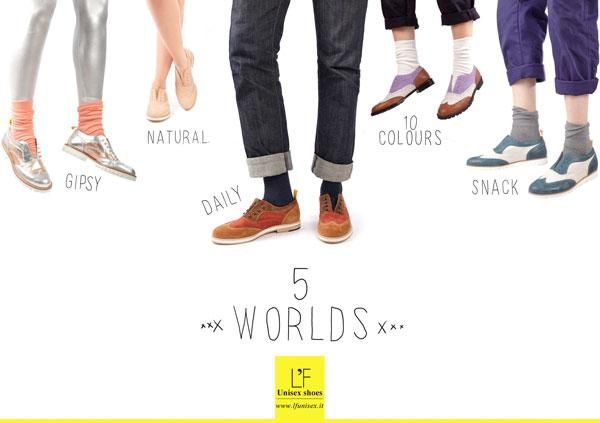 Licia Florio e Francio Ferrari, designer del giovane brand L'F unisex shoes, reinventano la classica stringata e accorciano, allo stesso tempo, i confini fra la scarpiera di lei e quella di lui. I lacci e la linguetta escono di scena, lasciando il posto a borchie, cuciture a vista e colori accesi declinati in combinazioni ironiche e versatili come quelle mostrateci con la nuova collezione spring/summer 2013. Nuovi materiali, tessuti e pelli ingrassate e laminate si accompagnano a suole sempre più tecniche come Vibram e Ilga, adattandosi così a cinque diversi modi di indossare la qualità e l'ironia. Cinque, appunto, i mondi delle nuove L'F unisex shoes: le 10Colours che giocano con una ampia cartella di colori mixati con suola bianca Ilga o nera Vibram, borchie oro o argento; le Gipsy laminate argento o rosa, illuminate da suola bianca e borchie argento; le Daily che sposano il gusto classico con suola in cuoio, pelle toscana dai colori caldi e ganci da montagna bruniti; le Natural in pelle morbida dal colore naturale con suola in cuoio e micro bianca ed infine le Snack che oltrepassano i confini del modello classico per sfociare in quelli delle intramontabili sportive, dando vita ad una scarpa ibrida che rappresenta un buon compromesso fra le due realtà. Il mantra decantato dai più convinti minimalisti, "Less is more", dunque sembra ancora una volta essere la carta vincente. Le sottrazioni di elementi del modello classico presenti nelle creazioni di Licia e Francio, infatti, finisco per conferire a questa ultima collezione "quel qualcosa in più"; emblema di una grande personalità.
