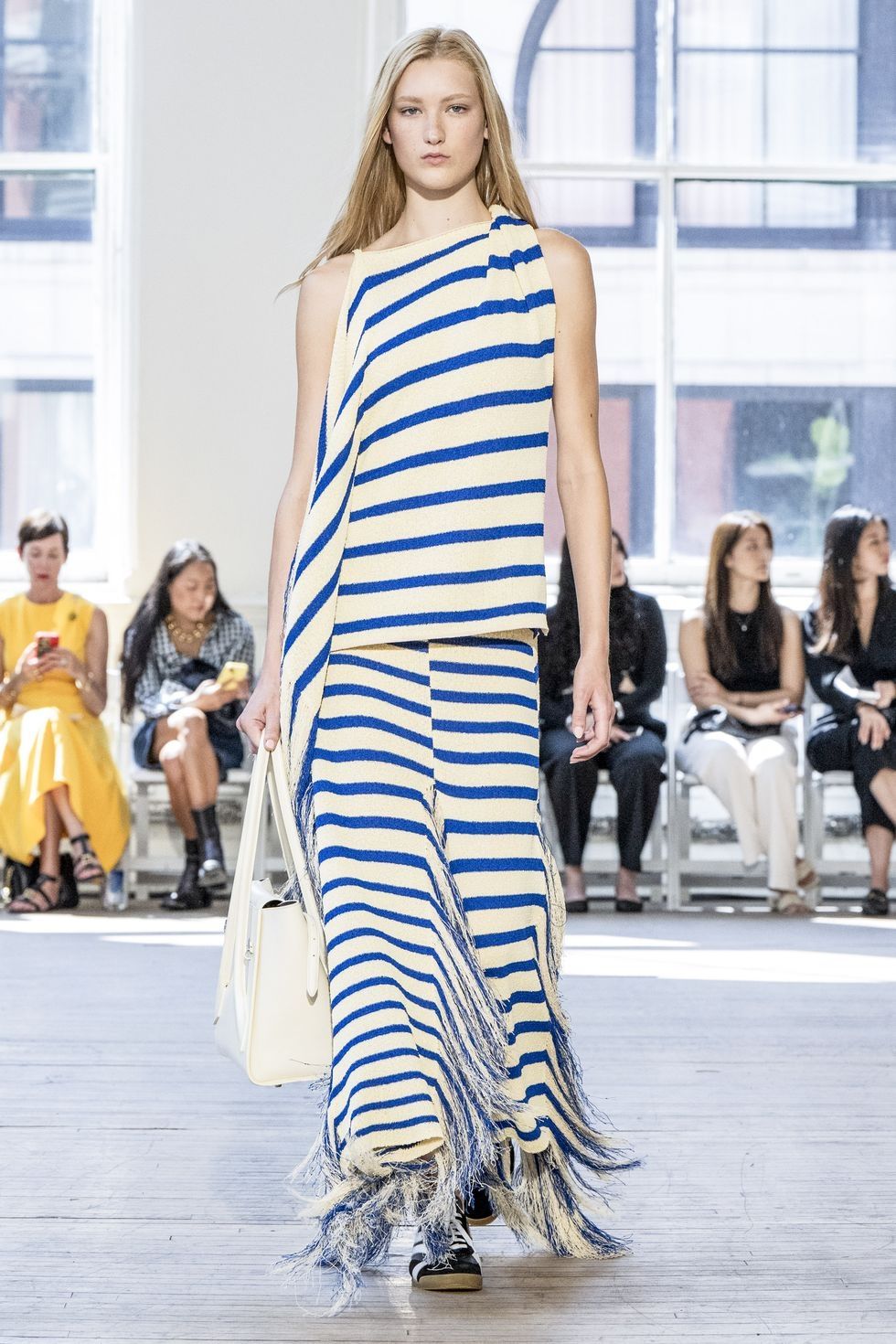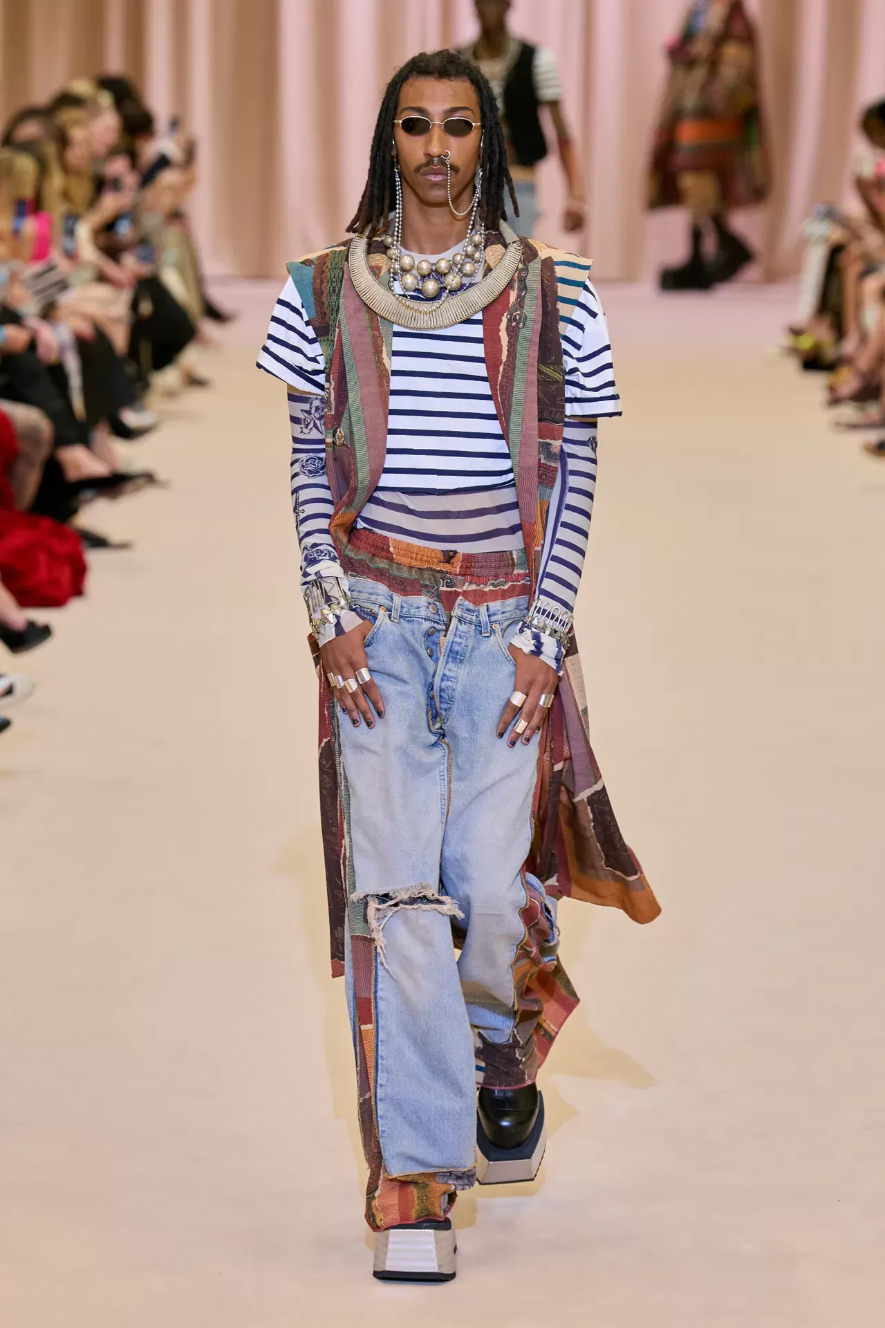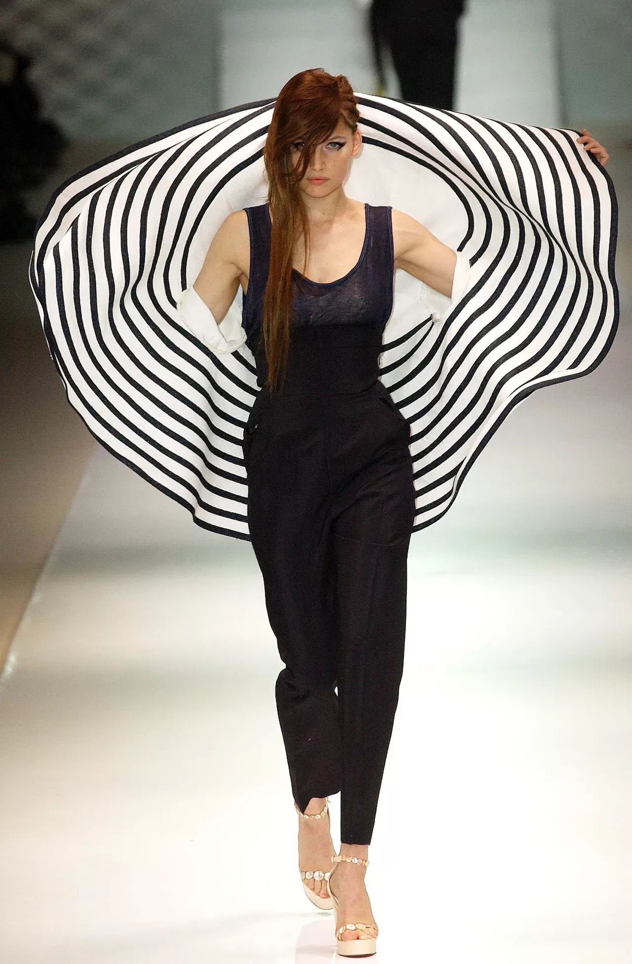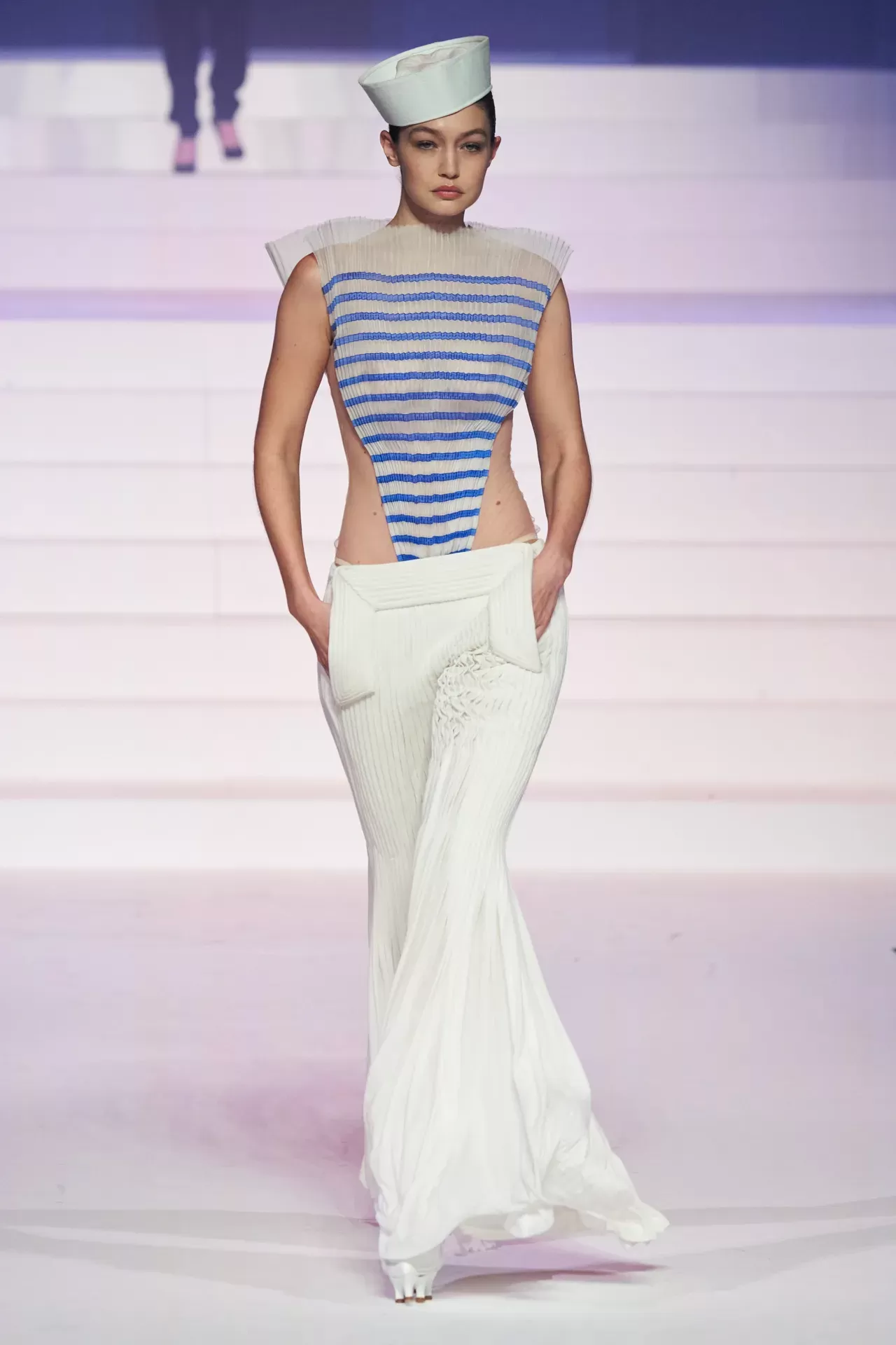 Ma anche con il suo founder in pensione, la marinière continua a impregnare il DNA di Jean Paul Gaultier attraverso i suoi guest designers, in particolare Olivier Rousteing, Glenn Martens e più recentemente Duran Lantink che anche nelle collezioni del suo brand personale si diverte a reinterpretare il motivo a righe in tutte le sue forme e colori. Sarà forse questa ripresa dei codici della Maison Gaultier ad avergli valso la nomina alla direzione artistica del marchio? Chi lo sa. Quello che sappiamo è che la nuova ondata di stilisti, come il duo McCollough e Hernandez di Proenza Schouler (di cui si attendono con impazienza i debutti da Loewe) o Daniel Roseberry da Schiaparelli, non esita a perpetuare l’eredità della marinière lasciata dalla storia, che sia classica, blu, rossa, nera, sotto forma di abito, giacca strutturata o anche velo. Gli anni passano, le tendenze si susseguono e si rincorrono, alcune si spengono per sempre, ma la marinière resta.