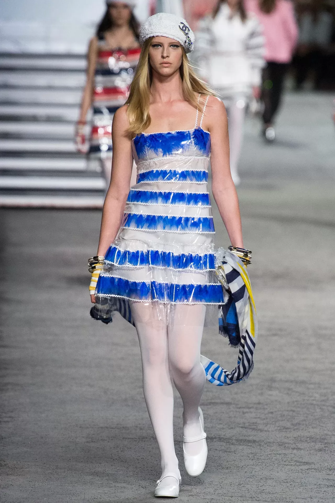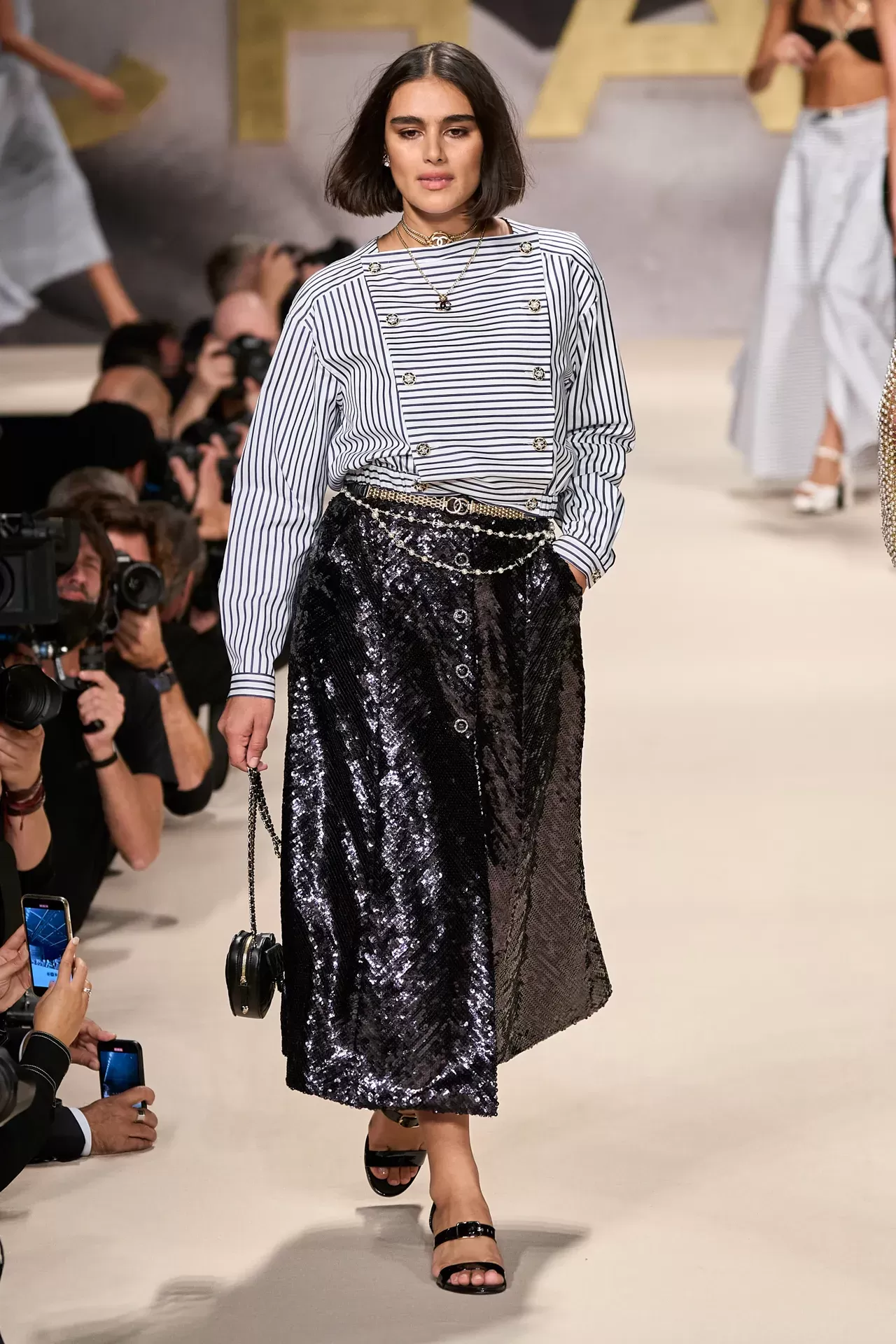 Dal 1913, infatti, la marinière abbandona il suo status di workwear per diventare un vero e proprio capo iconico della moda, grazie a una figura emblematica della rivoluzione dell’abbigliamento femminile: Gabrielle Chanel. Quando scoppia la prima guerra mondiale, Coco Chanel si rifugia a Deauville, in riva al mare, dove la sua percezione e la sua concezione della moda si affinano, ispirate non solo dal mondo equestre che la circonda, ma anche dall'aria salmastra e dall’uniforme dei suoi marinai. Così, la marinière entra a far parte delle sue creazioni nelle vetrine della sua boutique, frequentate dall’alta borghesia francese e internazionale, rifugiatasi anch’essa a Deauville, lontano dalla guerra e dai suoi pericoli. Ma la marinière non se ne andrà con Coco Chanel, scomparsa nel 1971. Democratizzata dalla maglieria bretone Le Minor, fornitore ufficiale dei marinai, la marinière sarà anche amata e reinterpretata dal successore di Gabrielle Chanel, Karl Lagerfeld, che durante i suoi 36 anni alla guida della Maison non smetterà mai di reinventarla, in particolare nelle sue famose collezioni crociera come La Pausa del 2019.