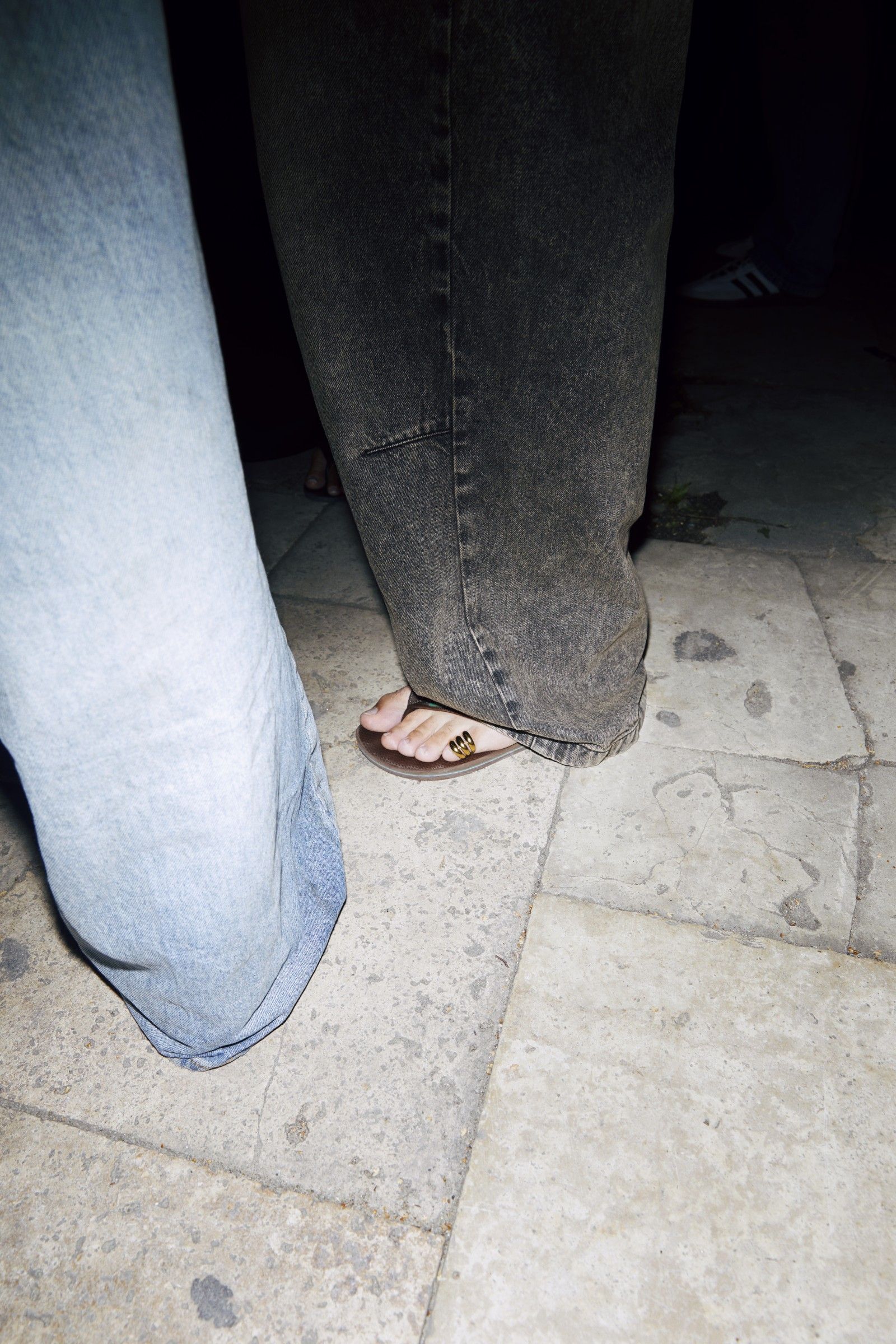 Il modello ‘SLIM SPLIT’ si è ispirato al tradizionale sandalo giapponese Zori – la matrice originaria di tutte le Havaianas – reinterpretandone la silhouette con una punta incurvata e fascette in stile “jelly”. Al contempo, ha mantenuto dettagli iconici come la texture a grana di riso sul plantare, arricchendoli con una nuova architettura: una silhouette audace, definita da un toecap scolpito e da una struttura geometrica che evidenziava la precisione della stampa additiva.
