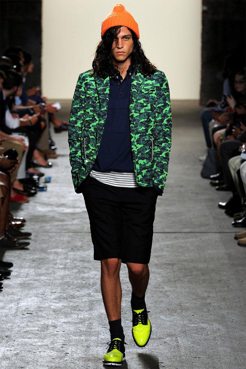 General idea, marchio fondato nel 2003 dal coreano Bumsuk Choi, presenta una nuova collezione per la prossima primavera-estate. Il colore è il protagonista assoluto, tinte neutre si sposano con toni neon. Stampe camouflage, creepers ai piedi, beanies, bermuda, camicia portata fuori dai pantaloni, compongono uno stile street ed energico, con l’ormai immancabile tocco grunge, perfetto per ragazzi easy e cool.