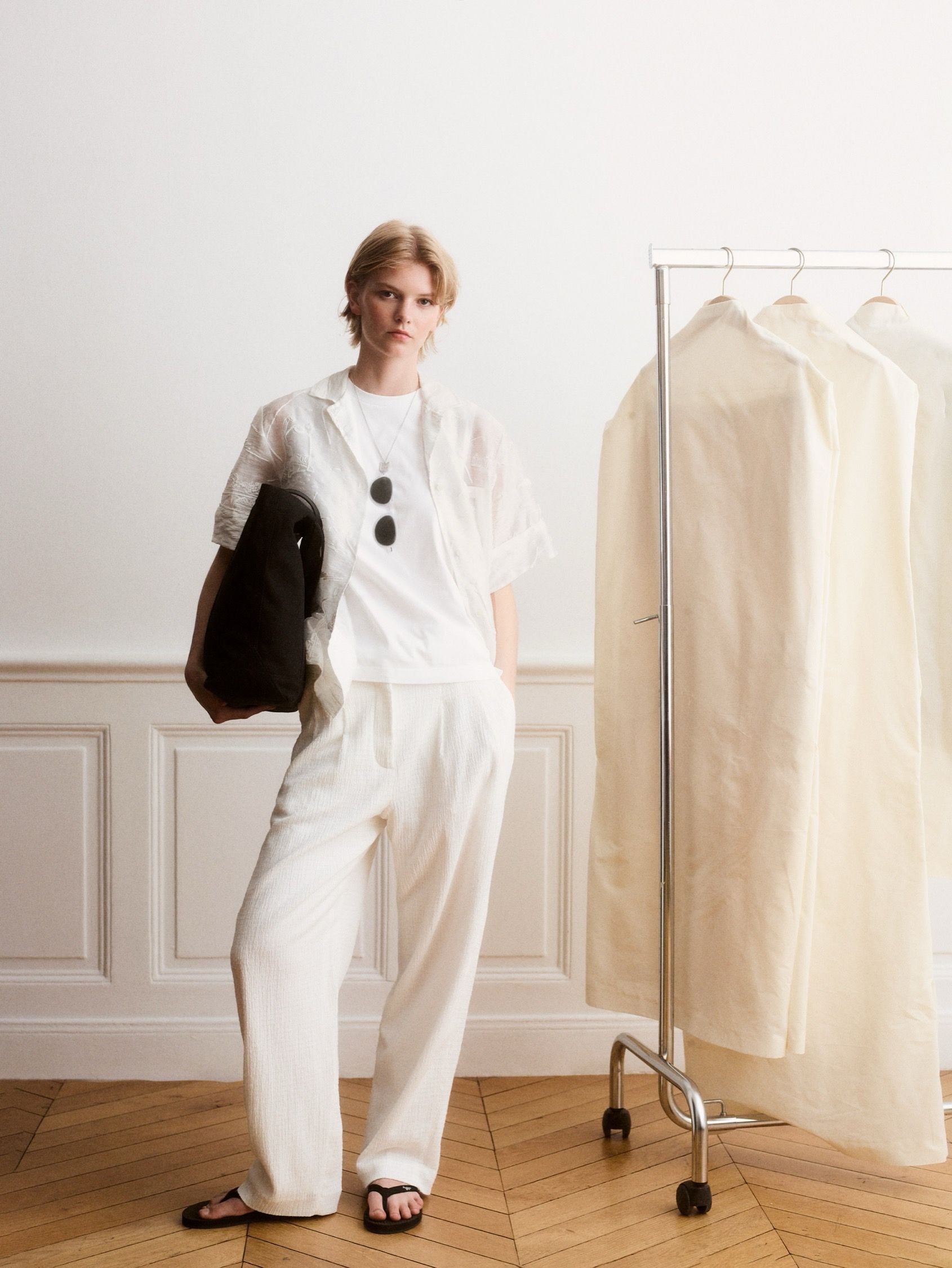 La ricerca sui materiali riveste un ruolo centrale: tessuti come popeline stropicciato, cotone giapponese e seersucker tecnico raccontano il dialogo tra Oriente e Occidente che anima la Maison; «Quando penso al Giappone, penso subito all’innovazione tessile e al denim, ambiti nei quali eccellono davvero», afferma Smith, mentre le icone della Parigi classic,dalle fontane alle stazioni della metropolitana fino ai motivi Art Déco, vengono reinterpretate in collezione attraverso uno sguardo esterno, fresco e curioso. Tra i momenti salienti della stagione spicca la capsule Savoir-Faire, che celebra l’incontro tra tradizione francese e artigianalità giapponese con sei pezzi esclusivi, dai capispalla in pelle di alta qualità alle camicie all’uncinetto fino al denim artigianale; ogni capo è corredato da un’etichetta che illustra le tecniche impiegate, a testimonianza del legame profondo tra heritage e innovazione.