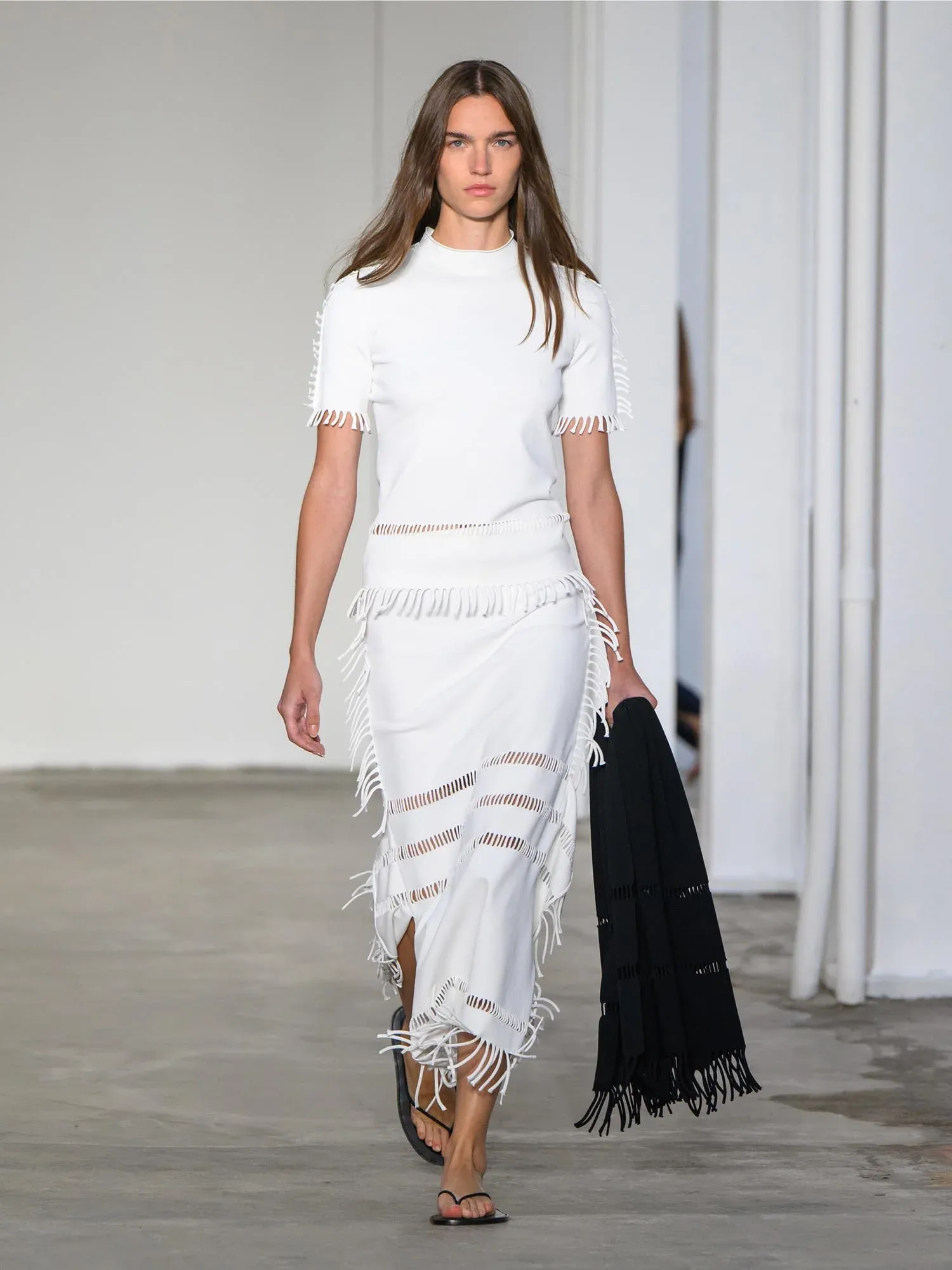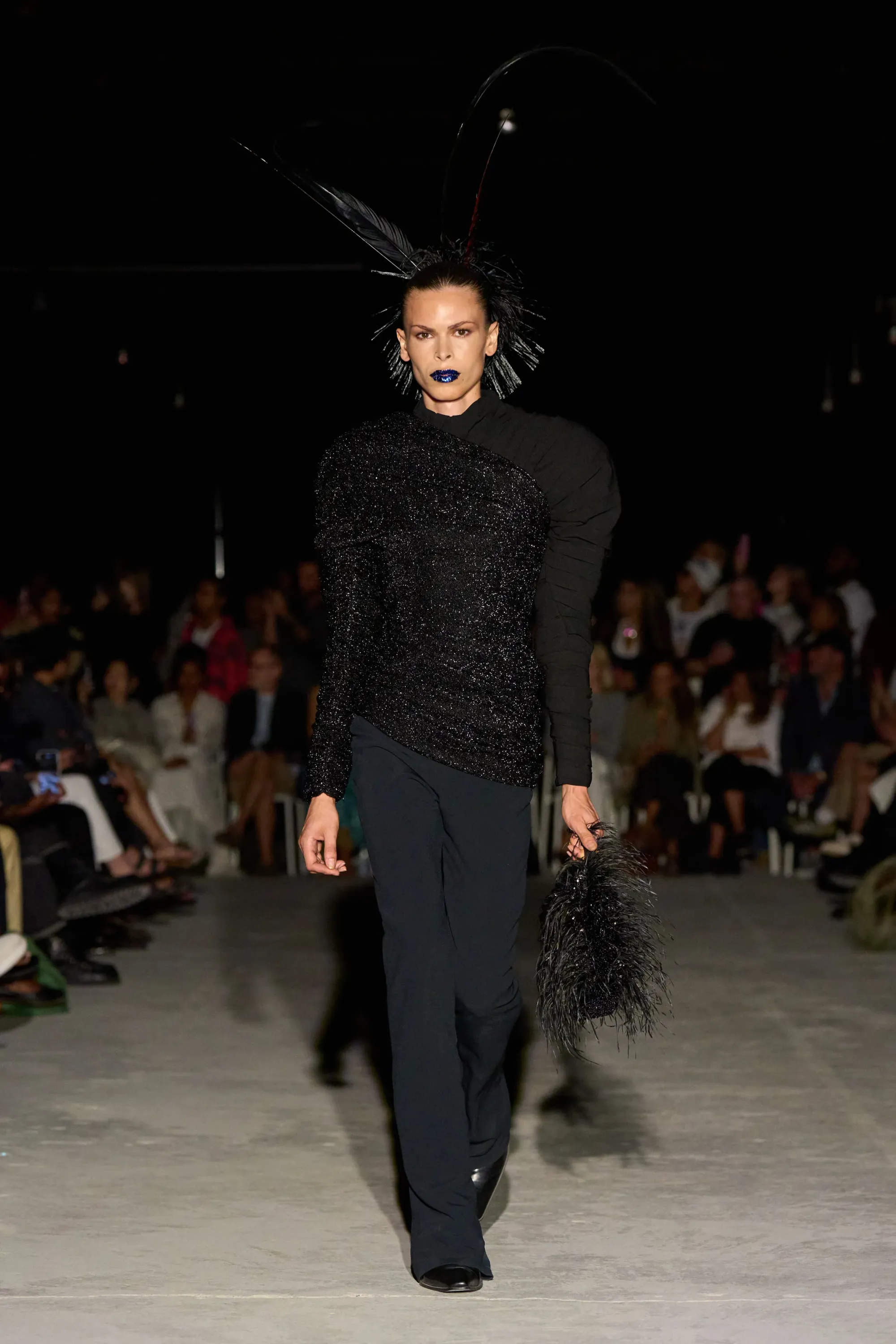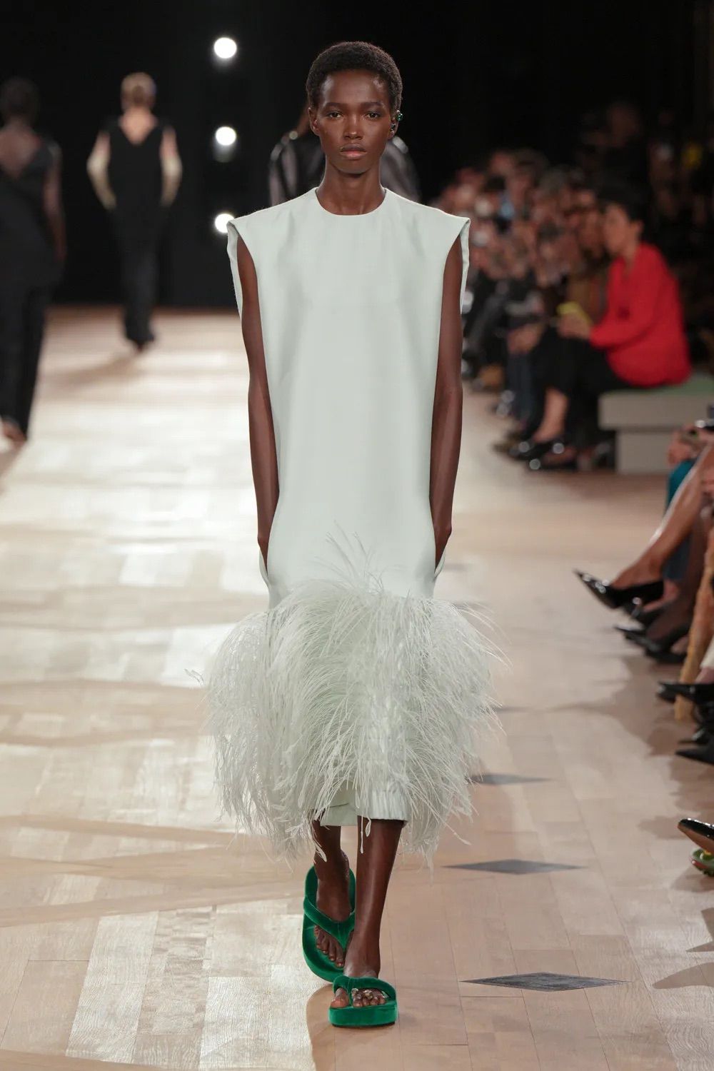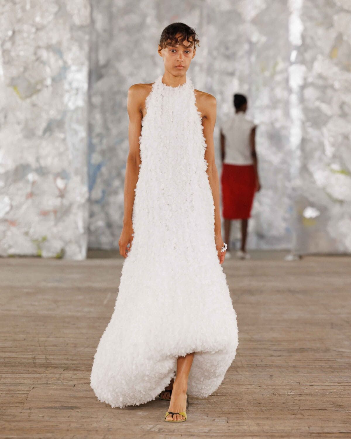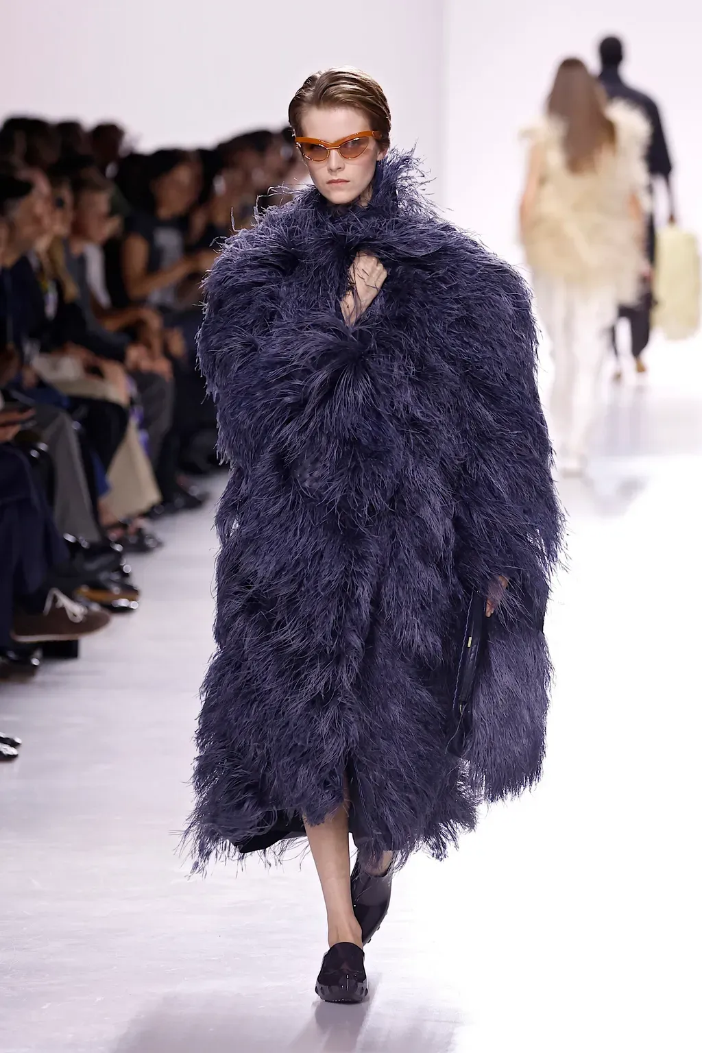 Passiamo adesso alle texture, con frange e piume che si ritrovano a contendere il primo posto in classifica per presenze in passerella. Mentre a Milano, ringraziando particolarmente il Bottega Veneta di Louise Trotter, c'è stato un aumento del 161% di piume nelle collezioni, a New York questo dato supera il 600% per merito di brand come Diotima, Brandon Maxwell, Fforme e Luar. E se le piume si sono ritrovate di nuovo protagoniste a Parigi, con maison come Ann Demeulemeester, Balenciaga, Chanel, Givenchy e Mugler che hanno scelto di inserirle nei nuovi design, oltreoceano hanno fatto capolino trend leggermente diversi, come spesso accade a Londra, la capitale della moda più alternativa della industry.