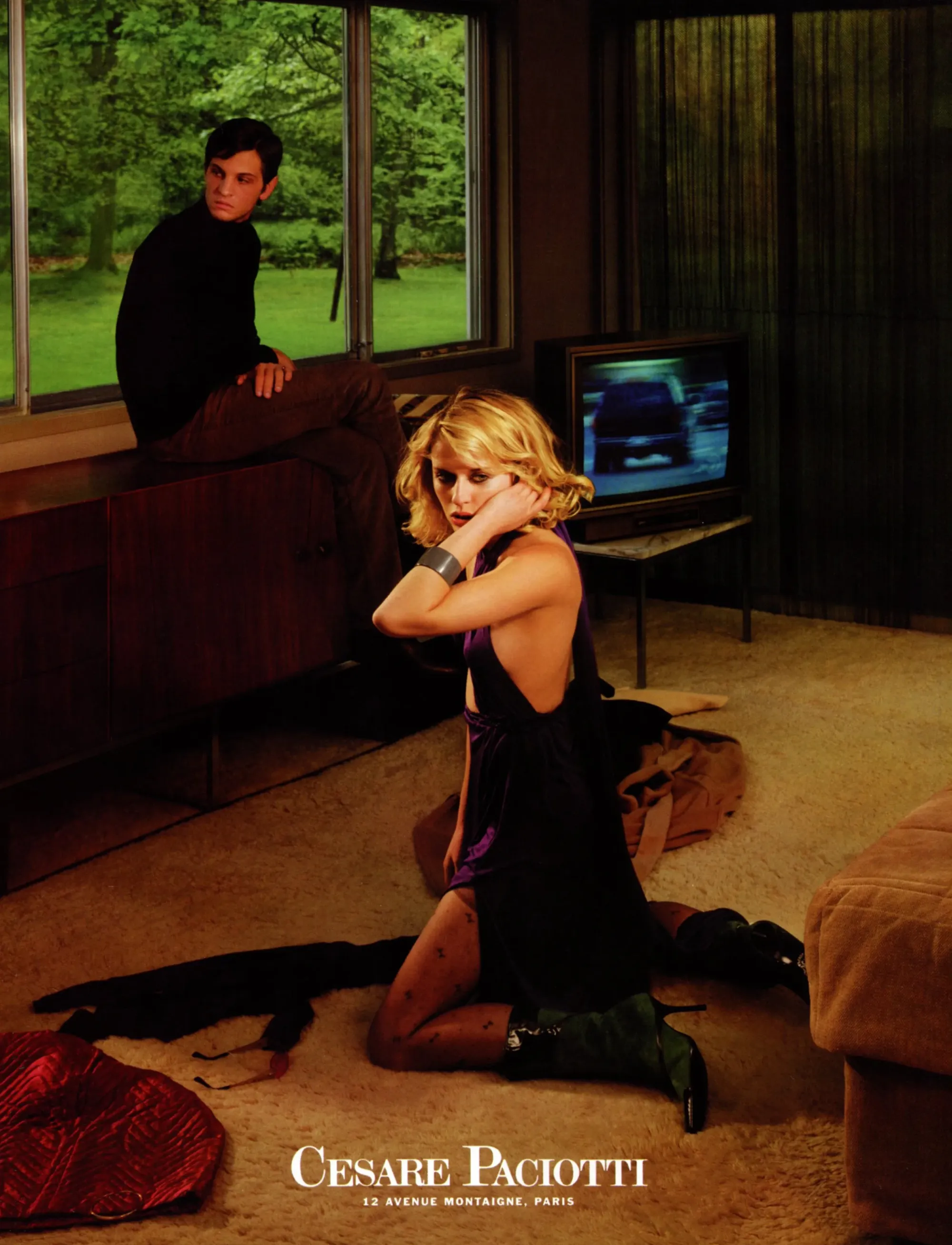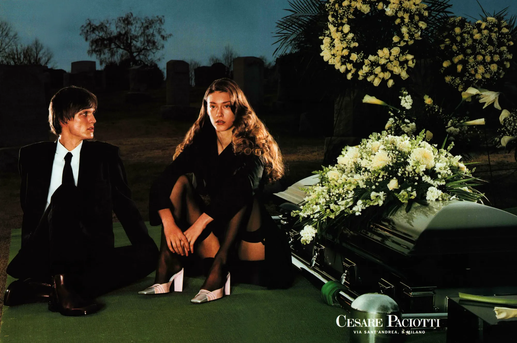 Il punto di svolta arrivò nei primi anni '90. Nel 1990, Paciotti rivoluzionò la collezione femminile, che fino ad allora era rimasta ancorata a forme più sobrie. Basandosi su una maturità artistica consolidata, introdusse nelle sue collezioni un tacco stiletto vertiginoso, alto e riconoscibilissimo, che allargava per certi versi l’originale accezione simbolica del logo del pugnale. Nello stesso periodo il brand investì in una comunicazione internazionale, collaborando con fotografi influenti come Ellen von Unwerth, Terry Richardson, Steven Meisel e Mario Sorrenti. Prima di assestarsi sui registri della sensualità e dell’opulenza le sue campagne avevano toni decisamente tenebrosi: uno scatto stupendo della campagna SS98 ritrae il modello Franco Musso (uno dei volti del Gucci di Tom Ford, tra le altre cose) legato in una sedia tra le onde del mare; la campagna SS20 era ambientata durante un funerale; in quella FW99, firmata Terry Richardson, due ragazze con tacchi e lingerie guardano le gambe stese di un uomo sul pavimento, presumibilmente morto; nello stesso anno, quella per la linea Heroes, mostrava semplicemente un groviglio di gambe maschili e femminili tra le lenzuola; nella FW00, invece, Annie Morton era una donna che si rivestiva in fretta come dopo l’incontro con un amante.