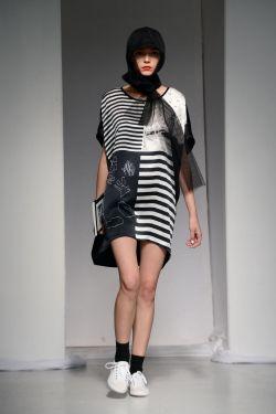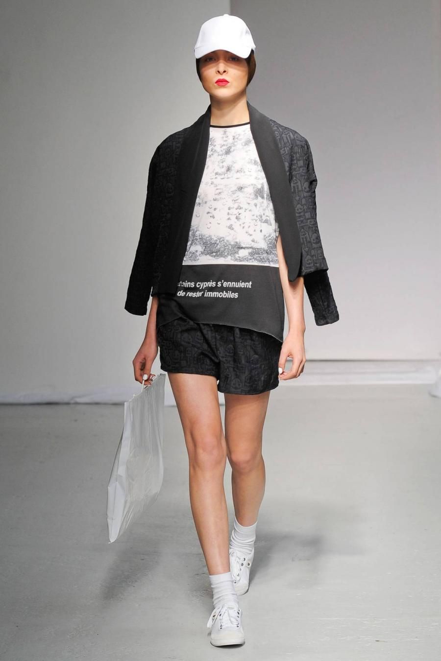 Devastee è la creatura di Ophelie Klere e Francois Alary, due giovani designers francesi con la passione per il gotico e la particolarità di realizzare abiti declinati solo in nero, bianco e nella scala dei grigi. Per la loro collezione estiva ci portano in cimitero con spettri e zombies che indossano camicie botton down, blazer maschili, abiti in seta, caps in testa e loafers ai piedi. Le linee sono morbide, stampe, serigrafie, grafiche scritte in francese ci indicano la strada per uscire dalla nostra tomba di quotidiano conformismo. Lo stile è in bilico tra il dark e lo sportivo, è divertente, giocoso, infantile, però veste in modo raffinato e casual. La conferma che crescere guardando la famiglia Addams e leggendo Lovercraft faccia crescere con stile.
