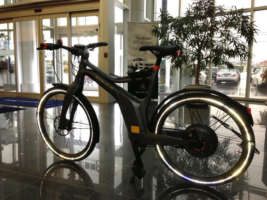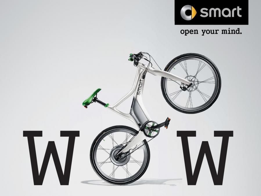 La prima bici elettrica prodotta in serie da una casa automobilistica, grazie ad una collaborazione con BionX (produttore di kit per bici a pedalata assistita) e Grace (costruttore di ebike tedesco) ottiene un’attenzione che la fa spiccare dagli altri. Smart eBike è la risposta a un mercato che si sta espandendo, e l’azienda Daimler non vuole perdere l’occasione di partecipare. A prima vista l’ebike concepita dai designer smart colpisce per il chiaro linguaggio formale e l’aspetto originale. Rompendo ogni convenzione in fatto di design di biciclette, integra i componenti della trazione elettrica senza trascurare il fattore estetico. Parti essenziali, quali ad esempio il telaio; l’alloggiamento della batteria, il manubrio, i fari o i parafanghi, sono state concepite e sviluppate in linea con l’immagine specifica di smart.