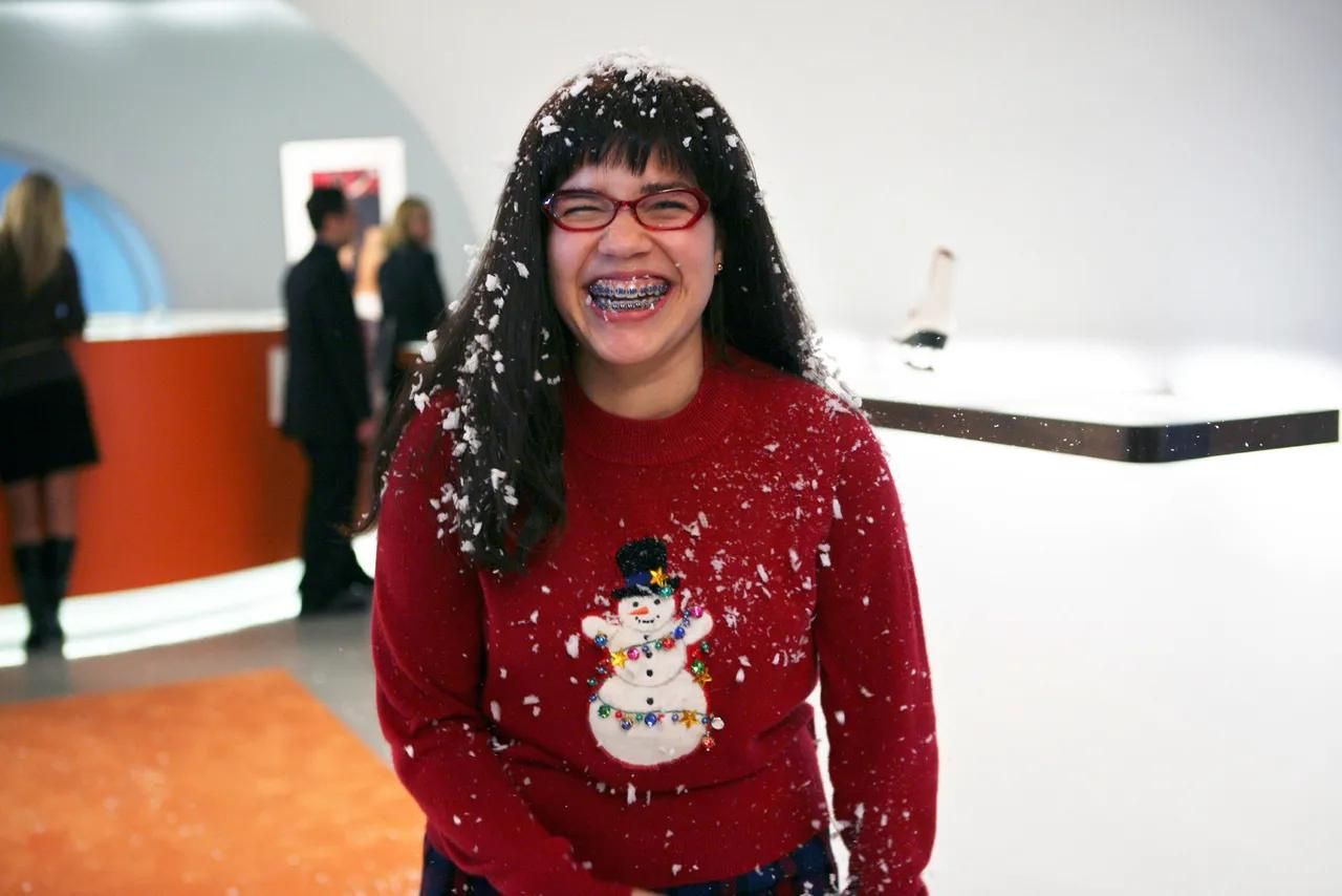 Anche negli episodi di alcune note sitcom americane dedicati alle festività, gli ugly sweater sono protagonisti. In How I Met Your Mother ad esempio il capo diventa un costume di coppia: Lily e Marshall indossano due maglioni che, messi uno accanto all’altro, formano il corpo di un alce. Per l’allegra famiglia Dunphy, nella serie Modern Family, indossare un Ugly Christmas Sweater è un rituale festivo irrinunciabile, mentre in Willy, il principe di Bel Air, i maglioni norvegesi con fiocchi di neve e renne sono spesso il segno distintivo di Carlton Banks, il geek boy della serie. Tuttavia, il maglione ha raggiunto il suo apice di bruttezza nella serie Ugly Betty. Tra i look memorabili della goffa stagista Betty Suarez, non si può dimenticare il maglione rosso con un pupazzo di neve tridimensionale, decorato con luci e palline, che lei sfoggia in occasione della festa natalizia aziendale organizzata dal magazine per cui lavora.