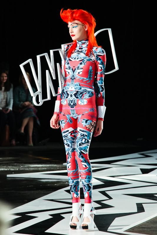 Un’ eroina della Marvel dai capelli rosso fuoco, giusto mix tra Bowie versione Ziggy Sturdust, Annie Lennox e Wonder Woman dalle sopracciglia disegnate con un lungo tratto nero e le labbra incandescenti anima la collezione primavera-estate 2013 di Romance was born. Il marchio australiano disegnato da Luke Sales e Anna Plunkett si ispira al mondo dei comics per una linea coloratissima, vitaminica e dal forte impatto visivo. Grafismi, pois e righe formano un mix ‘n match , dando vita ad un’esplosione di 23 stampe pop che ricopre tutti i capi: shirt dress, peplum dress, bomber, longuette. Romance was born crea una collezione iperbolica che, pur esagerata nella scelta cromatica è ben bilanciata dal taglio più lineare degli abiti, confermando così l’amore per una moda che lascia il segno.