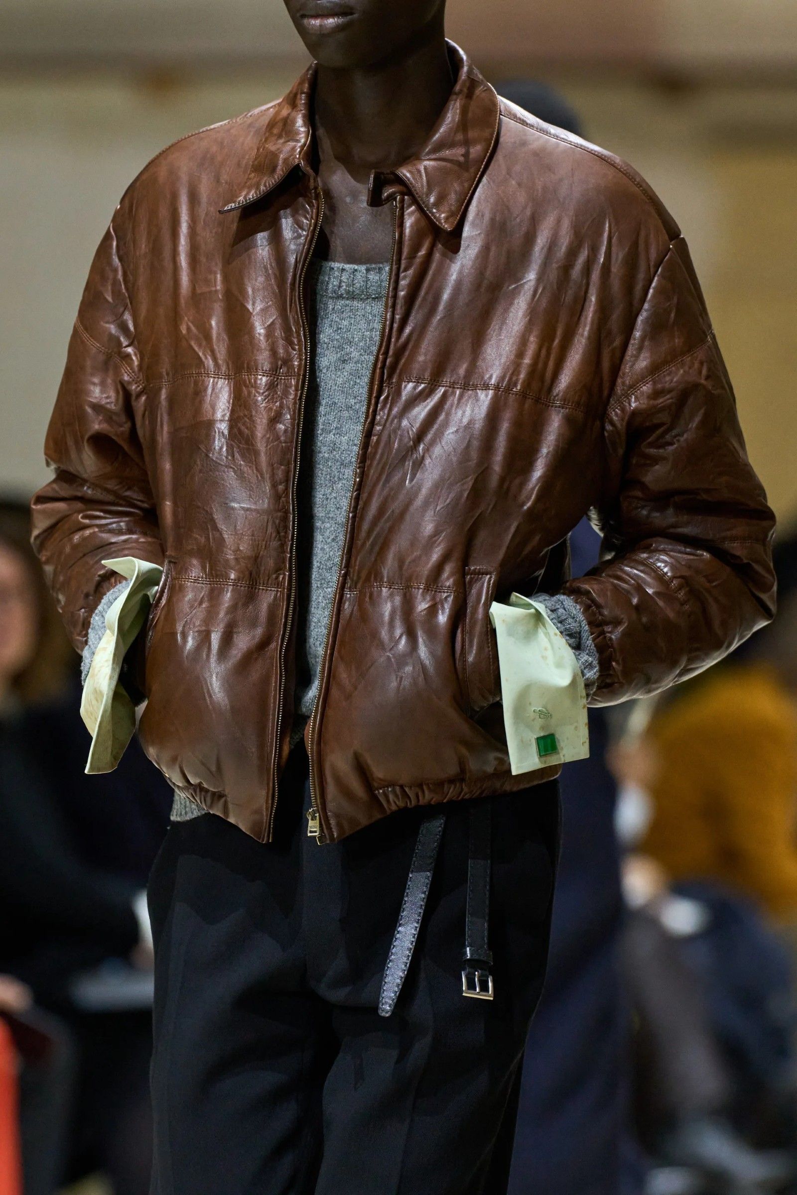 È una visione che privilegia ed esalta l’aspetto pratico e positivo del vestire e che, provenendo da praticamente un secolo di storia, finisce necessariamente per creare dell’innovazione: lo stesso Sartori ha detto alla stampa che il brevetto per l’interessantissima giacca con tre bottoni orizzontali presentata in sfilata, di cui si può alterare l’allaccio facendo girare un bottone, era stato depositato la mattina prima dello show. Ma questo amore verso la manipolazione della materia e verso il fare si è tradotto anche nei filati composti da lana, cashmere e carta; nei maglioni dal collo così alto e compatto da sfociare nel modernismo concettuale; in quel bomber di pelle con zip a tre quarti e nelle giacche dai revers raddoppiati.