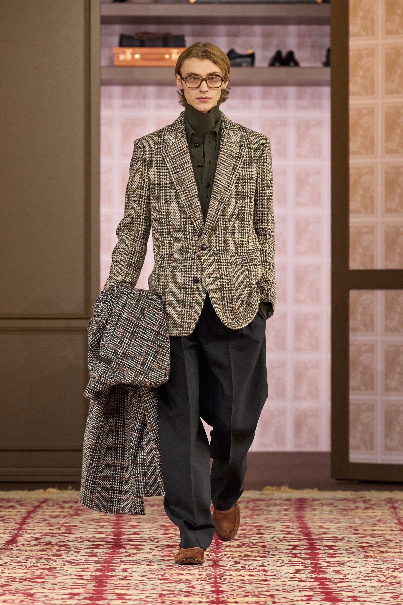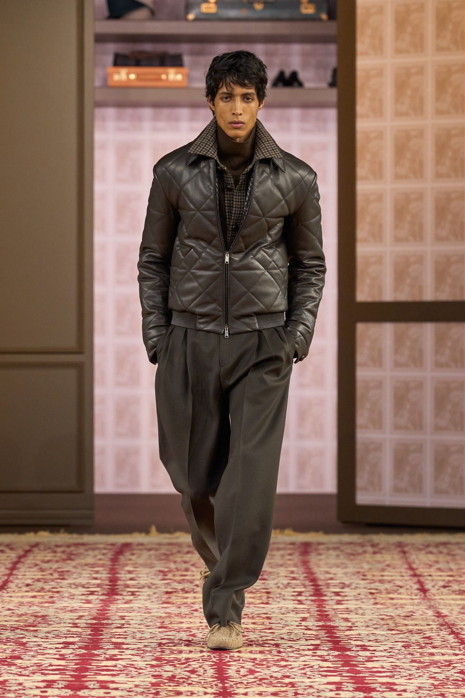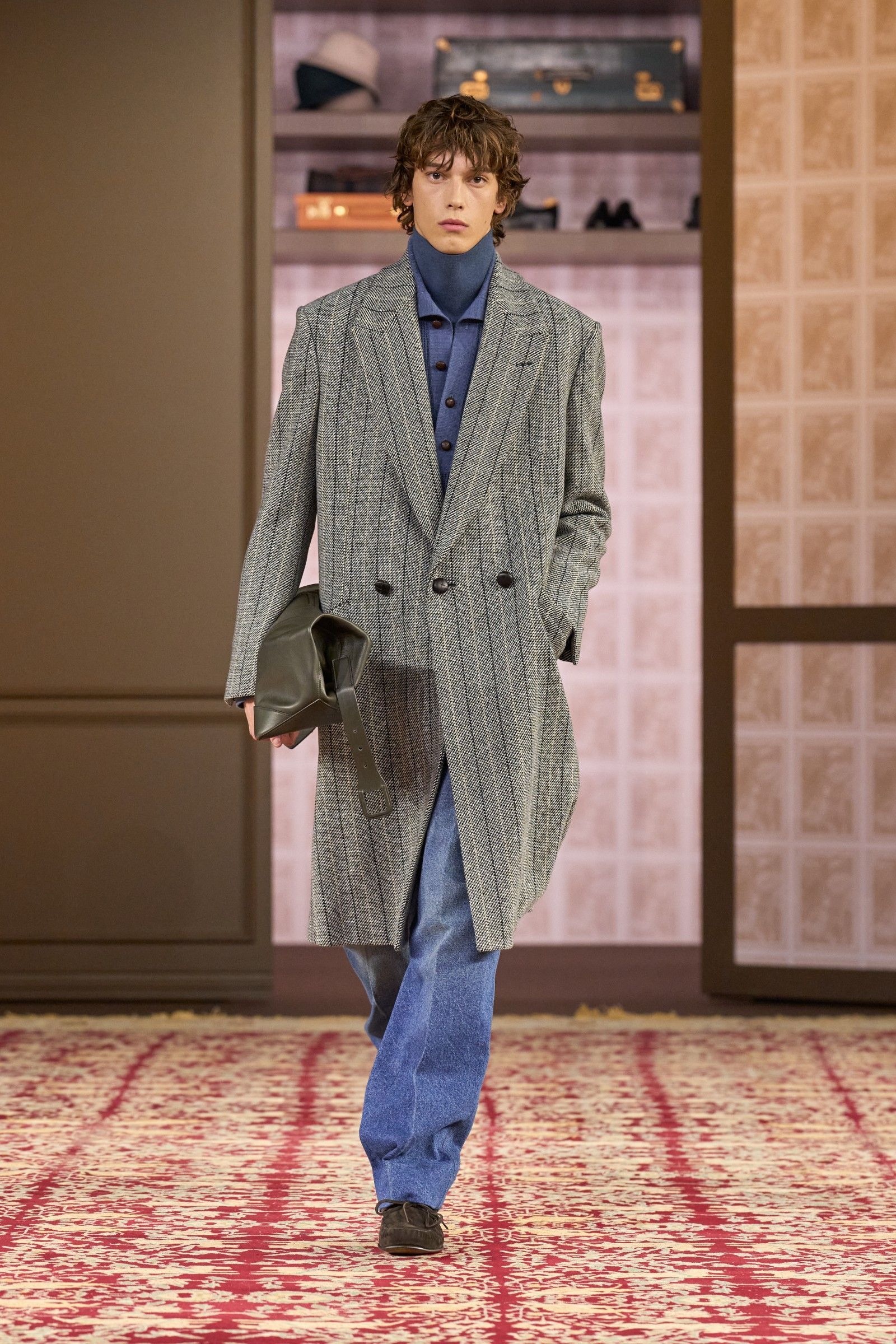 - Alessandro Sartori ha immaginato l’armadio delle generazioni Zegna come fonte di abiti che “sono venuti da lontano per andare lontano”, ha valorizzato materiali pregiati, sartoria eccellente e innovazione pratica, come la giacca con tre bottoni rotanti che ha brevettato poco prima della sfilata.