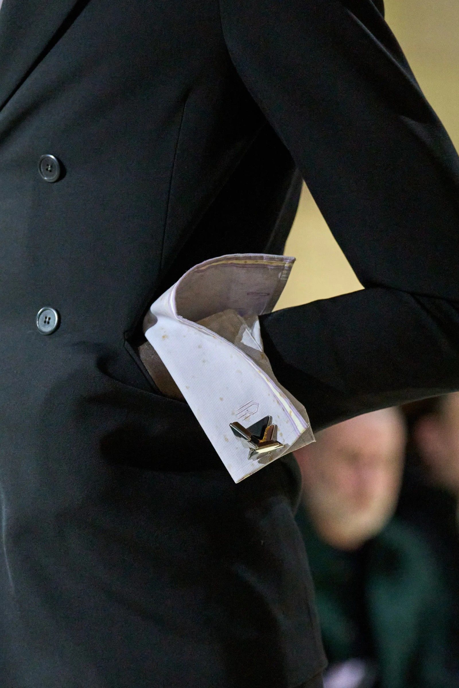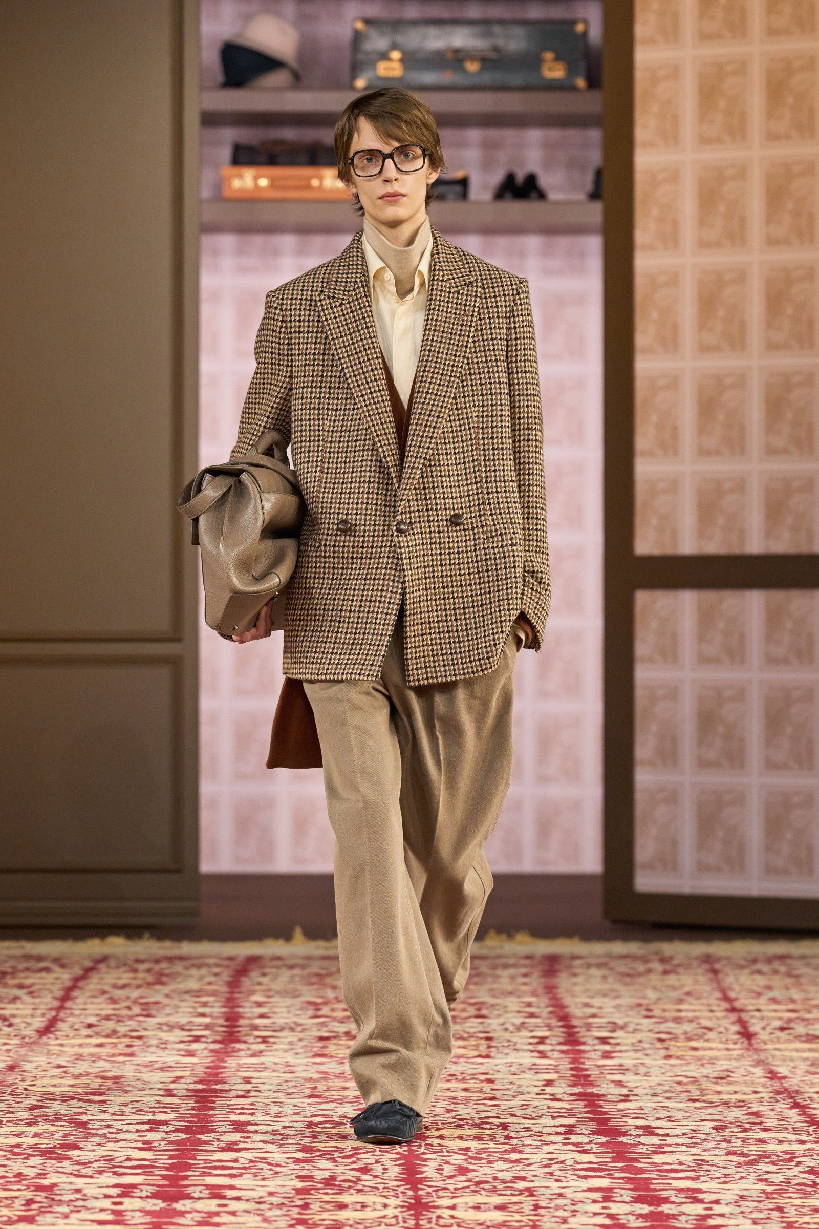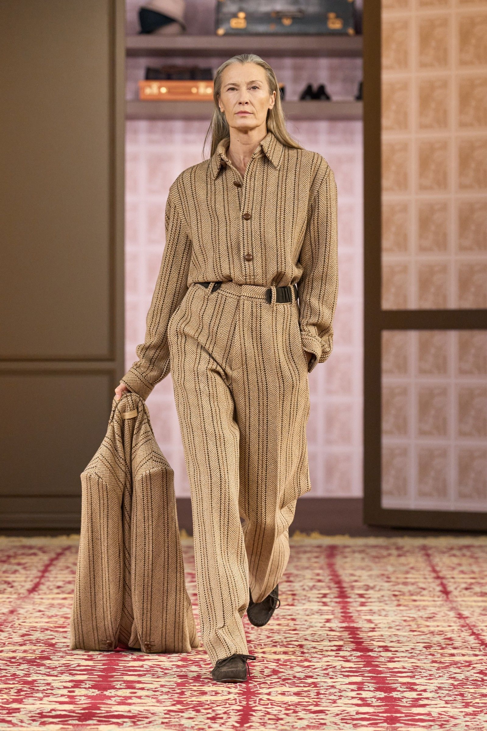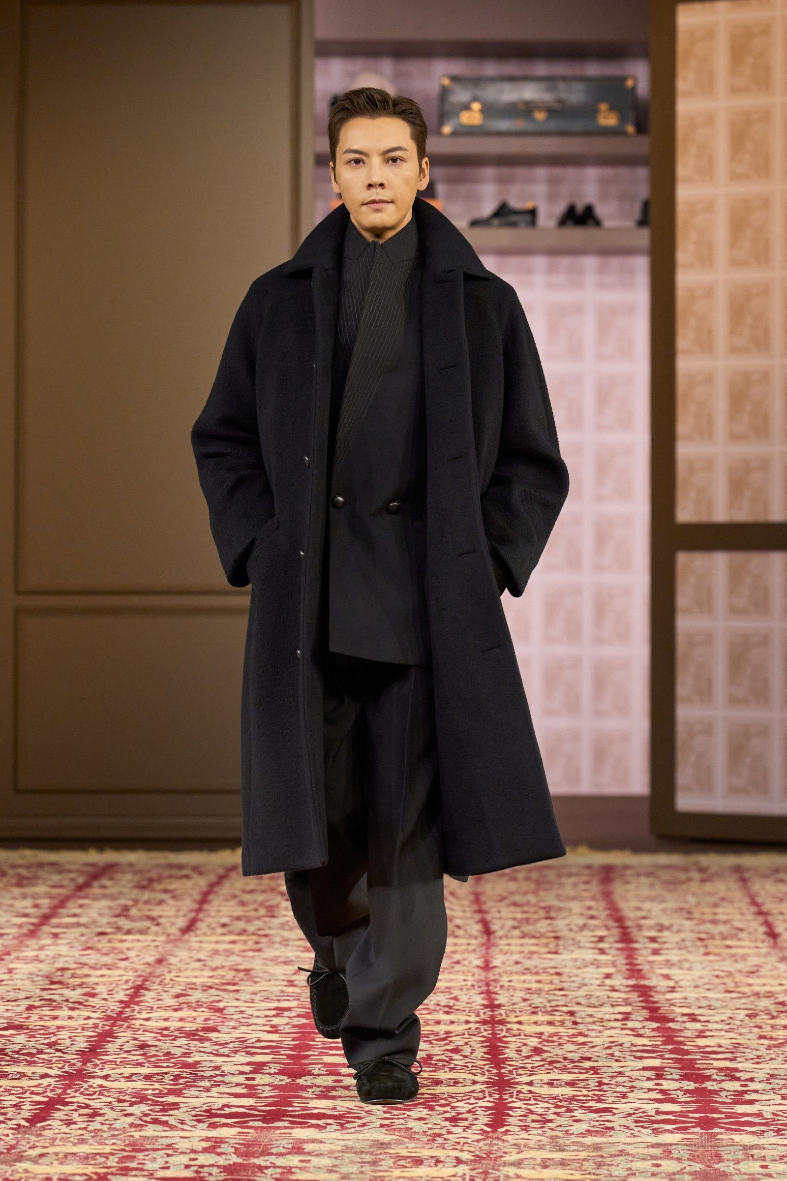 - Alessandro Sartori ha immaginato l’armadio delle generazioni Zegna come fonte di abiti che “sono venuti da lontano per andare lontano”, ha valorizzato materiali pregiati, sartoria eccellente e innovazione pratica, come la giacca con tre bottoni rotanti che ha brevettato poco prima della sfilata.