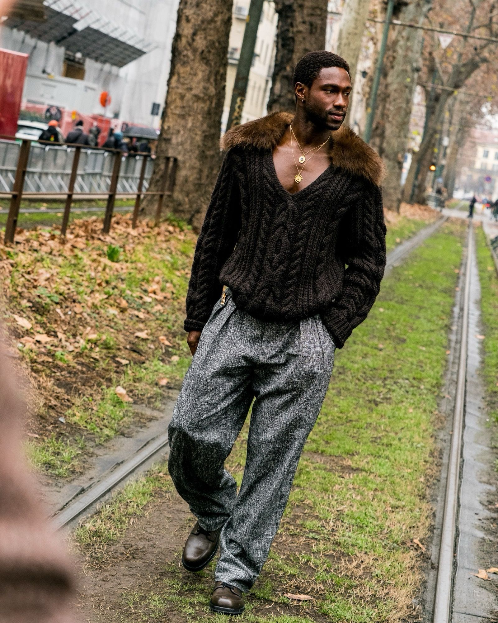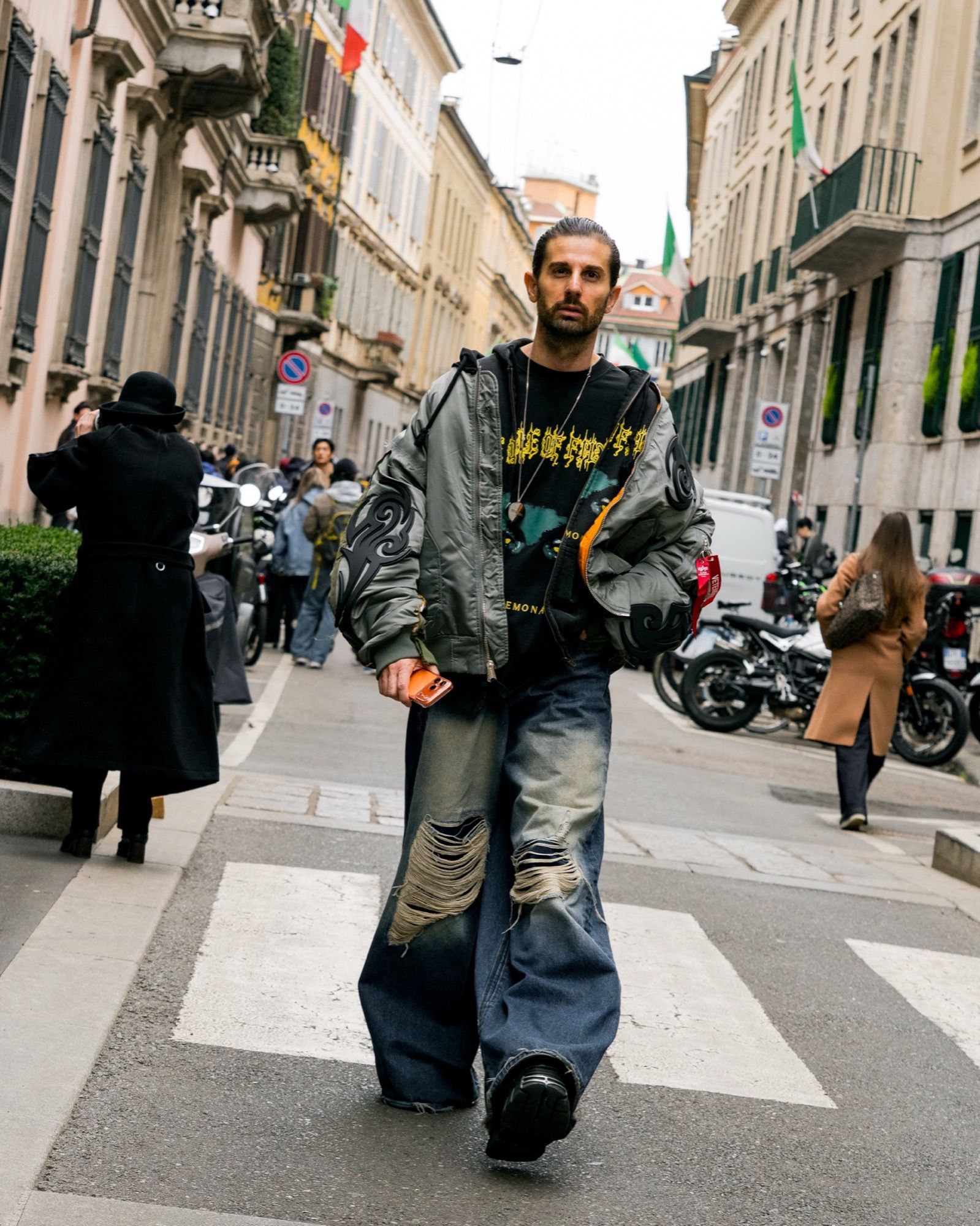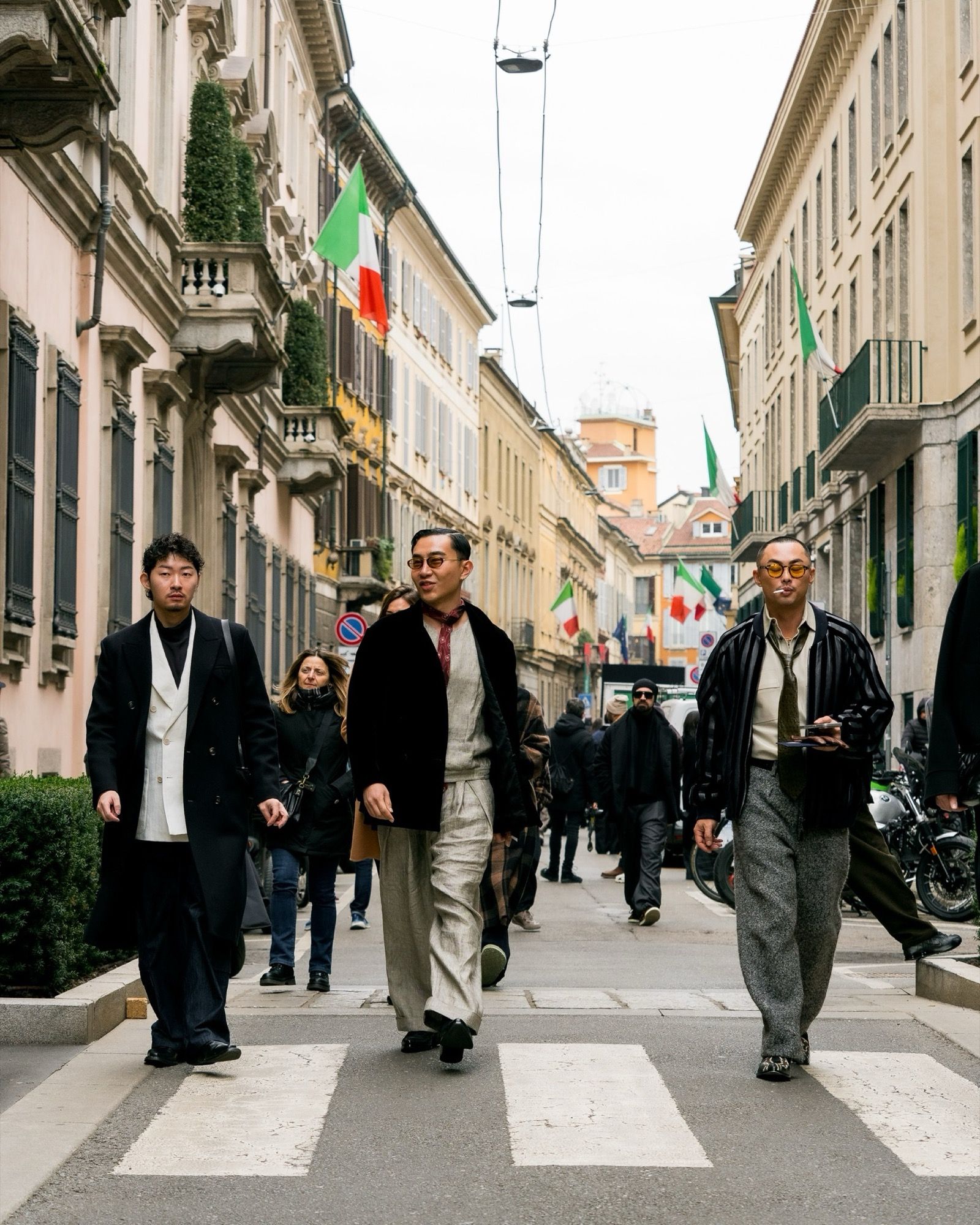 I grandi momenti moda, però, non si sono limitati agli show. Anzi, per le strade della città l’intero fashion system ha dimostrato come il freddo possa diventare il pretesto perfetto per sperimentare con layering e materiali. Attraverso la lente di Gabriel Dacillo, ecco alcuni dei migliori look street style della Milano Fashion Week Men’s FW26.