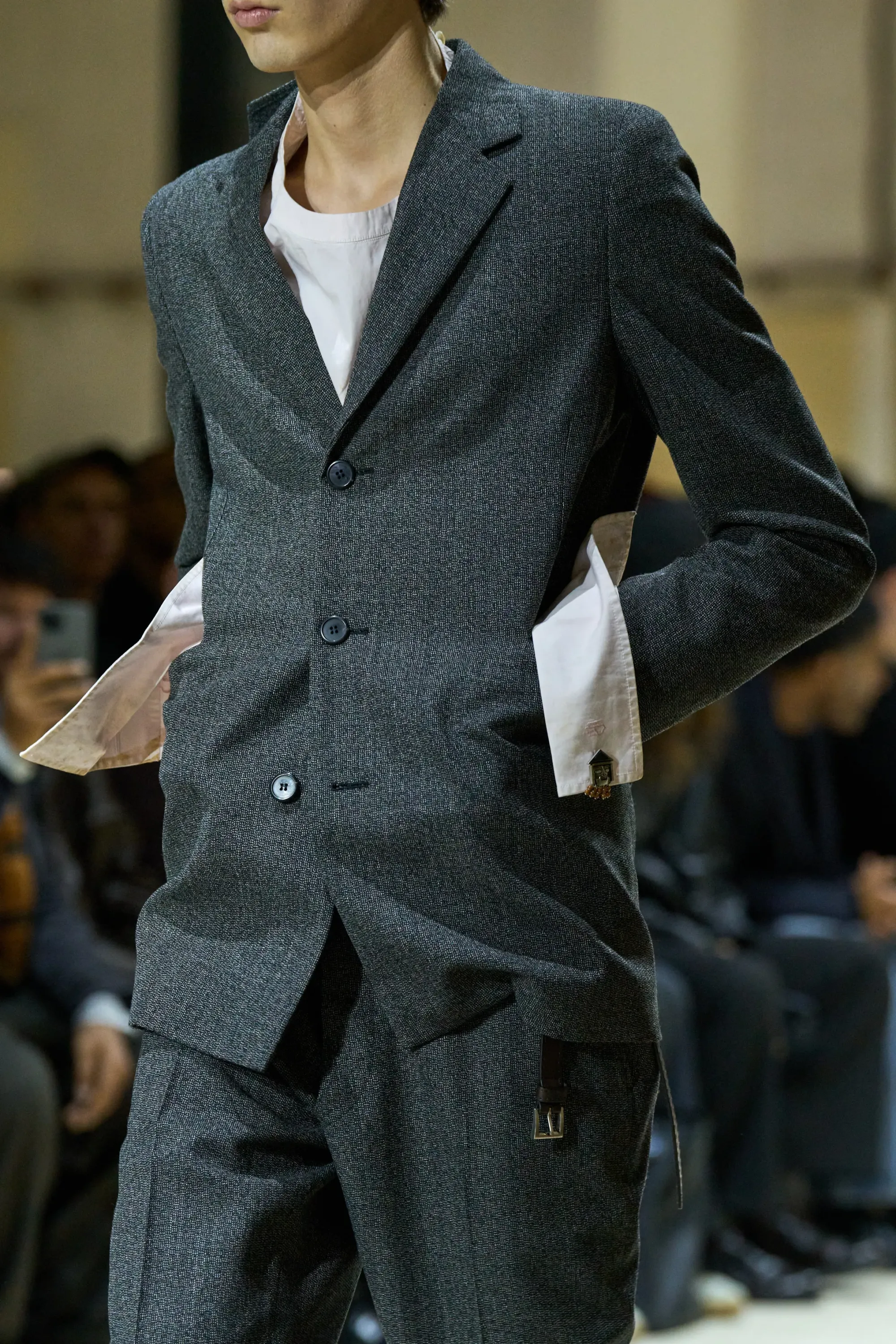 In pietra, in metallo, in perline: i gemelli allo show di Prada erano unici, non solo in senso estetico ma anche numerico. Allacciati solo su una manica, in bella vista per distrarre simpaticamente dalle maniche sporche delle camicie, i gemelli sono stati utilizzati solo da un lato come una spilla decorativa, un dettaglio che, siamo certi, verrà ripreso da moltissimi fan di Prada nei mesi a venire.