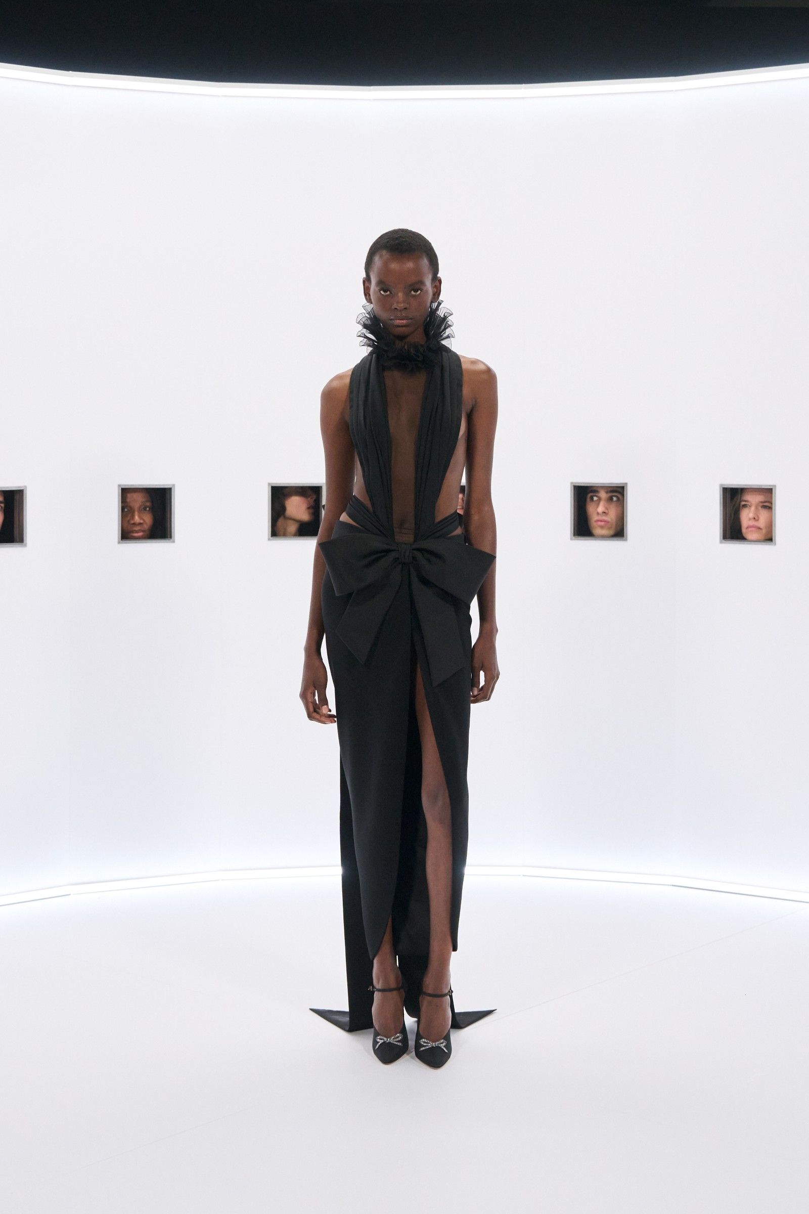 Questo richiamo era particolarmente interessante in quanto, al di là del messaggio insito nella presentazione, l’intera collezione metteva perfettamente in scena il nesso spesso poco esplorato tra gli abiti di Hollywood e gli immaginari paramenti sacri di una qualche sacerdotessa alla maniera di eroine letterarie come Salambò o Salomè, della Norma di Bellini o del personaggio di Maria nel Metropolis di Fritz Lang. Tutte donne sacre, ieratiche dove l’abito non è solo abbigliamento ma anche sublimazione di una dimensione estetica più elevata.