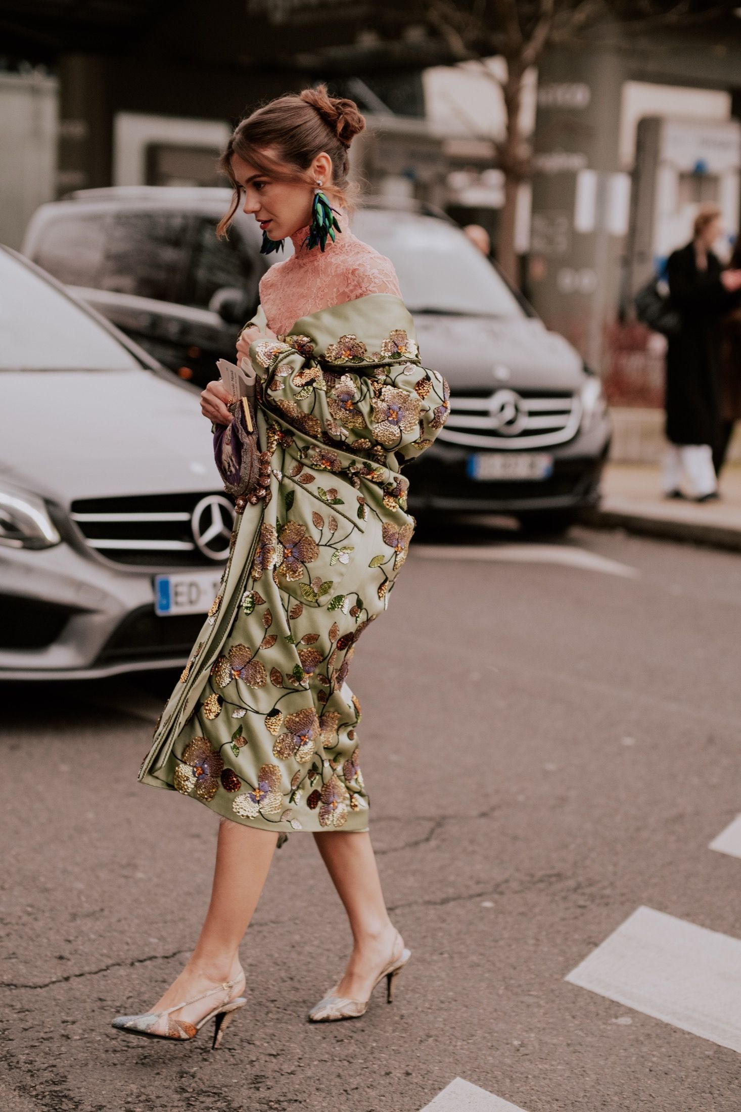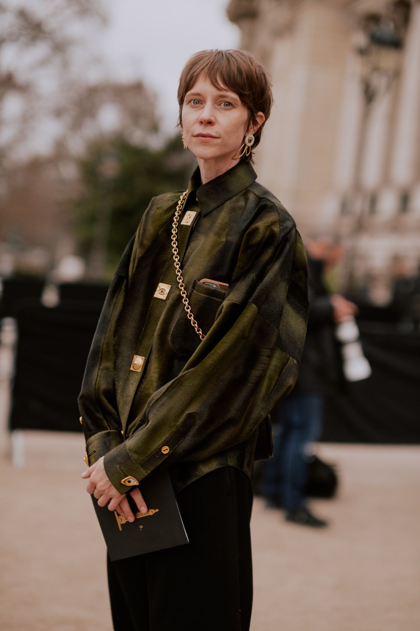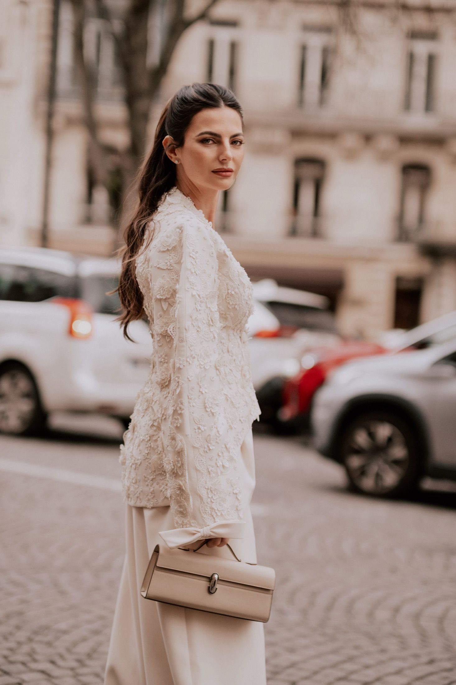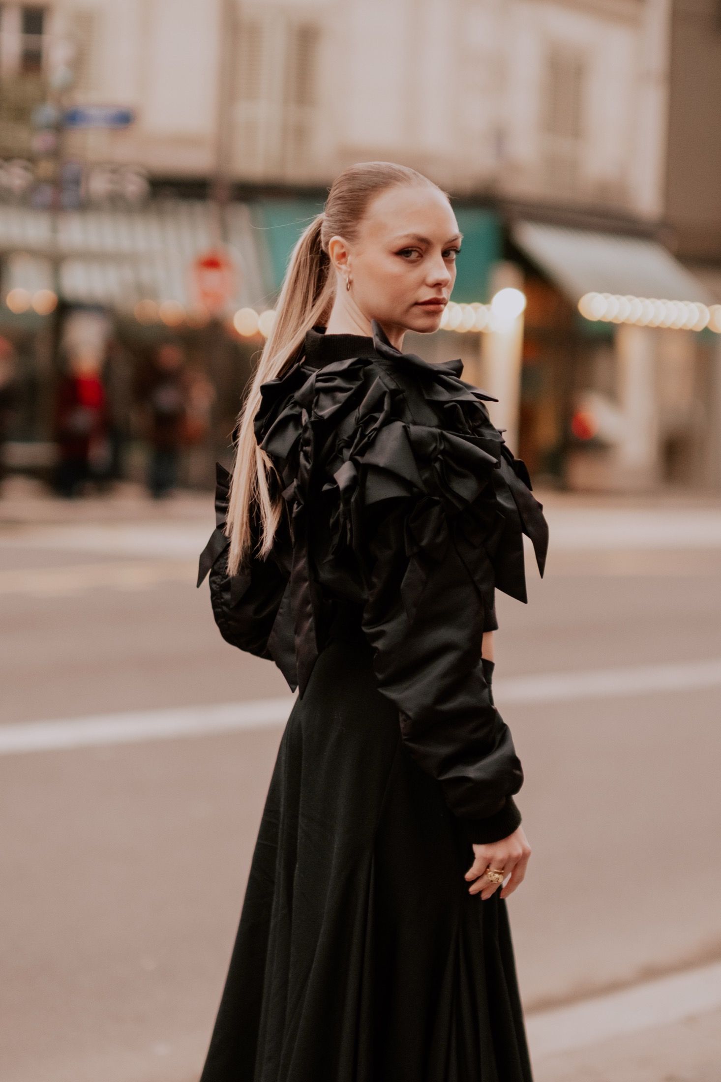 Primo fra tutti Jonathan Anderson, che quattro giorni prima aveva presentato la sua nuova collezione di Dior Homme e che, per l’occasione, ha portato nel centro di Parigi un’intera distesa di ciclamini. Sempre ispirato al panismo e al mondo naturale è stato Matthieu Blazy, che per il suo debutto in Haute Couture ha giocato con trasparenze e ricami. Tra i grandi ritorni c’è stato invece Schiaparelli, che per questa stagione ha scelto di intraprendere una direzione creativa più dark, più animalesca. E, tra tutti questi spettacoli in passerella, era quasi ovvio che l’intero fashion system riflettesse lo stesso livello di drammaticità. Grazie all'aiuto degli scatti di @chaaierii, ecco alcuni dei migliori look di street style della Paris Haute Couture Week SS26.