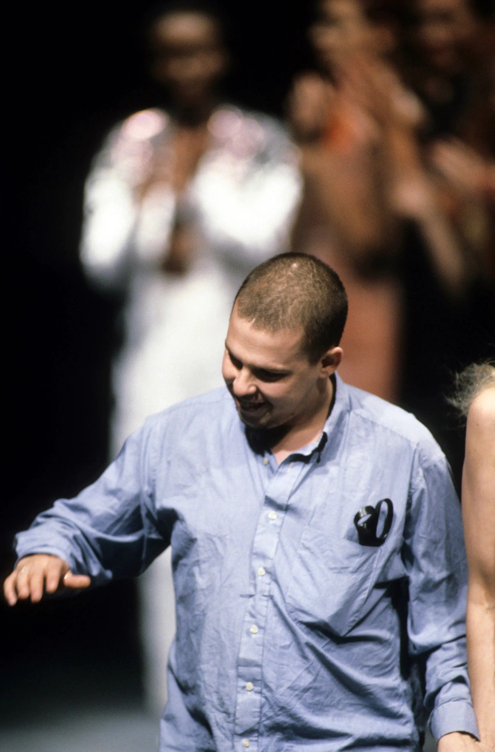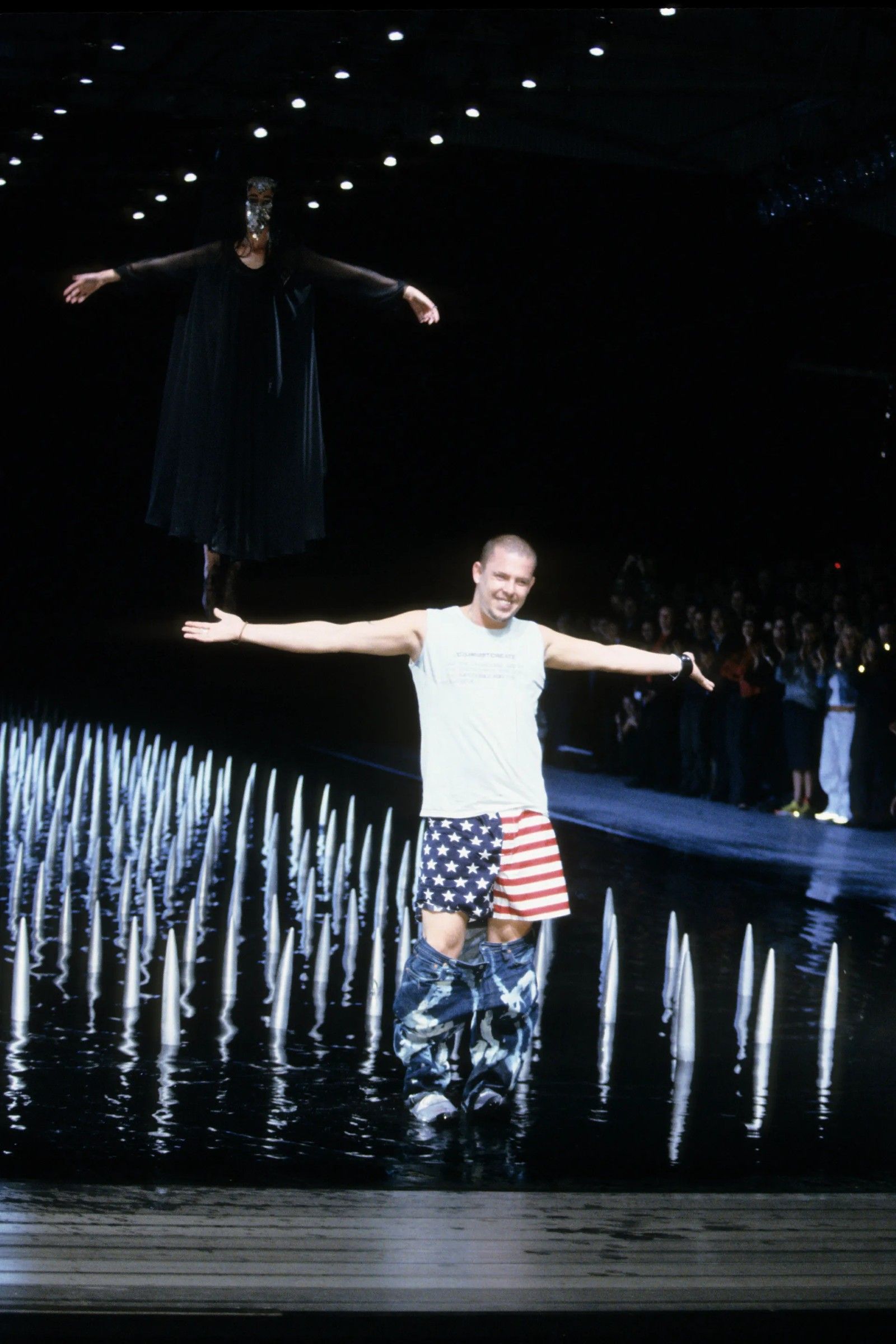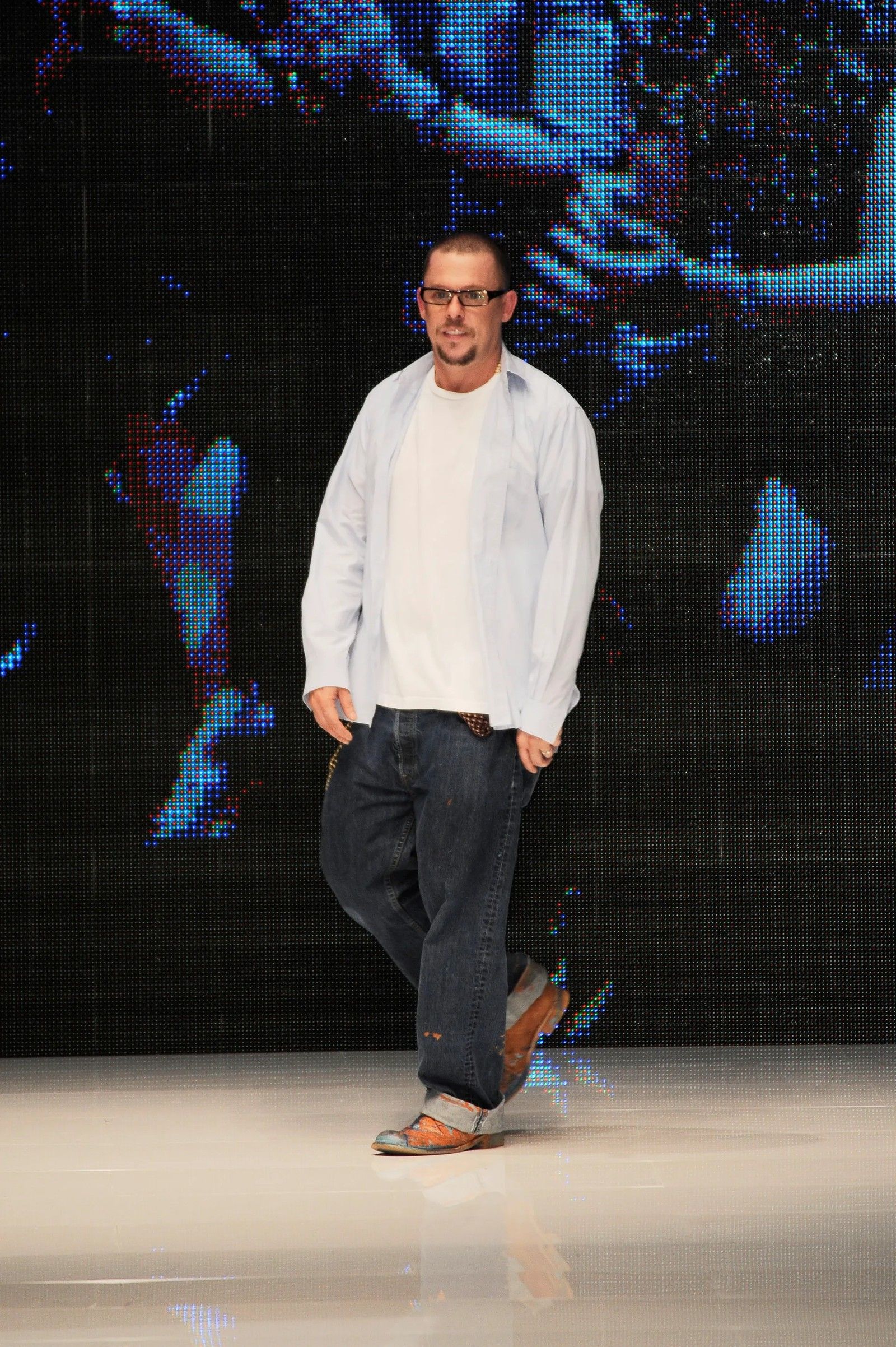 Ma aiutano ancora di più le descrizioni che vengono dalle sue biografie. In Gods & Kings, Dana Thomas dice che indossava logore t-shirt e jeans sia nei giorni spesi a Savile Row che alla London Fashion Week del ’93. Al suo primo giorno di scuola al CSM viene ricordato con jeans da raver a zampa e una giacca da baseball vintage. In Blood Beneath the Skin di Andrew Wilson invece si trovano altri riferimenti più variegati.