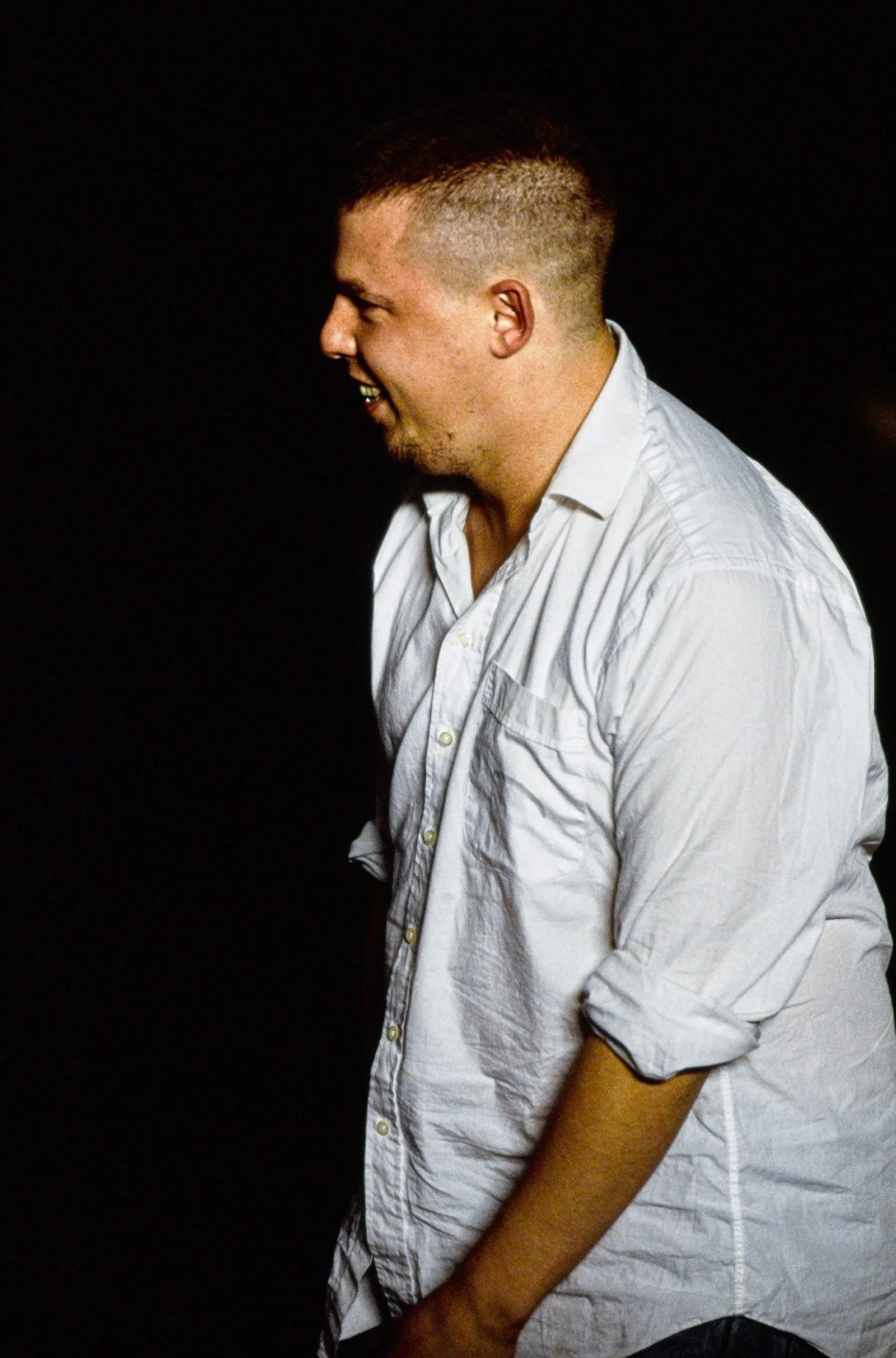 Le foto di backstage delle sfilate dell’epoca e in generale del designer nel tempo libero ci restituiscono quest’immagine chiaramente: tute adidas, sneaker di Nike, jeans e maglie smanicate, fruste camicie a quadri o vecchie magliette. Non mancano però elementi più formali, come il maglione di Saint Laurent indossato per la chiusura di Joan o la camicia a quadri Ralph Lauren vista per la chiusura di The Overlook, ma anche la camicia di Burberry in cui lo ricorda l’autore Andrew Wilson ai tempi di Givenchy.
