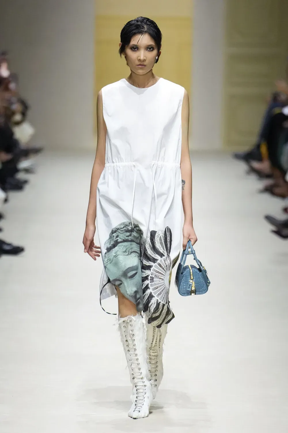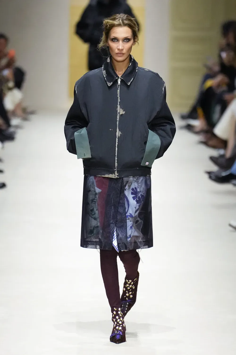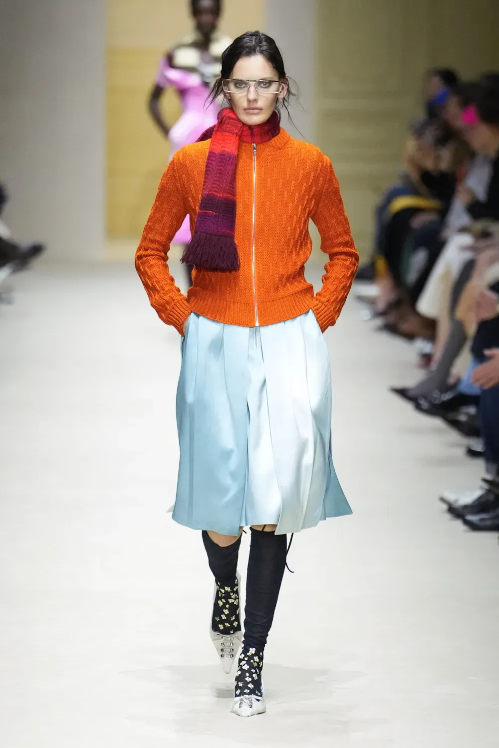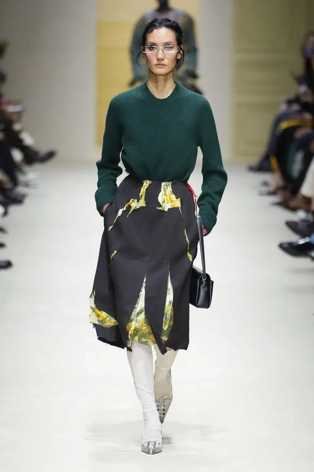 Sempre di più, stagione dopo stagione, Prada sembra tornare a riflettere non tanto sul passato ma sul rapporto che noi abbiamo con esso, sull’influenza che ha su di noi la percezione di un passato sempre più ineludibile e, per certi versi, discorde e frammentario. Aggettivi che potremmo usare anche per la nostra cultura e coscienza collettiva oltre che per le nostre identità personali, sempre più scollate dal tessuto connettivo che un tempo era la vita sociale e comunitaria.