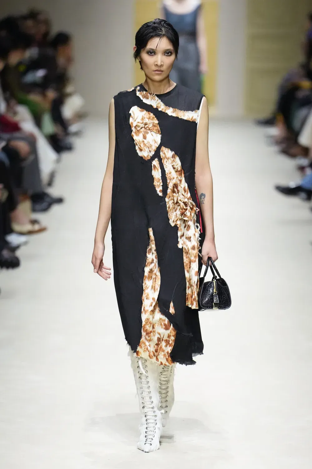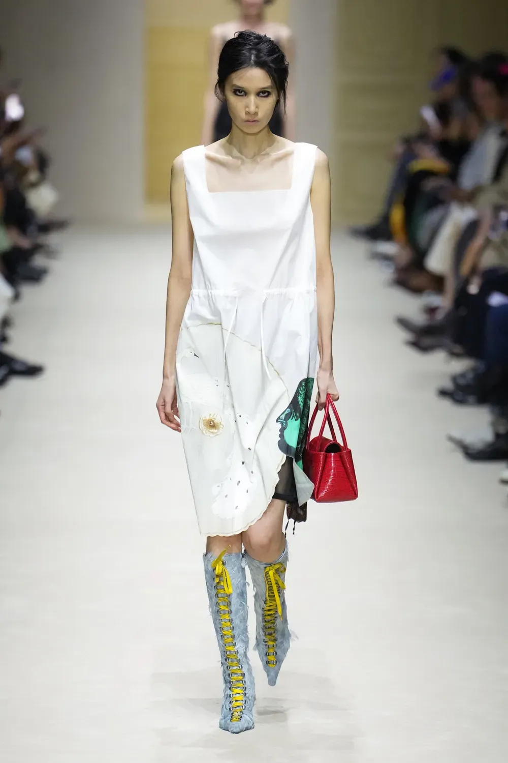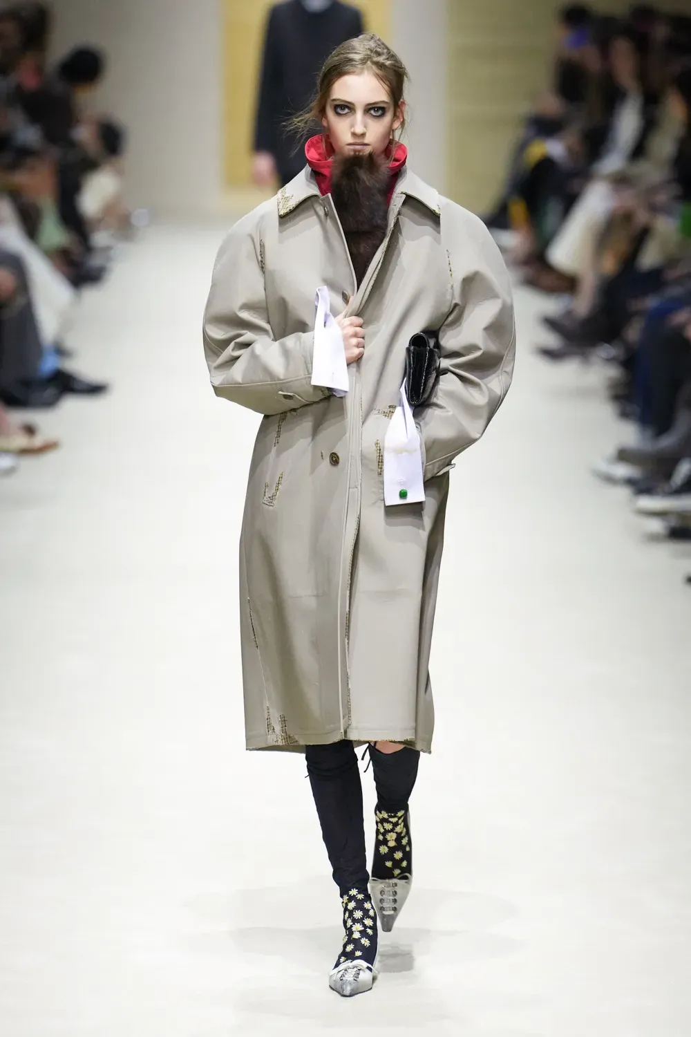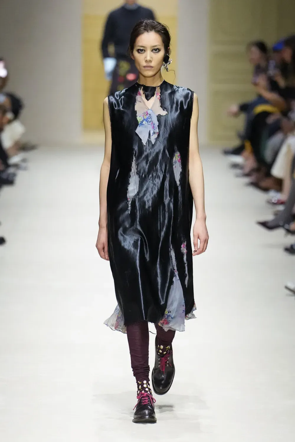 Stando alle show notes, l’idea dietro la gran parte dei look della collezione era di far emergere nuovi abiti da sotto i vecchi mostrando la contradditoria coesistenza di tante identità nella stessa donna: alcuni erano proprio sovrapposti in una stratificazione che esaltava la bellezza del caotico; altri invece erano costruiti con tessuti dai cui squarci apparivano altri tessuti. Ciascuna delle 15 modelle, dopo ogni uscita, toglieva uno strato dal suo outfit, rivelandone uno nuovo sottostante che spesso era del tutto diverso.