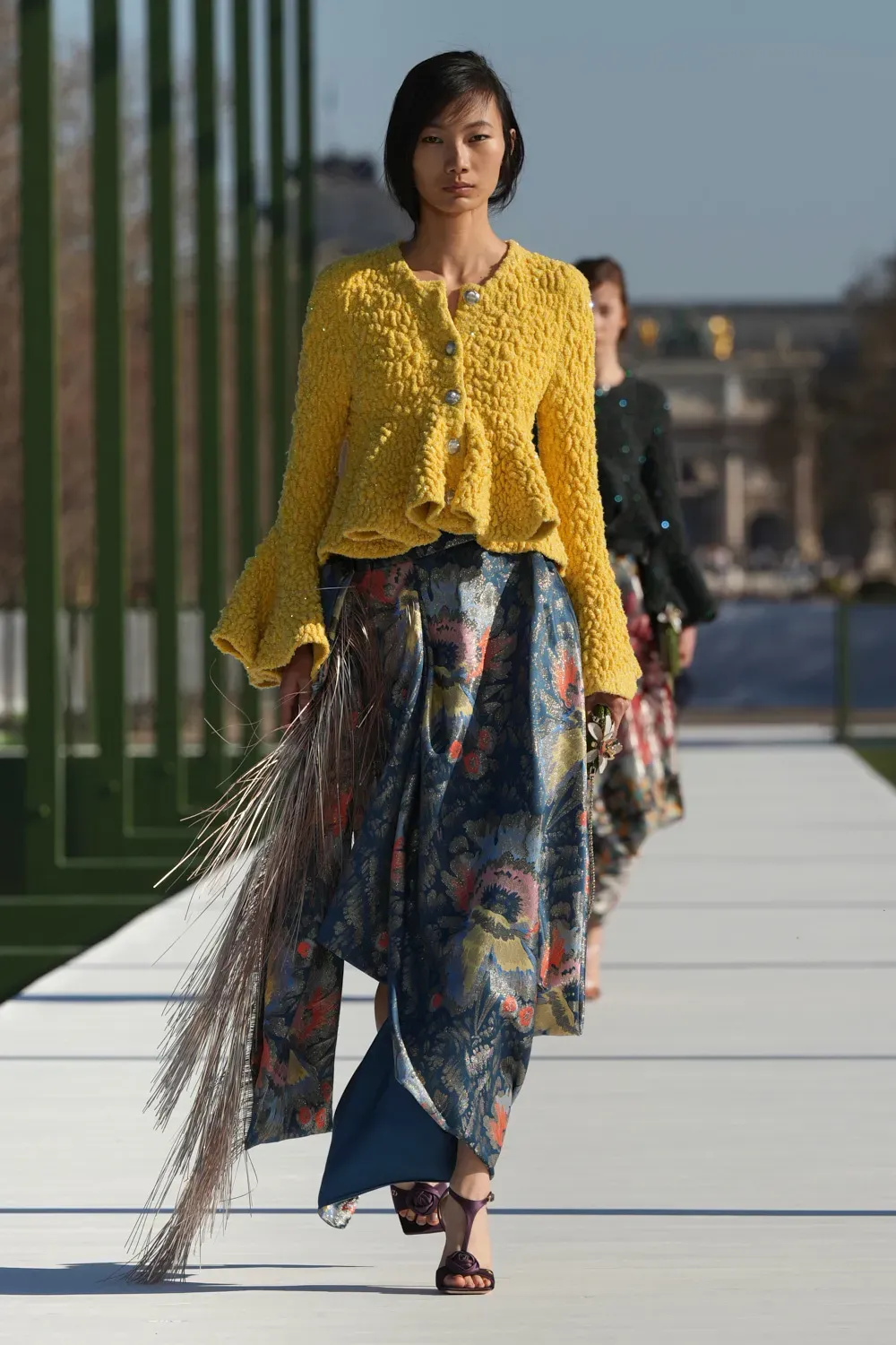 Proprio la decisione di concentrarsi su una gamma di silhouette più armoniosa, su una palette di colori oculata e priva di sbalzi troppo improvvisi e un senso dell’eleganza più posato e rassicurante, ha consentito alla cerebralità dei design (anche nei casi più surreali, come il look giallo o gli abiti decorati da grossi fiori) di arrivare allo spettatore in modo più diretto e più puro. Con questo show, Anderson ci ha non solo detto di aver capito la donna Dior ma anche di aver capito come vestirla con la squisita eccentricità a cui ci ha abituati.