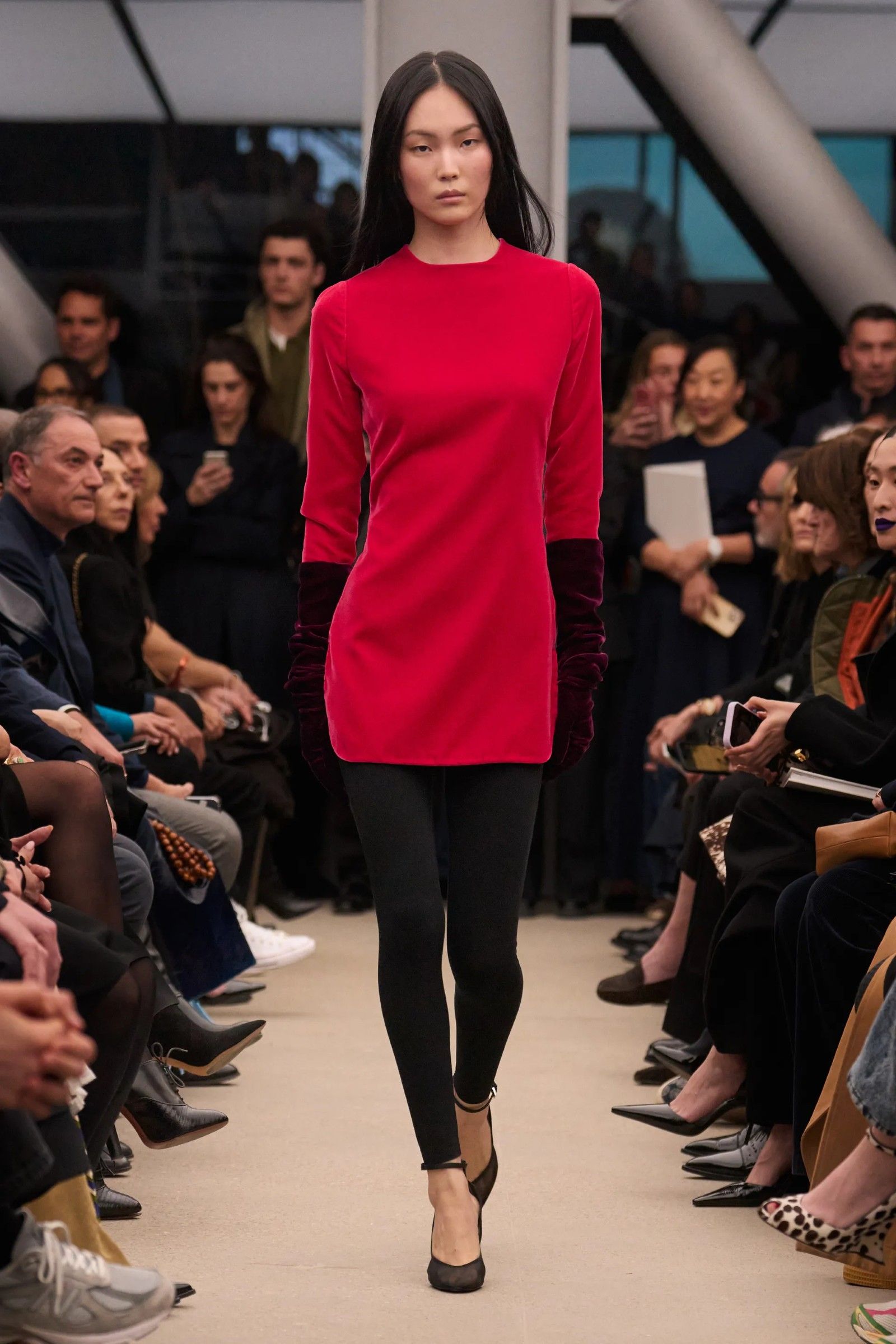 Look monocromatici, tubini che aderivano a ogni muscolo e osso delle modelle hanno aperto le danze di una collezione minimal, ma non per questo il noiosa. Malgrado l'assenza di accessori e di styling - persino i cappotti erano indossati da soli, come abiti, a parte talvolta accoppiati a leggings in pendant - la collezione si carica di attrattività grazie a sartorialità e texture pungenti.