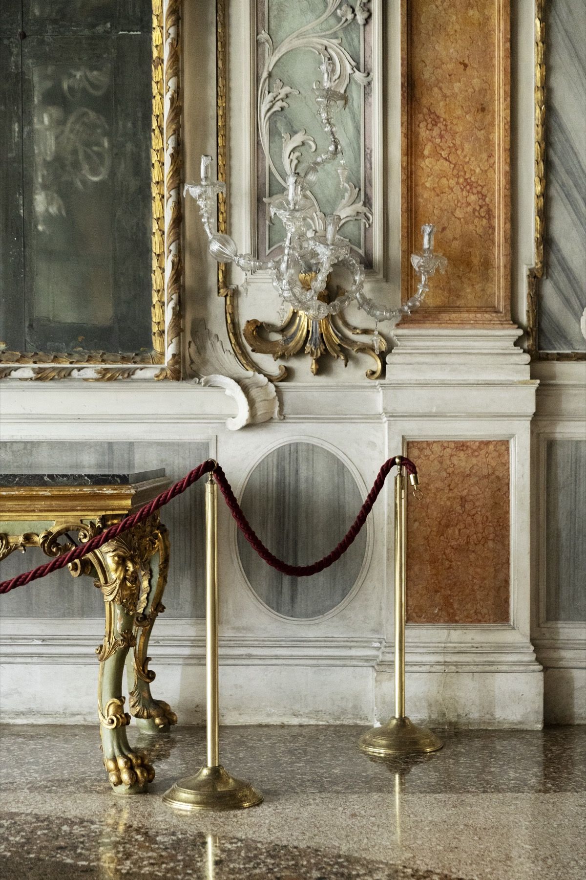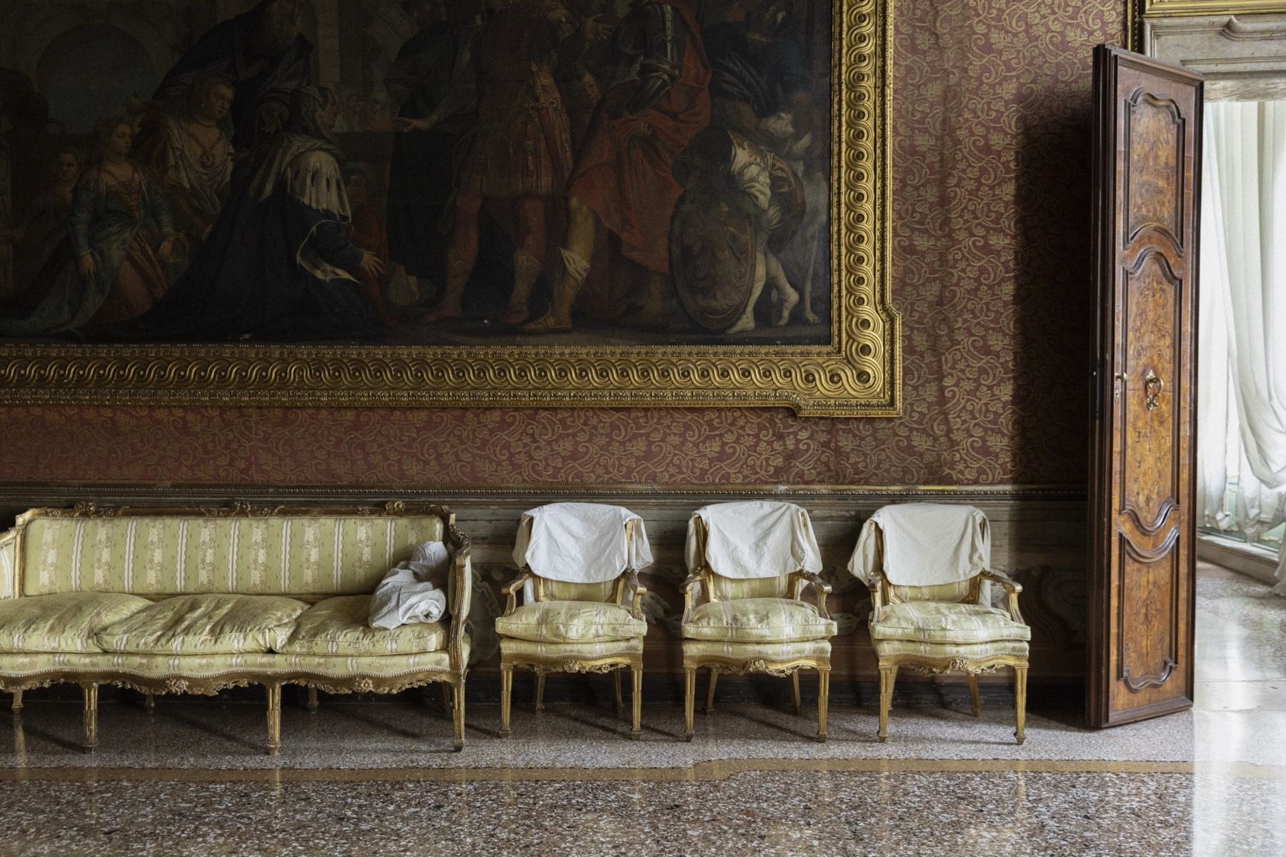 Il dialogo con il palazzo emerge fin dall’inizio: nel primo salone del Piano Nobile, il soffitto raffigurante La Vittoria della Luce sulle Tenebre di Jacopo Guarana, allievo di Giambattista Tiepolo, fa da cornice alle fotografie di Steven Shearer, raffiguranti soggetti addormentati, che entrano in dialogo con i gioielli memento mori di Codognato e con creazioni di haute couture di Christian Lacroix e Comme des Garçons.
