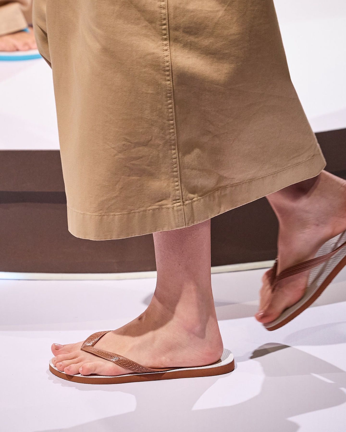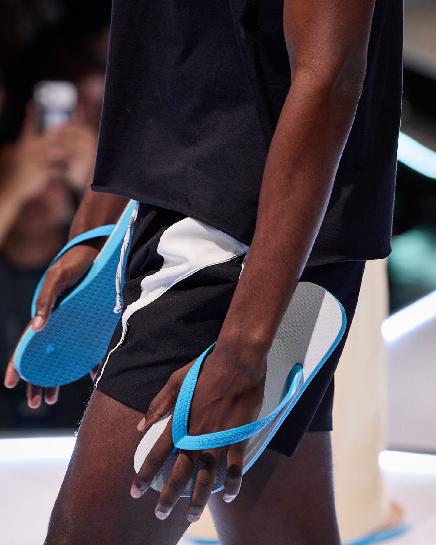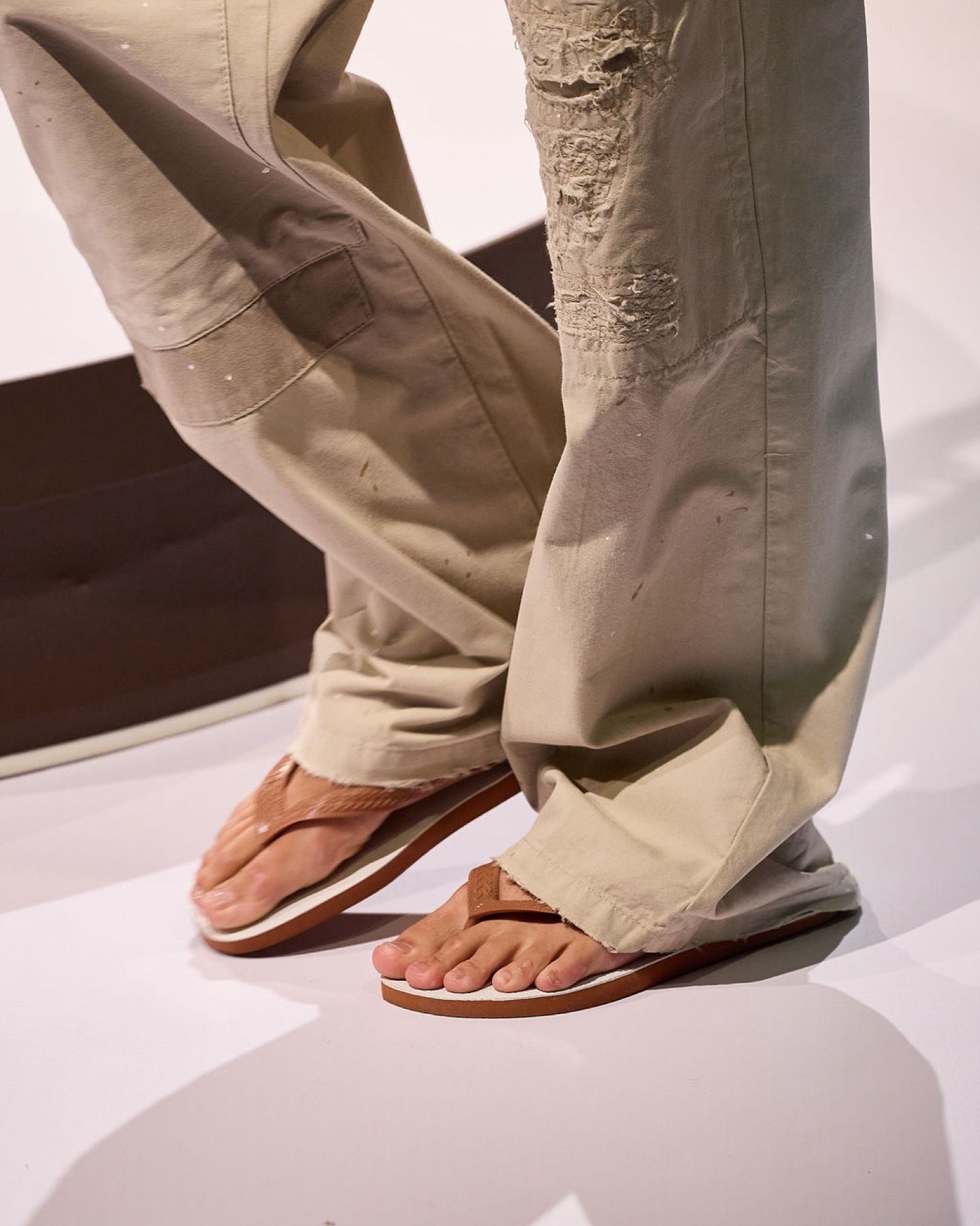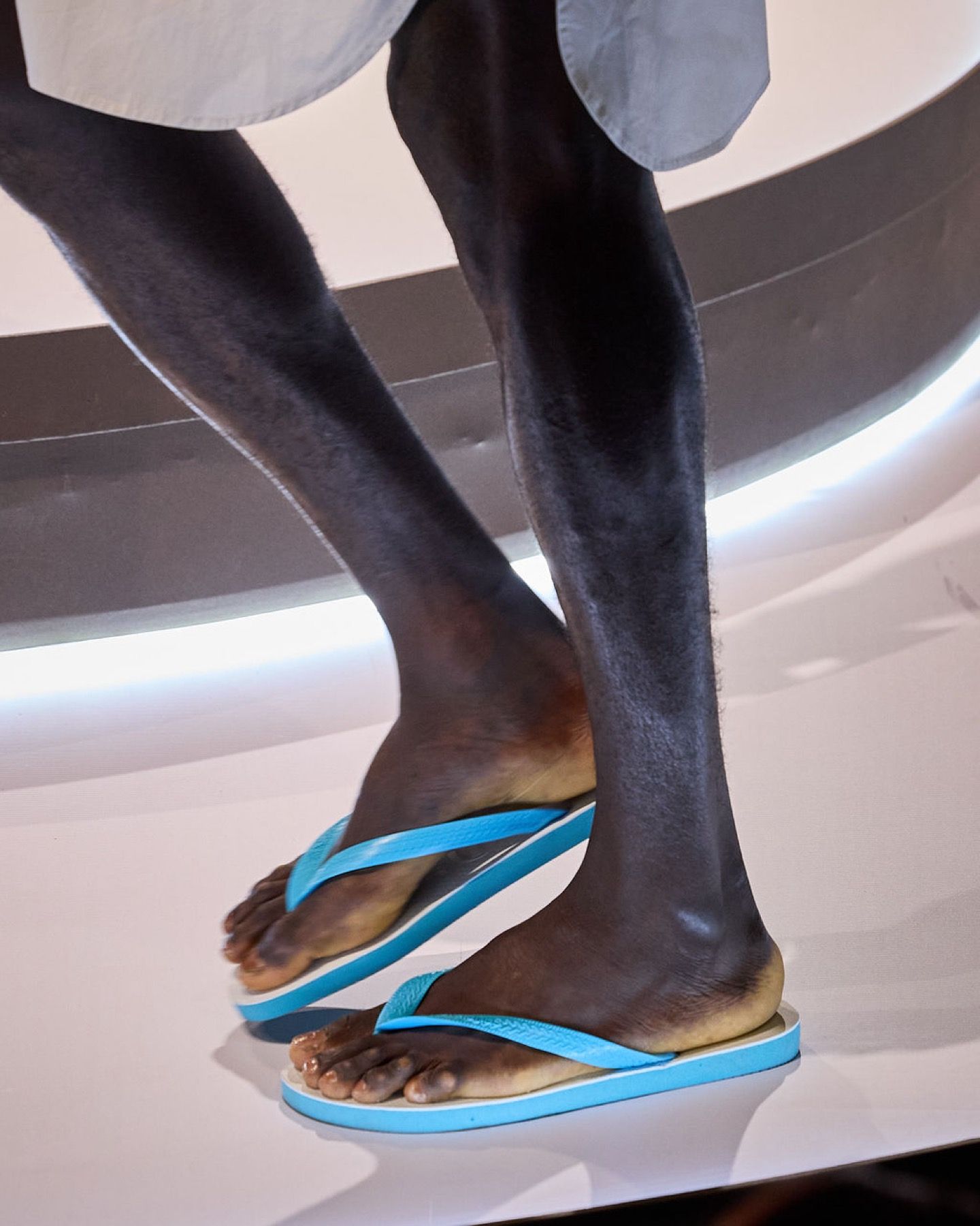 Il designer brasiliano Pedro Andrade, fondatore del brand P. Andrade, ha collaborato alla realizzazione di un concept di sfilata che esplora come l’iconica infradito del 1962 possa essere reinterpretata nel panorama della moda contemporanea. Conosciuto per la sua capacità di fondere street culture, sartorialità e riferimenti brasiliani, Andrade ha affrontato il progetto come un dialogo tra l’heritage del prodotto e lo styling contemporaneo.