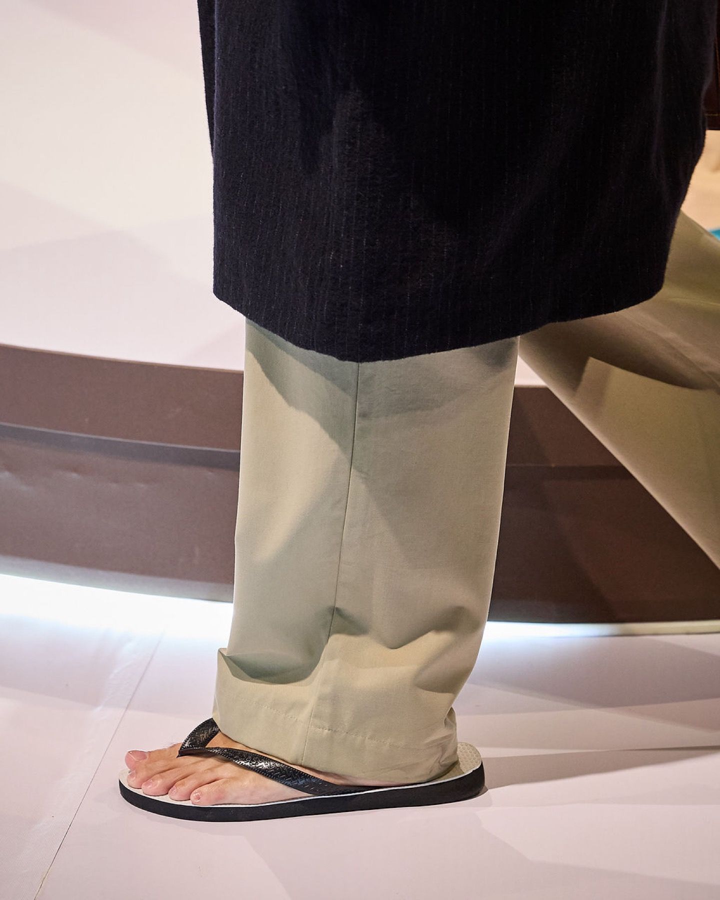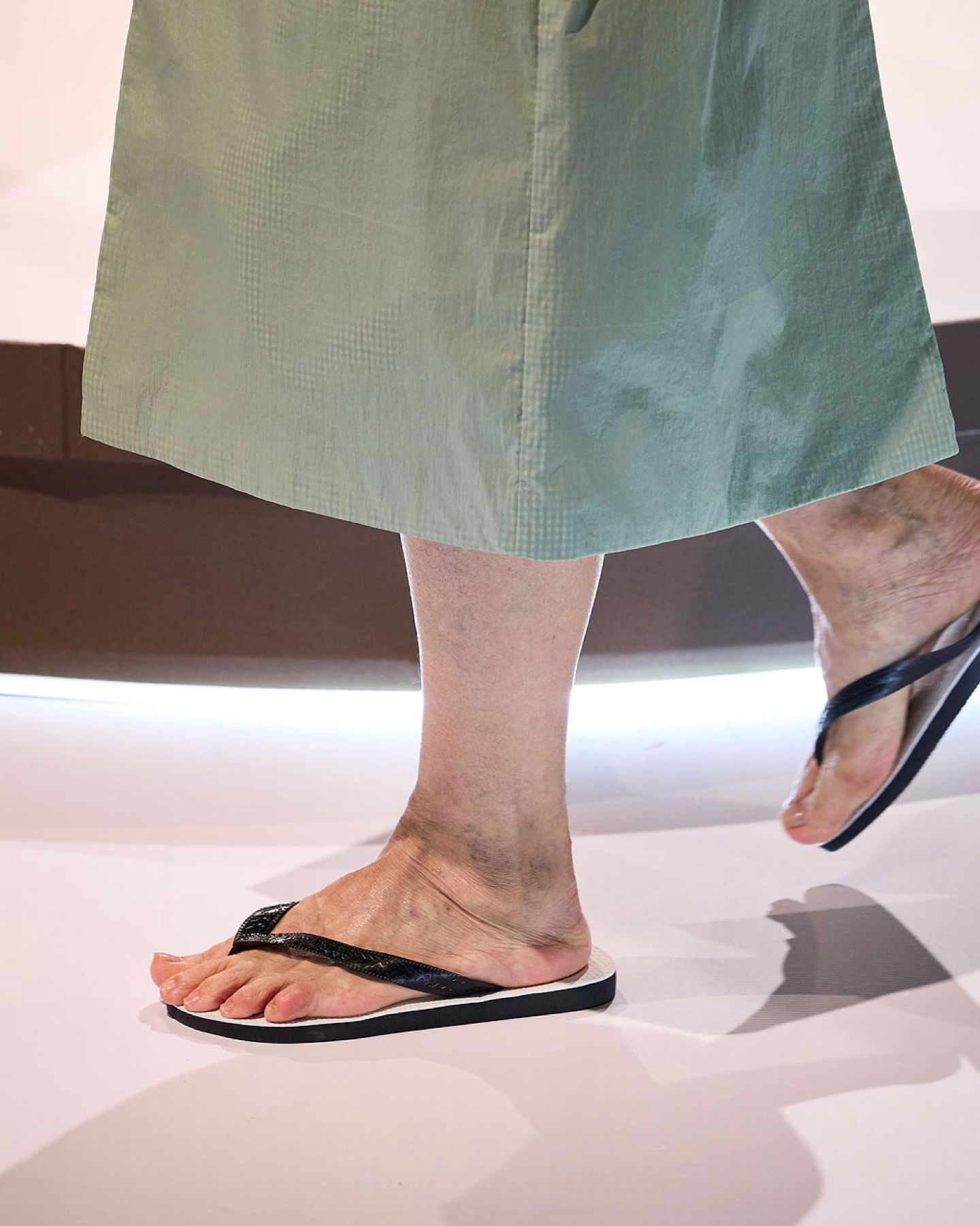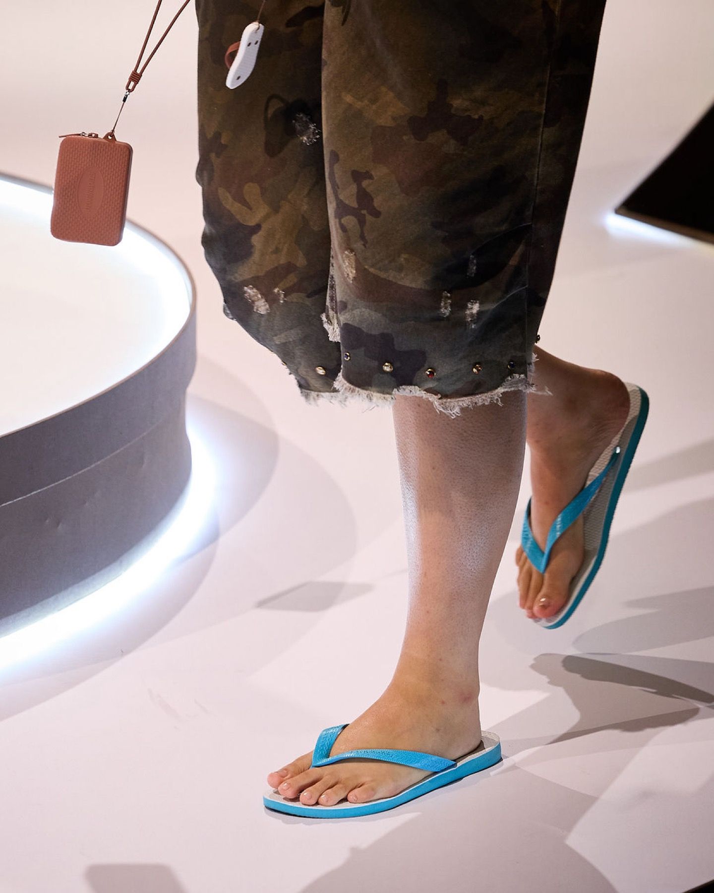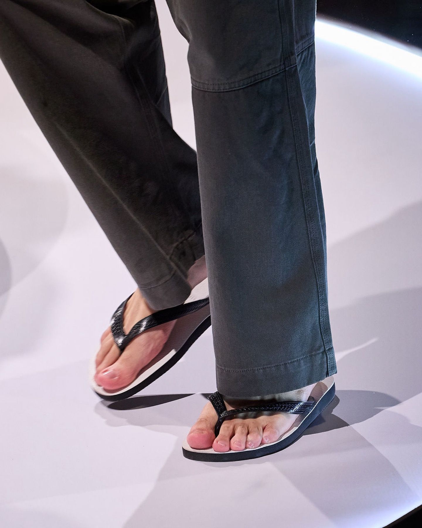 Il designer brasiliano Pedro Andrade, fondatore del brand P. Andrade, ha collaborato alla realizzazione di un concept di sfilata che esplora come l’iconica infradito del 1962 possa essere reinterpretata nel panorama della moda contemporanea. Conosciuto per la sua capacità di fondere street culture, sartorialità e riferimenti brasiliani, Andrade ha affrontato il progetto come un dialogo tra l’heritage del prodotto e lo styling contemporaneo.