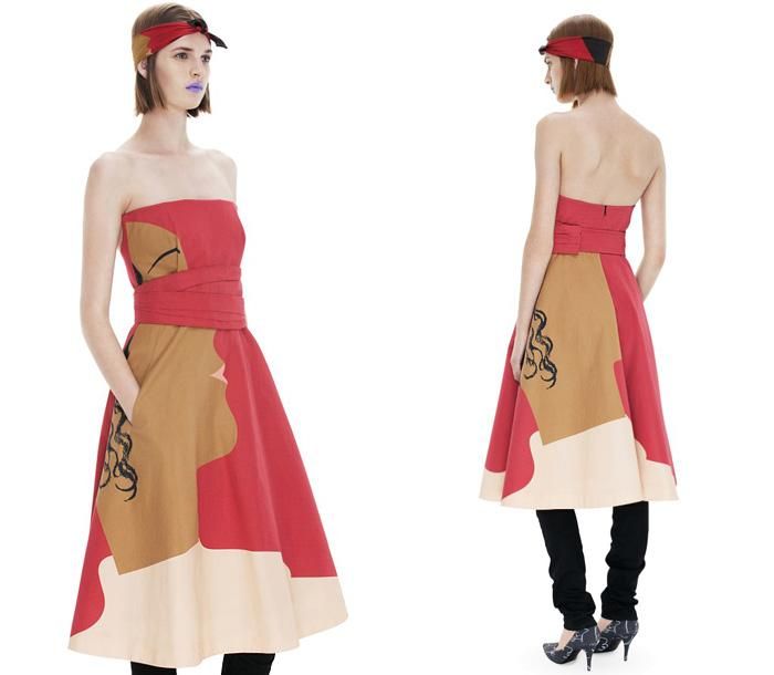 Acne, the Swedish cool brand, presents a capsule collection, inspired by the works of the Art Decò illustrator Eduardo Garcia Benito an by some Cecil Beaton’s sketches and by the cover of Vogue dating from the 30s. The elegant women with long neck and big head, designed by the Spanish artist, are the main subject of the prints and appear on the wide skirts, on the dresses, t-shirts and on the silk foulard.