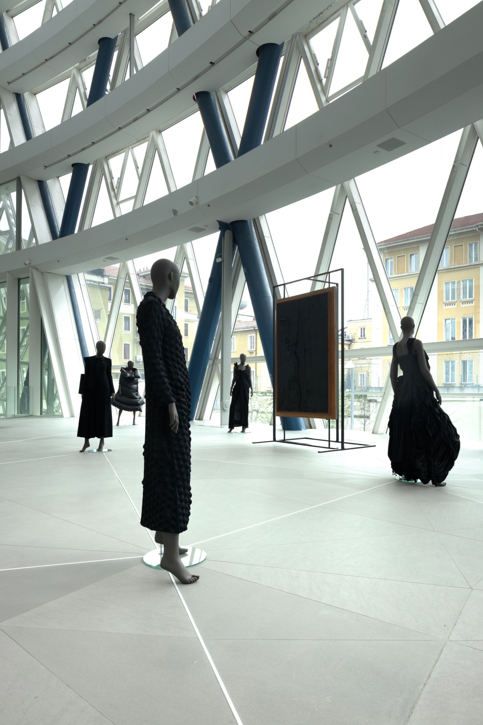 La mostra "Abitare il Nero" porta a Milano i tre più grandi designer giapponesi Issey Miyake, Yohji Yamamoto e Junya Watanabe incontrano l'opera di Alberto Burri