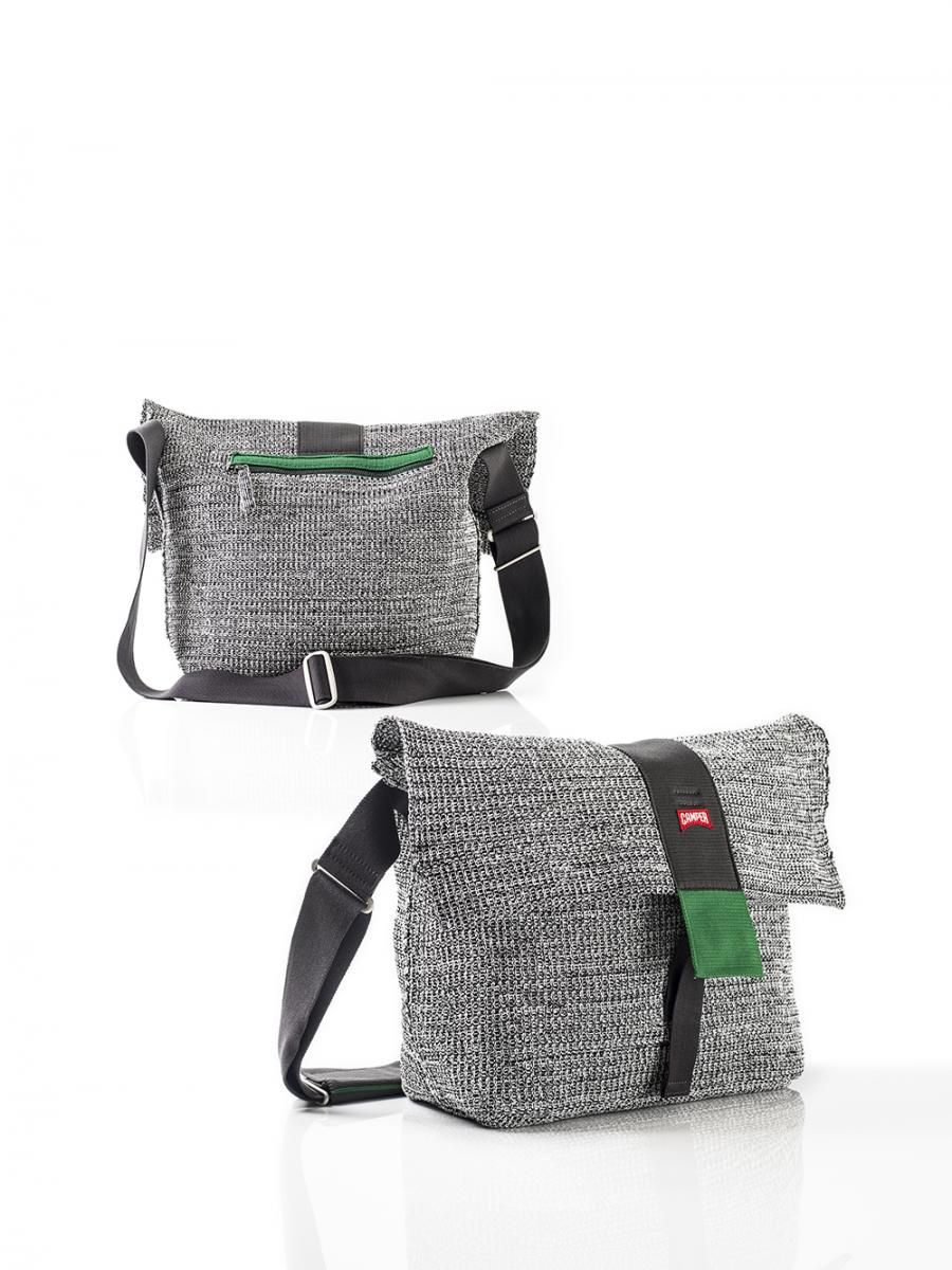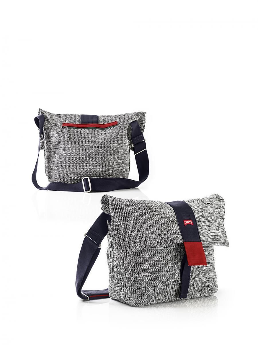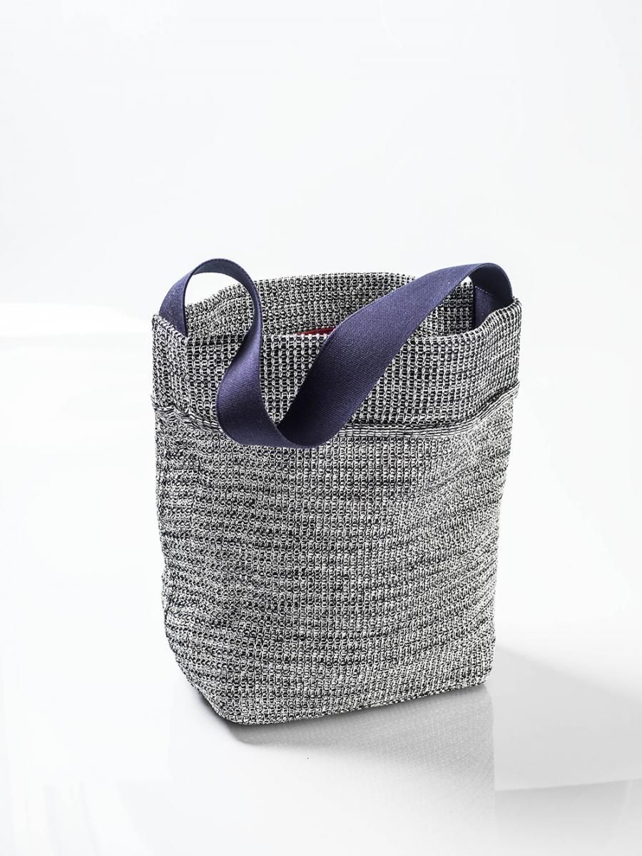 Il designer ha creato una collezione di borse identificabile tramite un tessuto tattile che fa da trait d’union tra il nostro desiderio di toccare con mano e la collezione medesima. Questa lavorazione a maglia speciale viene largamente usata nella produzione di capi di abbigliamento ma lo è di rado nel caso degli accessori. Ogni singolo articolo della collezione è contraddistinto da una personalità tutta sua data l’elaborazione con fili di carta tessuti finemente. La messa a punto di questo nuovo materiale, caratterizzato da lunga durata e morbidezza e costituito da carta per il 64% e da poliestere per il 36%, ha richiesto vari anni di lavoro.