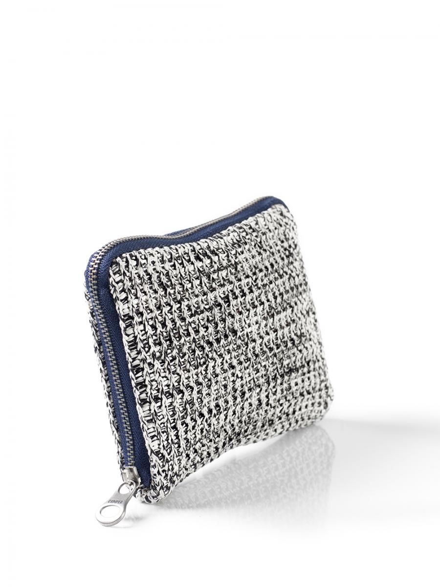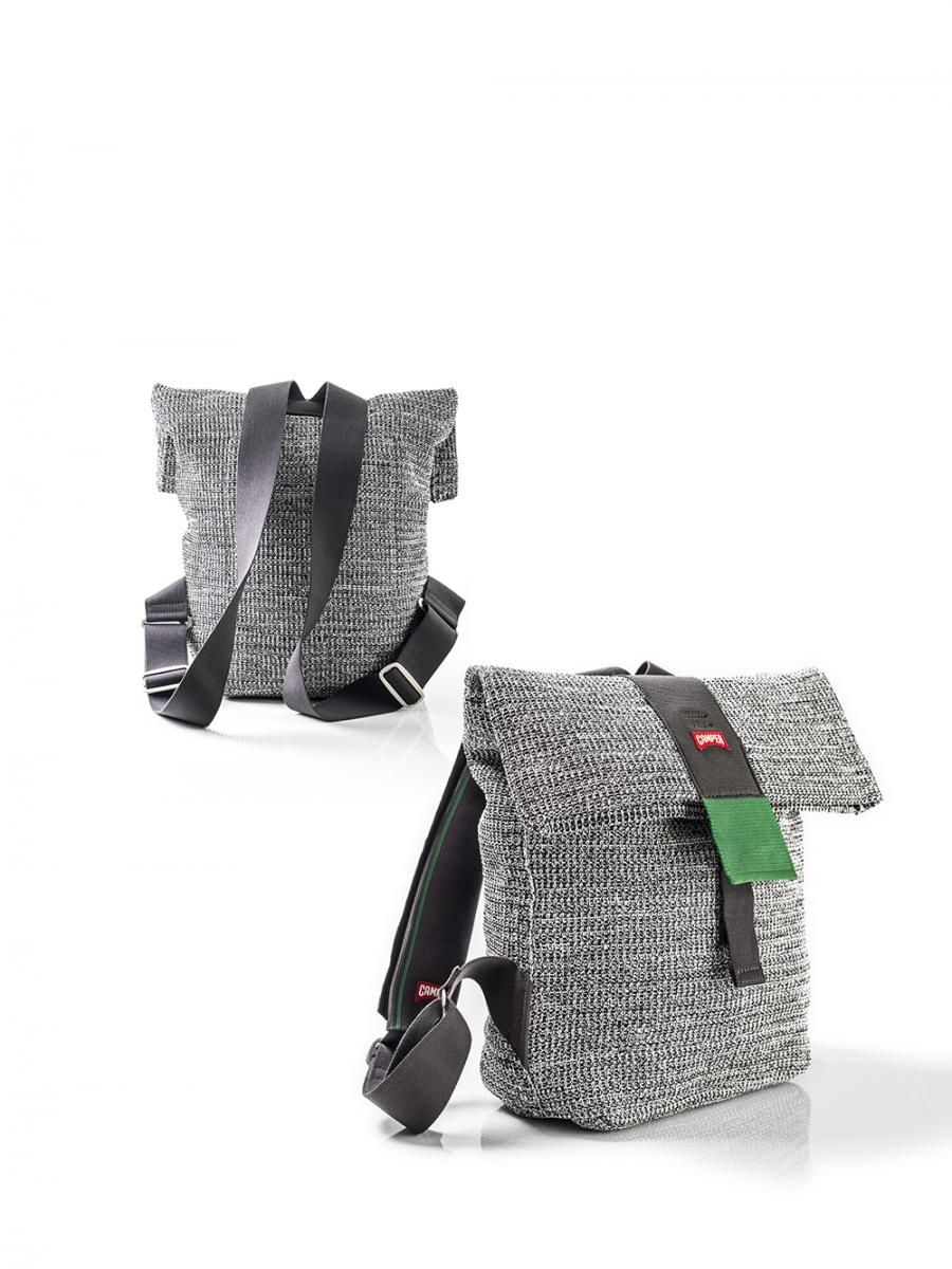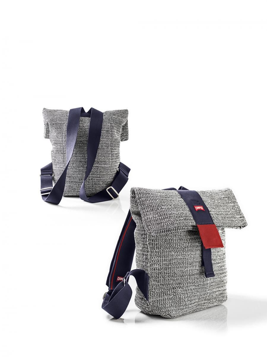 Il designer ha creato una collezione di borse identificabile tramite un tessuto tattile che fa da trait d’union tra il nostro desiderio di toccare con mano e la collezione medesima. Questa lavorazione a maglia speciale viene largamente usata nella produzione di capi di abbigliamento ma lo è di rado nel caso degli accessori. Ogni singolo articolo della collezione è contraddistinto da una personalità tutta sua data l’elaborazione con fili di carta tessuti finemente. La messa a punto di questo nuovo materiale, caratterizzato da lunga durata e morbidezza e costituito da carta per il 64% e da poliestere per il 36%, ha richiesto vari anni di lavoro.