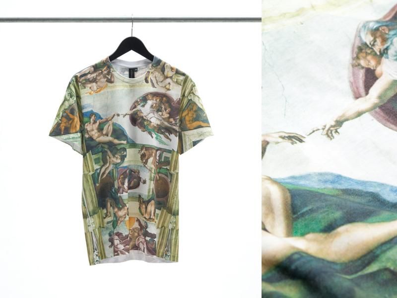The entire collection is made in Italy, designed from the hands that have made the history of the most famous fashion houses and comprises a series of t-shirt in premium cotton with digital prints in HD, which went from black and white geometric patterns up to the frescoes the Sistine Chapel. Shirts with textured fabrics with romantic floral motifs, combined with multi-functional jackets and pants with fine embroidery all - over tone on tone.