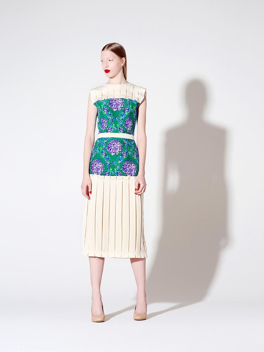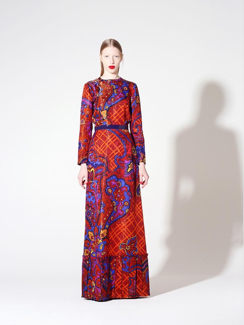 I like when people notice the recycling aspect, which one of the main features of my work. Actually, this idea was born casually.Back in 2008 I found a silk crepe fabric by Irene Galitzine in a fabric shop. I was astonished and it came to me that,if I searched really hard, I could have found more of these fabrics. From then on I began to search and search for vintage fabrics all around Italy. I started to collect many printed fabrics from all the greatest designers of the 80s and 90s such as: Gianni Versace, Valentino, Ungaro, Givenchy, Fausto Sarli, Mila Schon, Raffaella Curiel, Yves Saint Laurent, and many more. After a while, the collection was getting so big that I felt like it was worth sharing such a discovery, it would have never reached anyone if it remained in my closet! So, I decided to make a mini samples collection. I didn't know how it could be, I had no clue how to start but the only thing that I had firmly in mind was that the dresses had to be created with those vintage fabrics while the shapes and volumes had to be very fresh and contemporary.