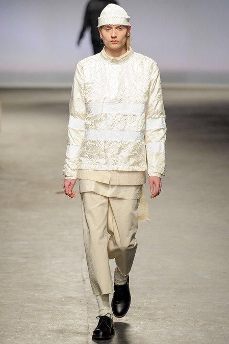 Decostruire per ricostruire, così Green esplora il tema delle ombre, concetto attorno al quale ruota tutta la sua proposta invernale. Bianco e nero, assi di legno dipinte davanti al volto, pantaloni alla caviglia, maglioni over realizzati con patchwork ton sur ton, cappelino di lana in testa contribuiscono a creare uno stile casual, metropolitano, dall’aspetto comunemente alternativo.