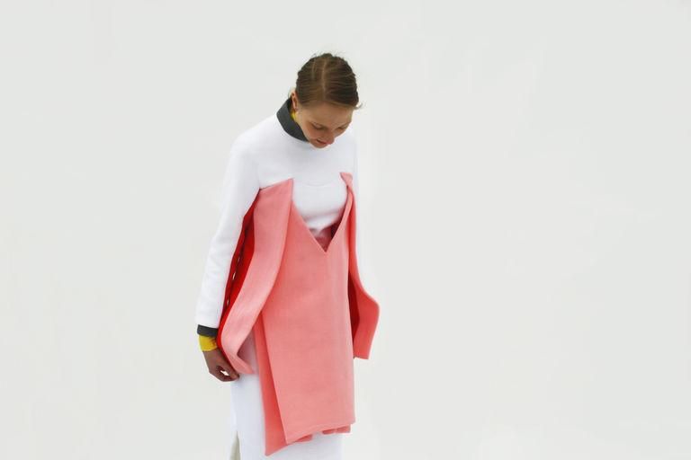Il loro stile è un gioco continuo tra linee pulite e dettagli grafici, tra minimalismo e ostentazione. Alla ricerca di un equilibrio tra semplicità e ricercatezza, queste due ragazze poco più che ventenni sono arrivate alla loro seconda collezione “Mundane Things”. L’ispirazione per questa proposta invernale sono i gesti quotidiani che compiamo ogni giorno come lavare i piatti, cucinare, fare la lavatrice, tutte in modo quasi meccanico, senza pensare. Ognuna di questi azione è parte di una routine quotidiana, noiosa, ripetitiva e prevedibile, su cui le designers vogliono riportare la nostra attenzione, per farci riappropriare della nostra vita, in ogni suo aspetto, anche apparentemente banale.