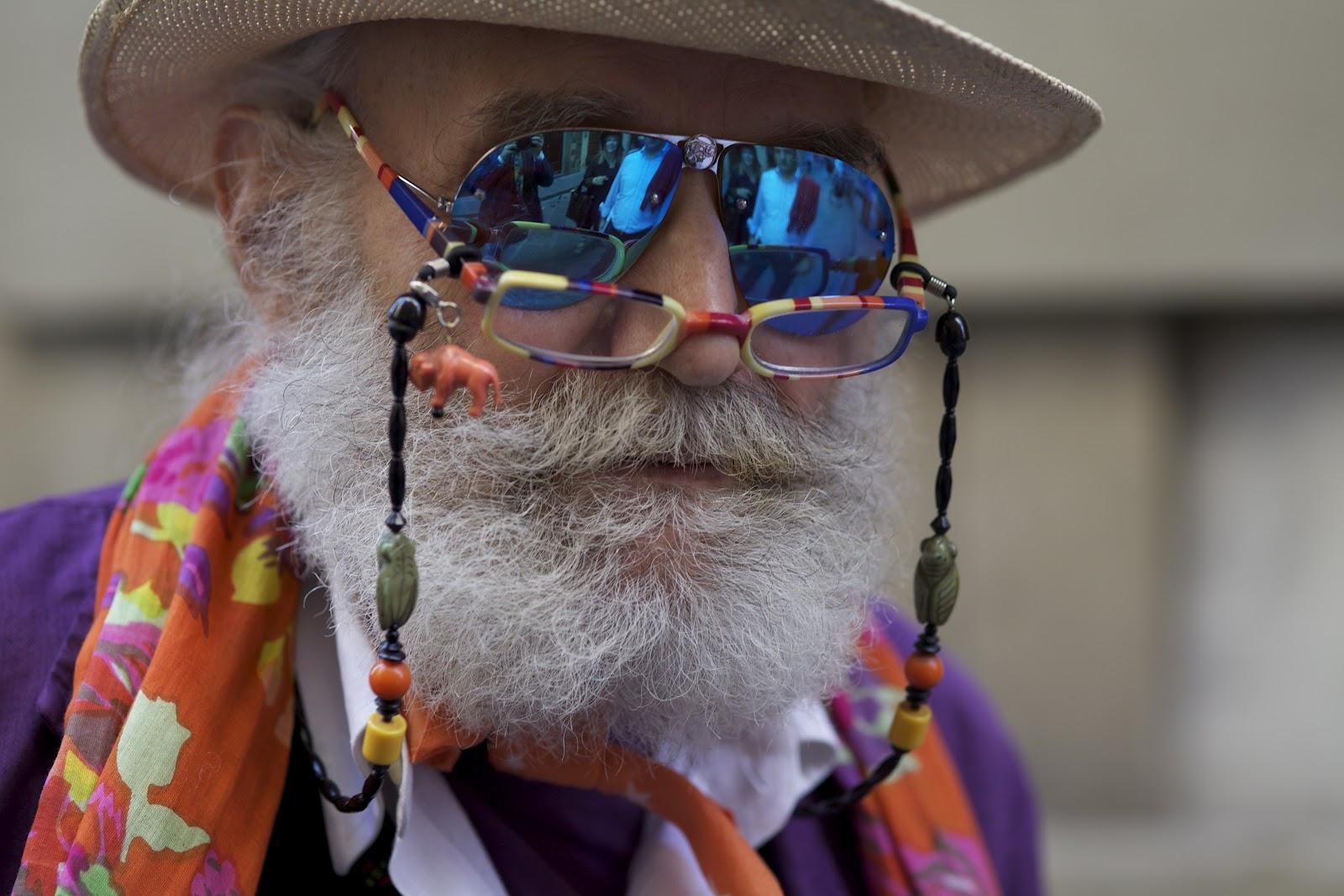 Barba lunga ed immacolata, profilo da buon gustaio, il suo sguardo è bonario e generoso e si, il rosso è decisamente uno dei suoi colori preferiti. Wanny di Filippo è sicuramente quello che D'Annunzio definirebbe l'essenza del dandy.