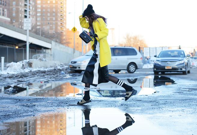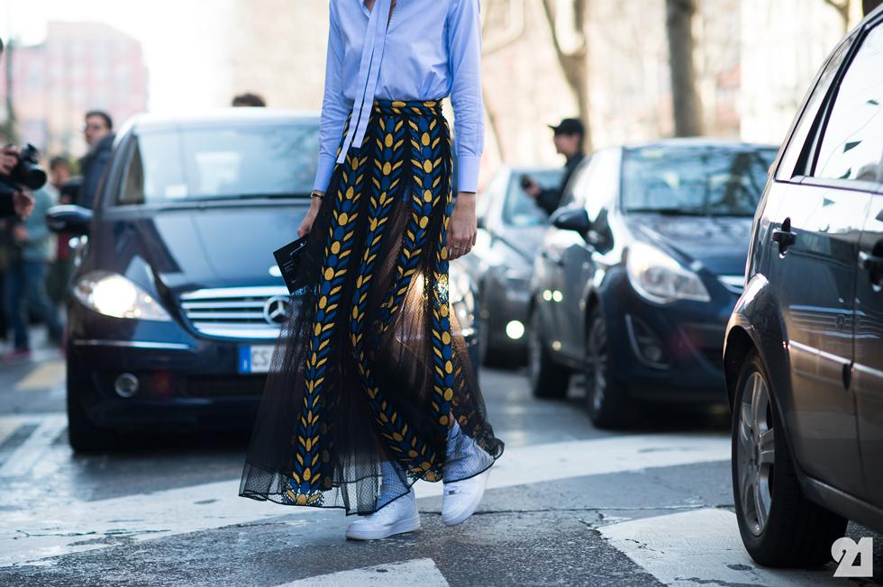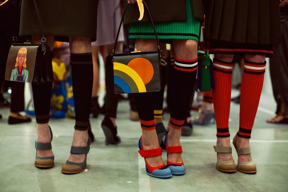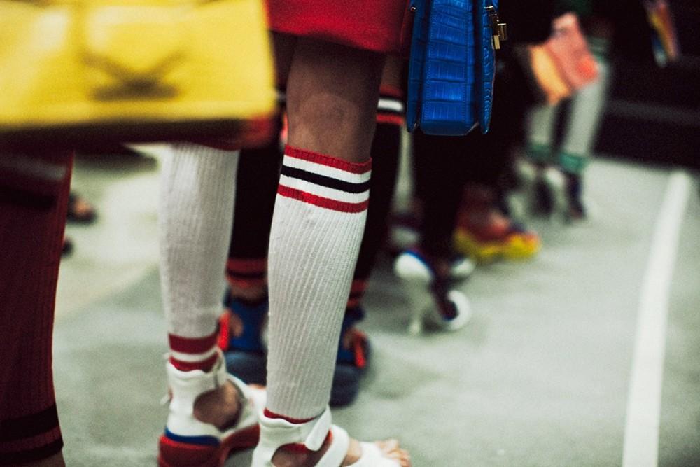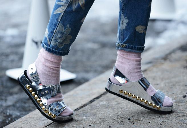 Si riconferma l’onnipresenza del calzino, a smorzare gli outfit in chiave SS2014. In tripletta con jeans e Birkenstock o sneakers (sicuramente la più gettonato dalle fashion victims), oppure con gonne plissè e tacchi assassini. Miuccia Prada docet.
