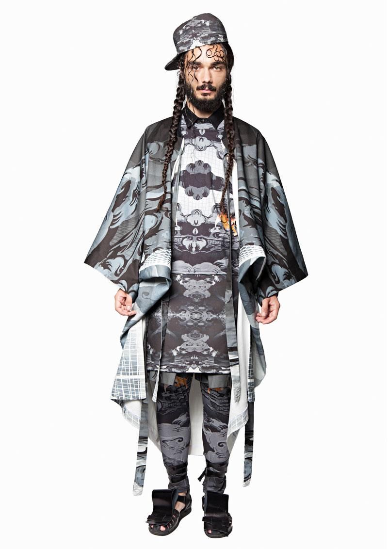 Queste influenze, con l'aggiunta di un pizzico di mood hip hop, creano un samurai metropolitano, sportivo, colorato ed unico. Colori, forme, stampe, volumi attingono dall'oriente e, attraverso l'uso di materiali diversi come cotone organico, poplin, jersey, gabardine, compongono una figura altera, elegante, ma mai distaccata e banale.