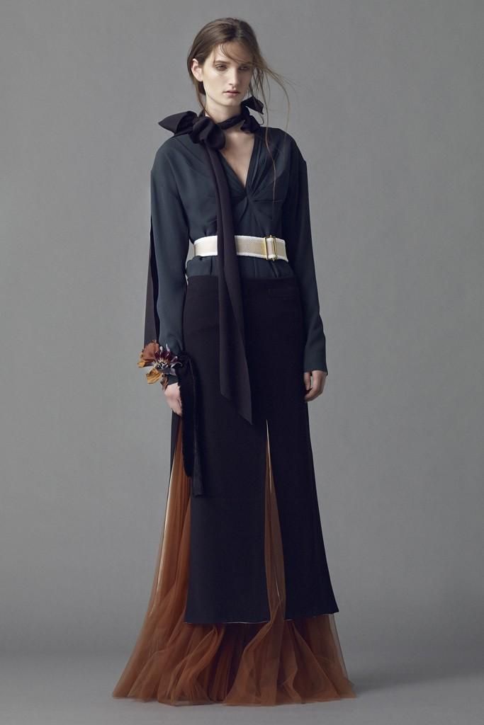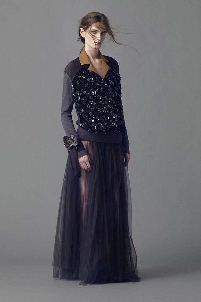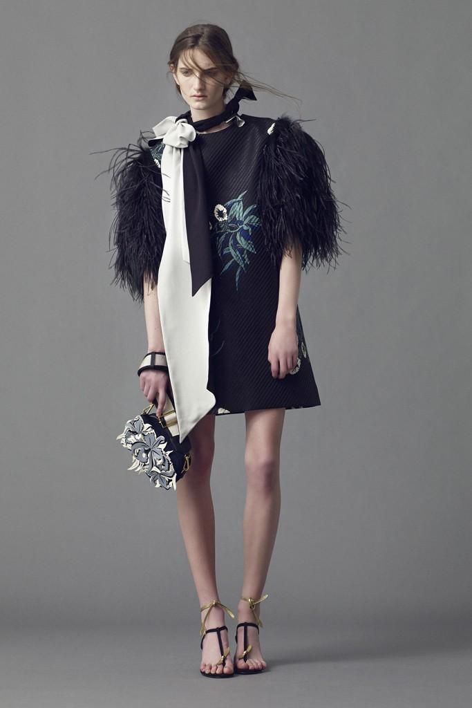 Bohemien, glamour, eccentrica. La collezione resort di Marni Evening è un prezioso caleidoscopio di ispirazioni, materiali, stampe ed umori. Consuelo Castiglioni nobilita tessuti solitamente da giorno utilizzandoli in un contesto serale. La designer stratifica, costruendo uno stile unico, opulento e a tratti, fiabesco. I dettagli sono preziosi, i completi dal taglio maschile sono resi femminili da mantelle di pelliccia, ricami, il pizzo, fiori e piume mescolati a lunghe gonne romantiche in tulle e abiti dalla stampe tropicali, sandali giapponesi e linee geometriche.