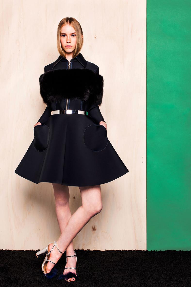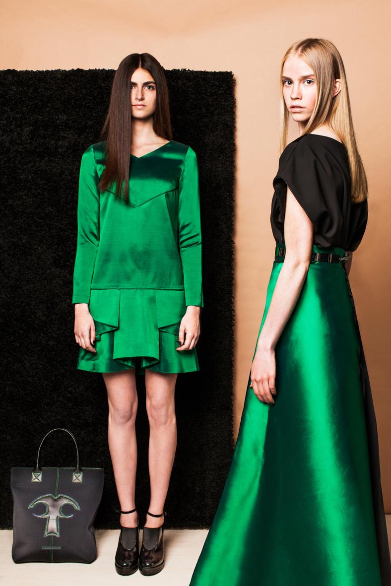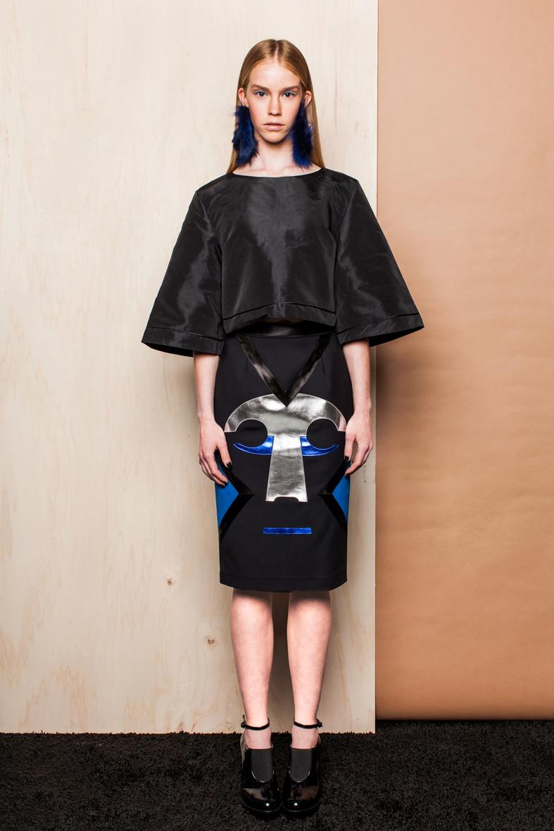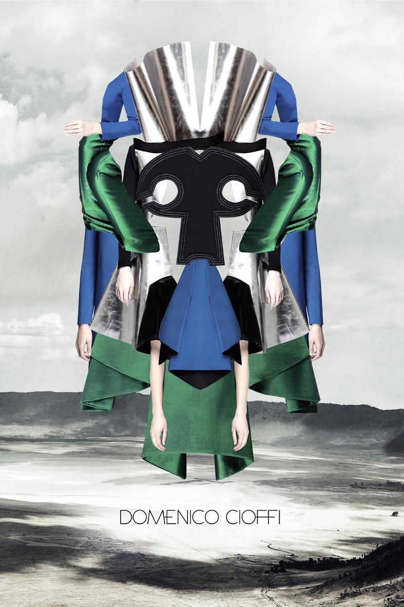Domenico Cioffi, designer con radici tra Olanda ed Italia, per il prossimo inverno ci porta nella lontana Papua Nuova Guinea e lo fa con le note dei Pink Floyd nelle orecchie. Le maschere indossate nei riti di iniziazione dalla tribù Bairing e la grafica delle copertine degli album della band inglese creano Papua Floyd, un ibrido di colori, geometrie e forme. Il verde delle foreste pluviali incontra il blu Klein, bagliori d'argento emergono dal buio del nero che circoscrive tutta la collezione, regalando equilibrio e ricercatezza. E' un gioco tra rigidità e leggerezza, tra taffetà ed organza, tra tagli netti, lavorazioni a rilievo e silhouettes grafiche.